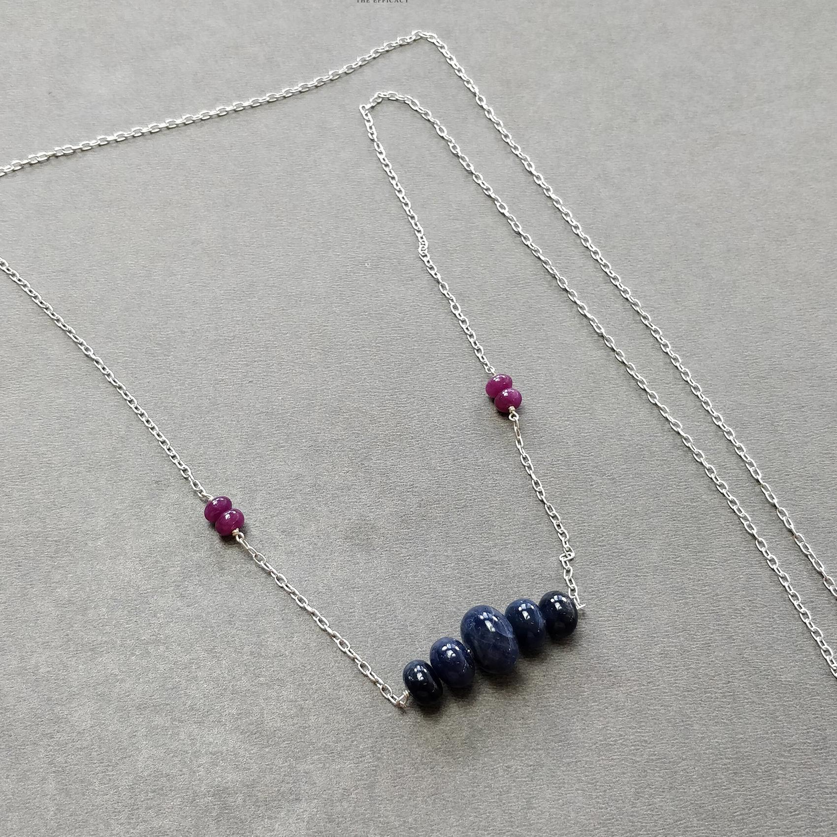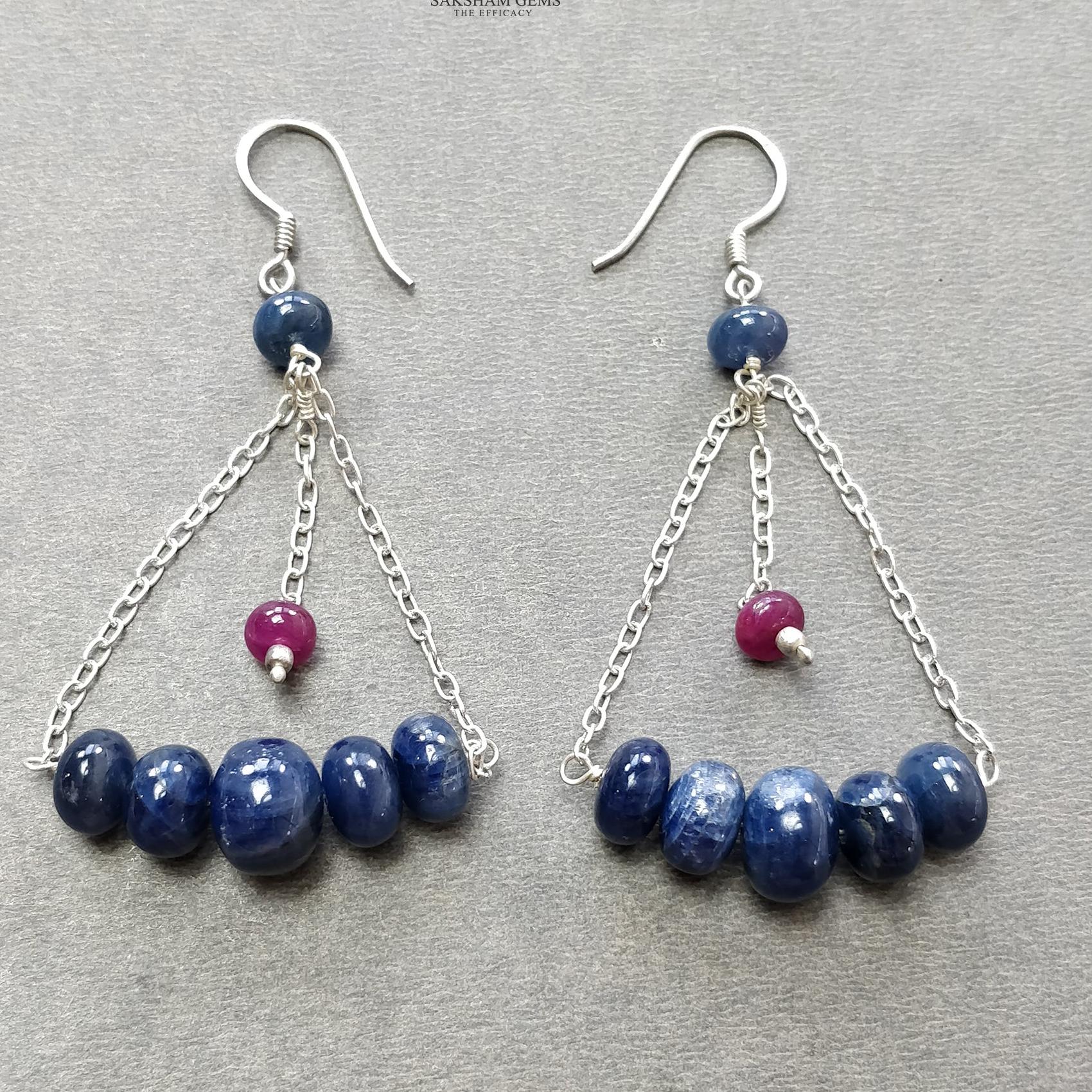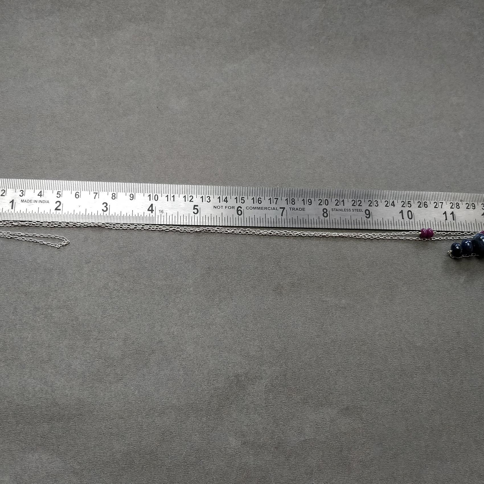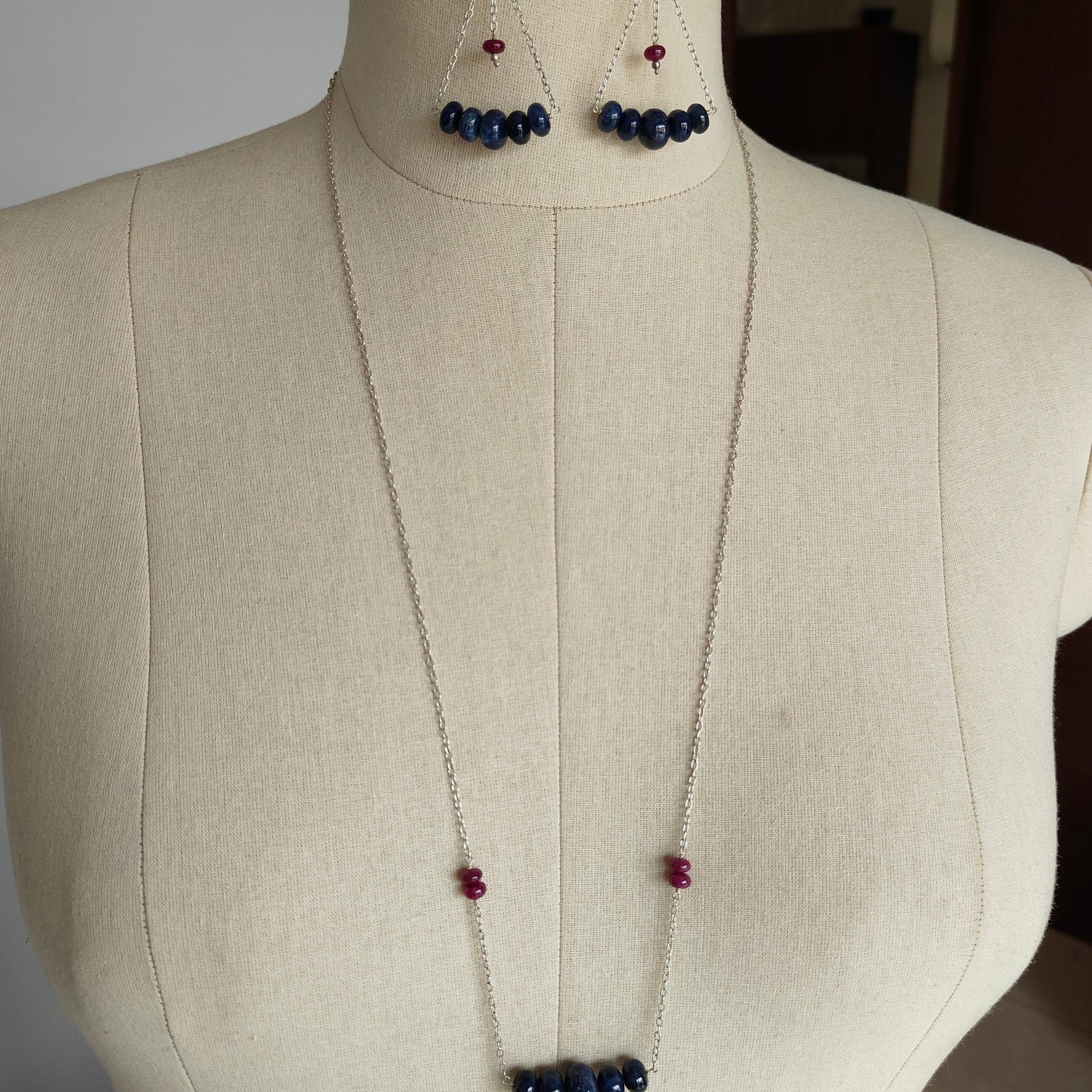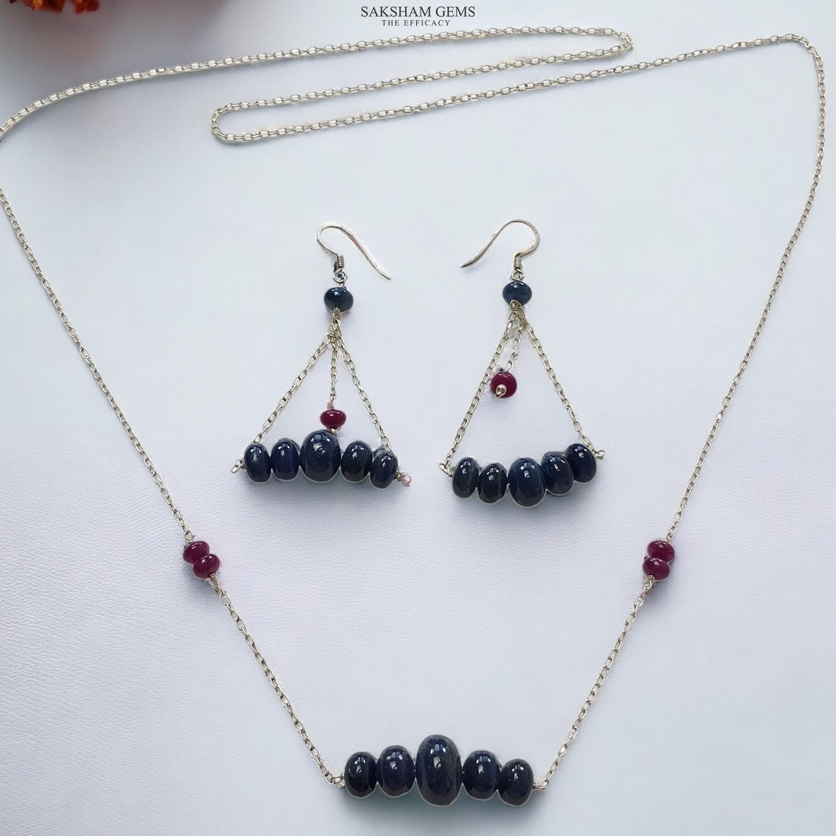 Sapphire & Ruby Beads Necklace And Earring : 26.27gms 925 Silver Natural Untreated Gemstone Beads Necklace Drop Dangle Earring Jewelry Set