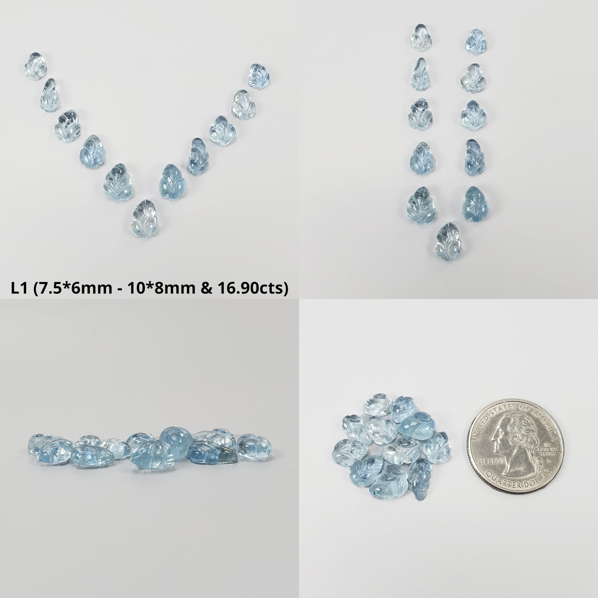 BLUE AQUAMARINE Gemstone Carving : Natural Untreated Unheated Aquamarine Hand Carved Leaves Lots