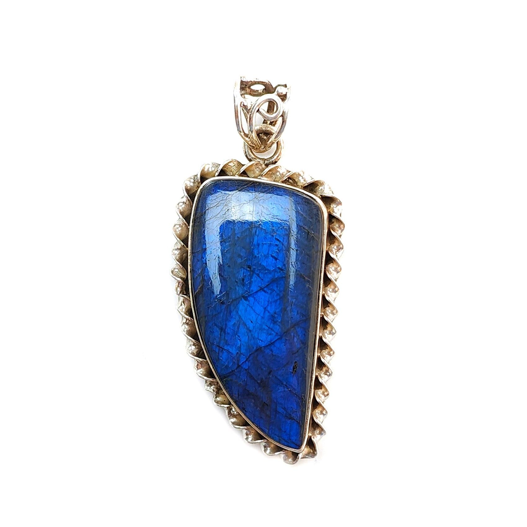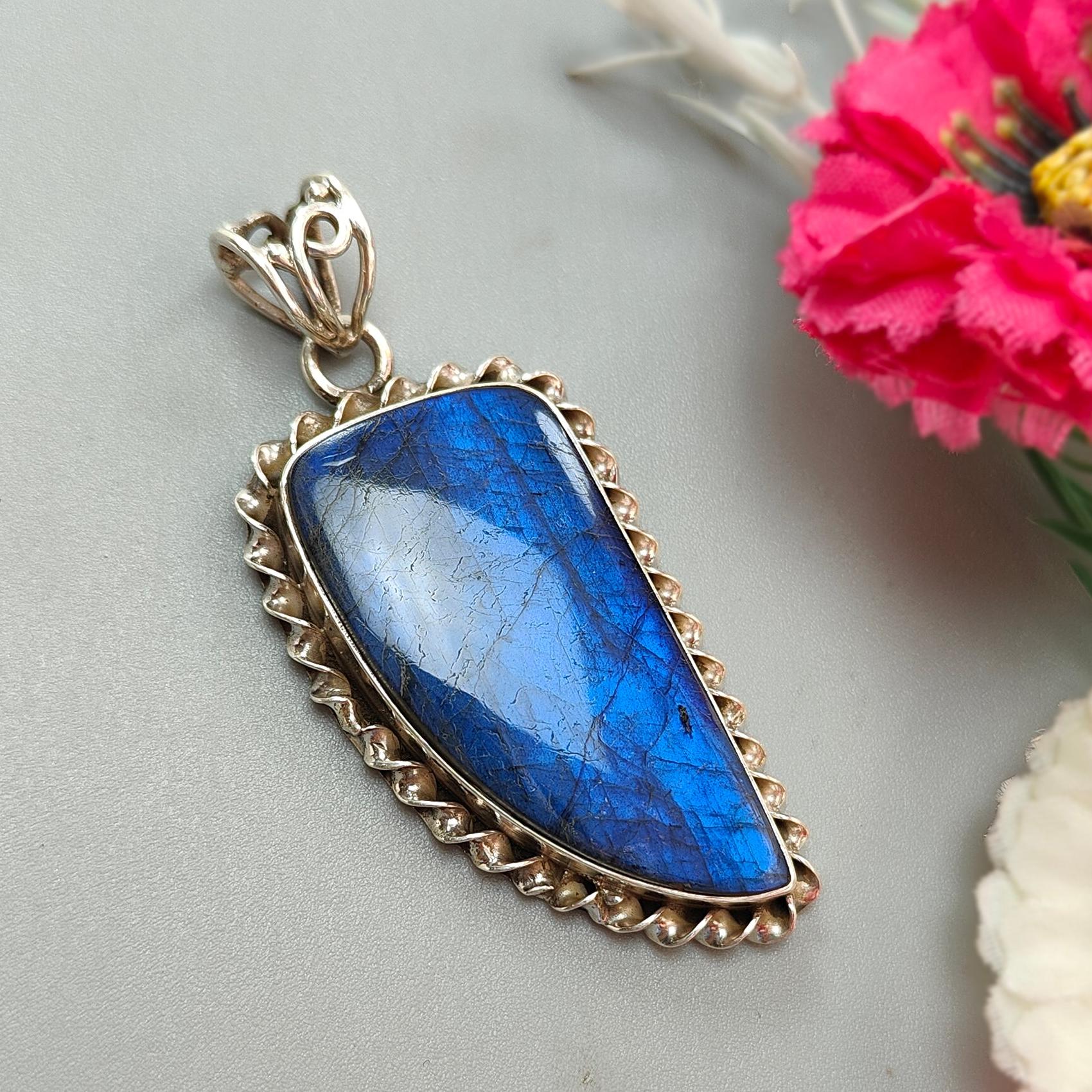 Blue Labradorite Plain Silver Pendant: 16.26gms Natural Untreated Labradorite Fancy Shape 925 Sterling Silver Bezel Set Pendant 2.30"