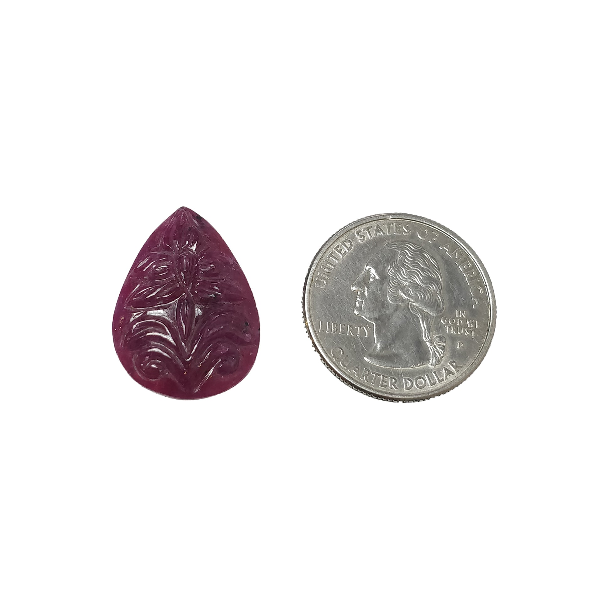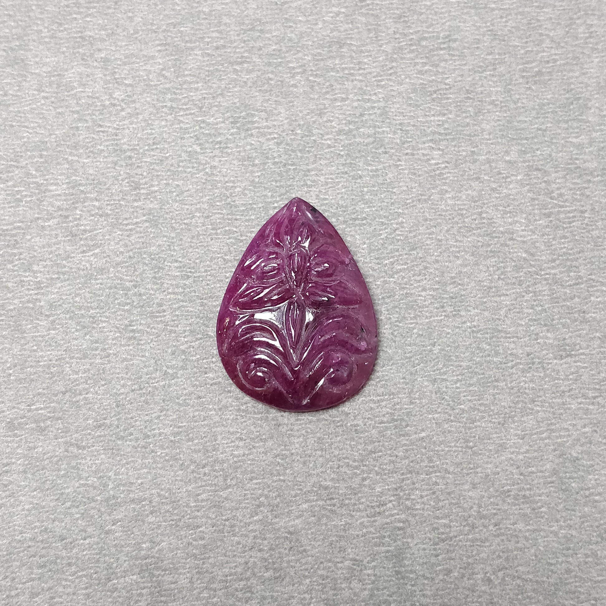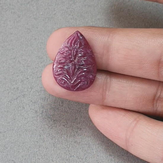RUBY Gemstone Carving : 22.10cts Natural Untreated Unheated Red Ruby Hand Carved Floral Pear Shape 22.10mm
