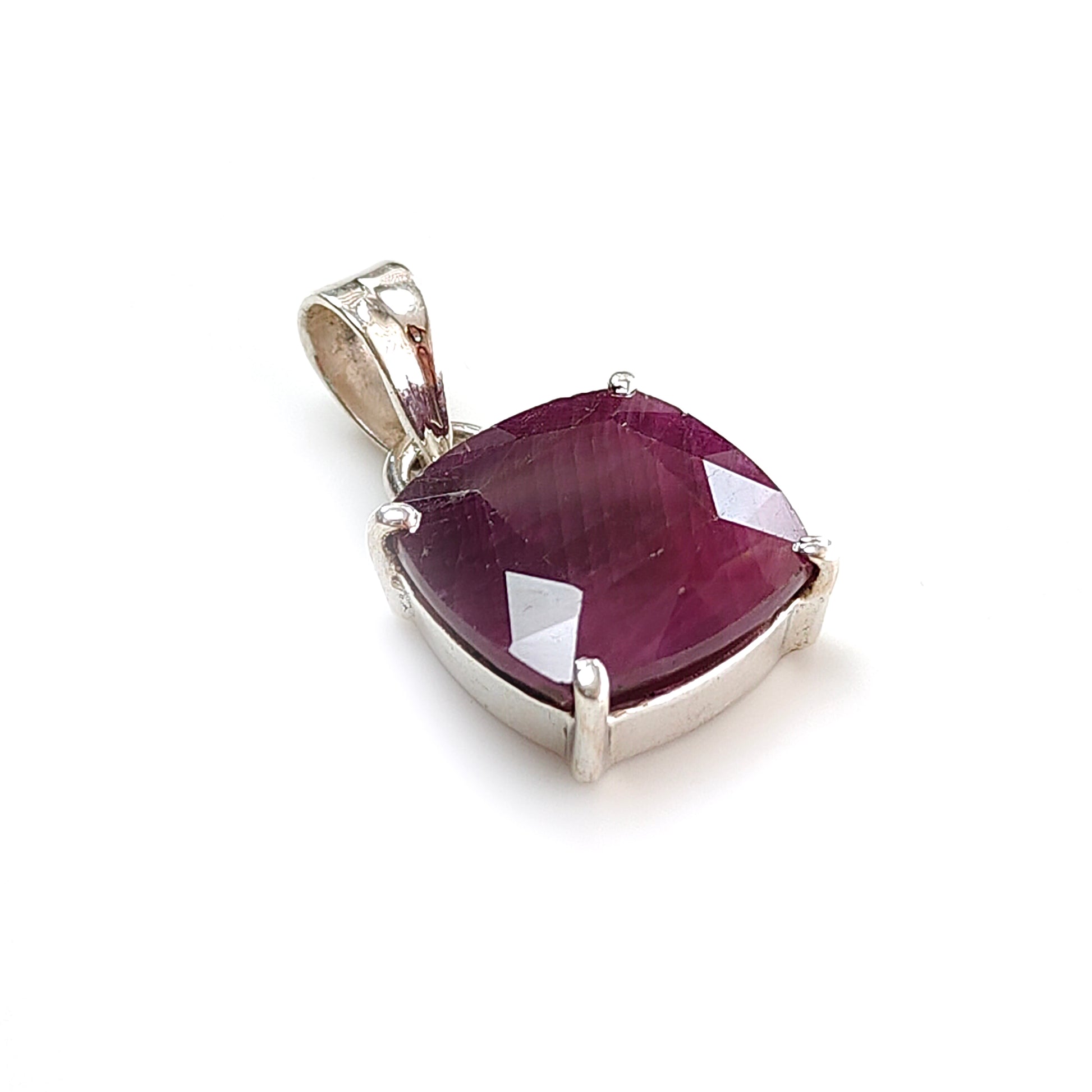 Red Ruby Silver Faceted Cut Pendant: 5.08gms Natural Untreated Ruby Cushion Shape Faceted 925 Sterling Silver Prong Set Pendant 1"