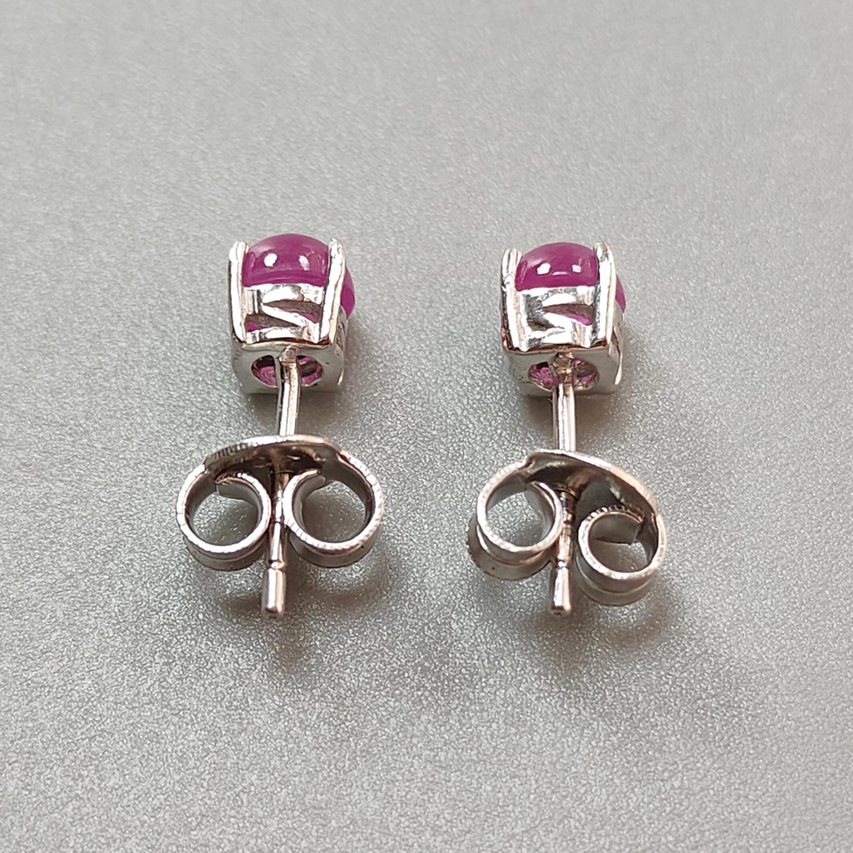 Ruby Plain Silver Earring: 1.69gms Natural Untreated Ruby Round Plain 925 Sterling Silver Prong Set Push Back Stud Earring 0.75"