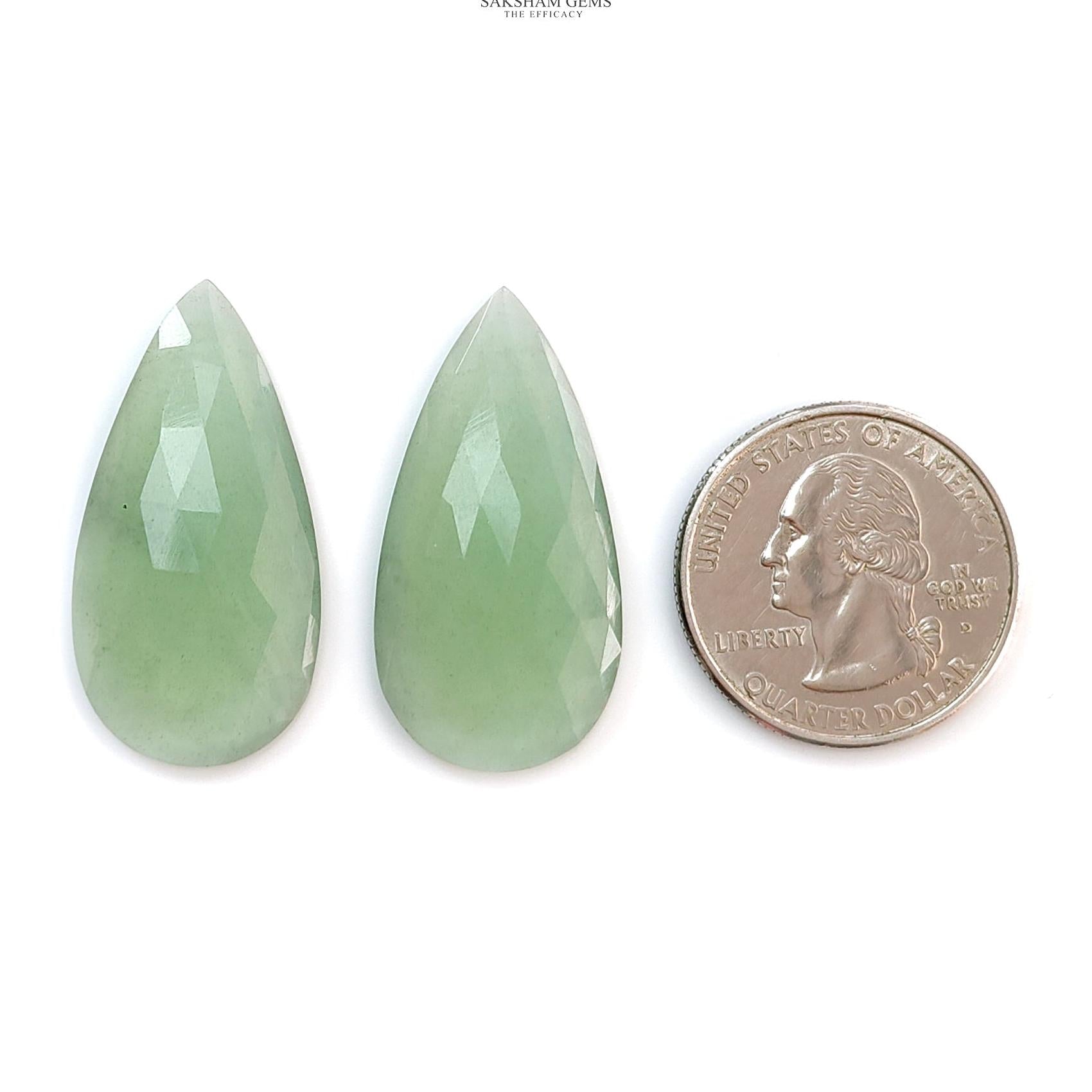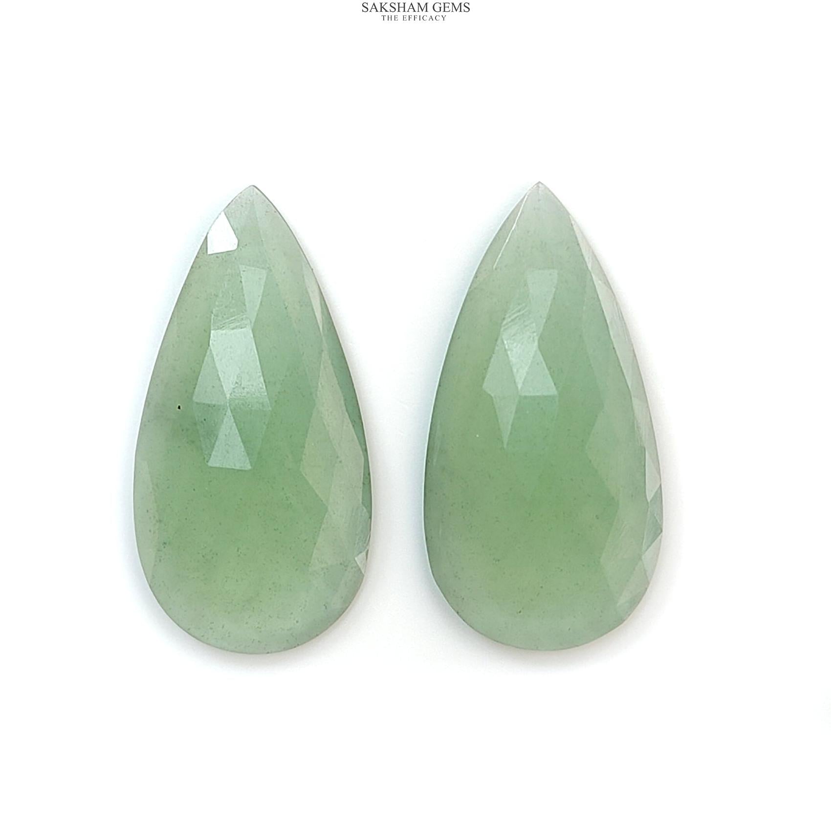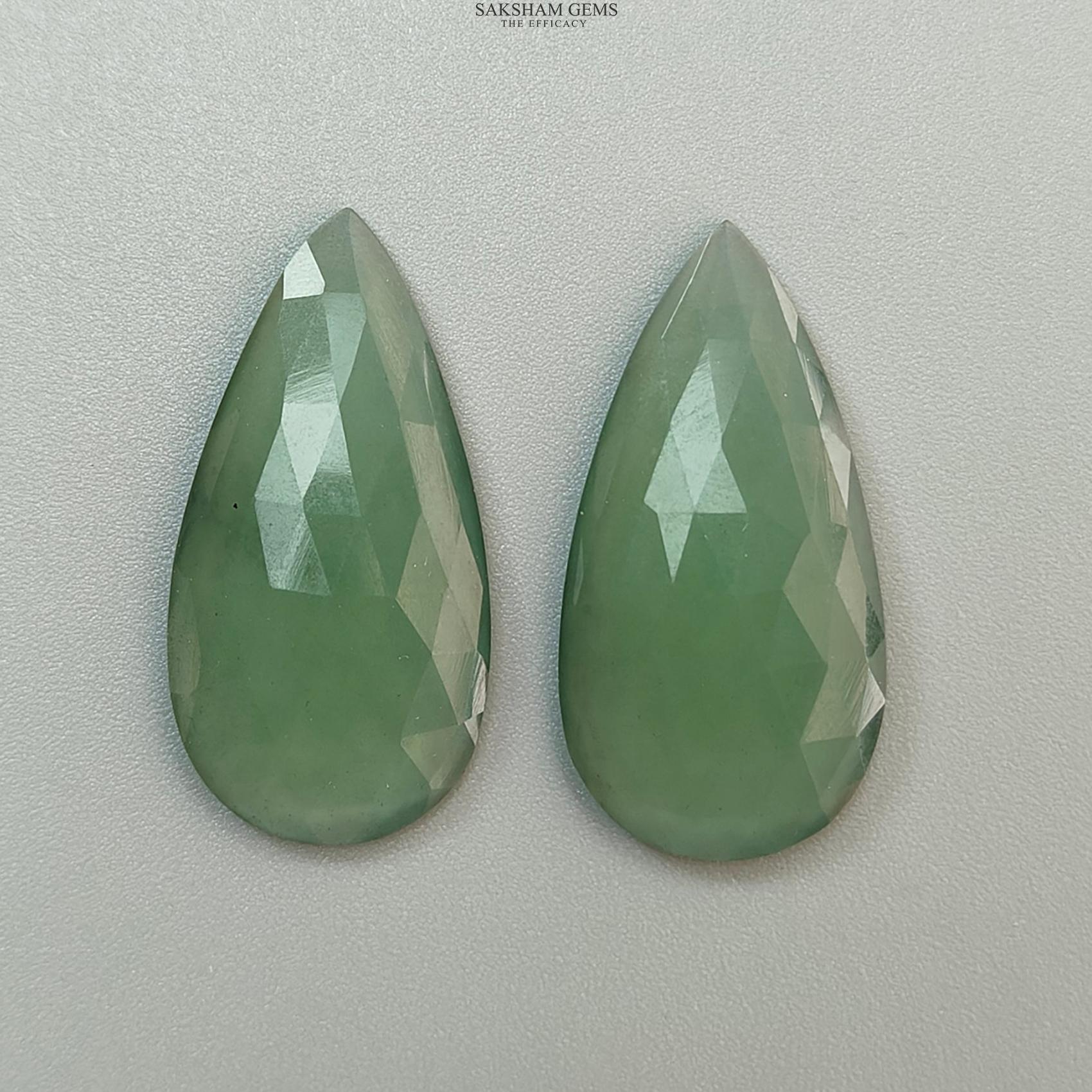 Antigorite Serpentine Gemstone Rose Cut Slices: Natural Untreated Serpentine Pear Shape Faceted Pair for Jewelry