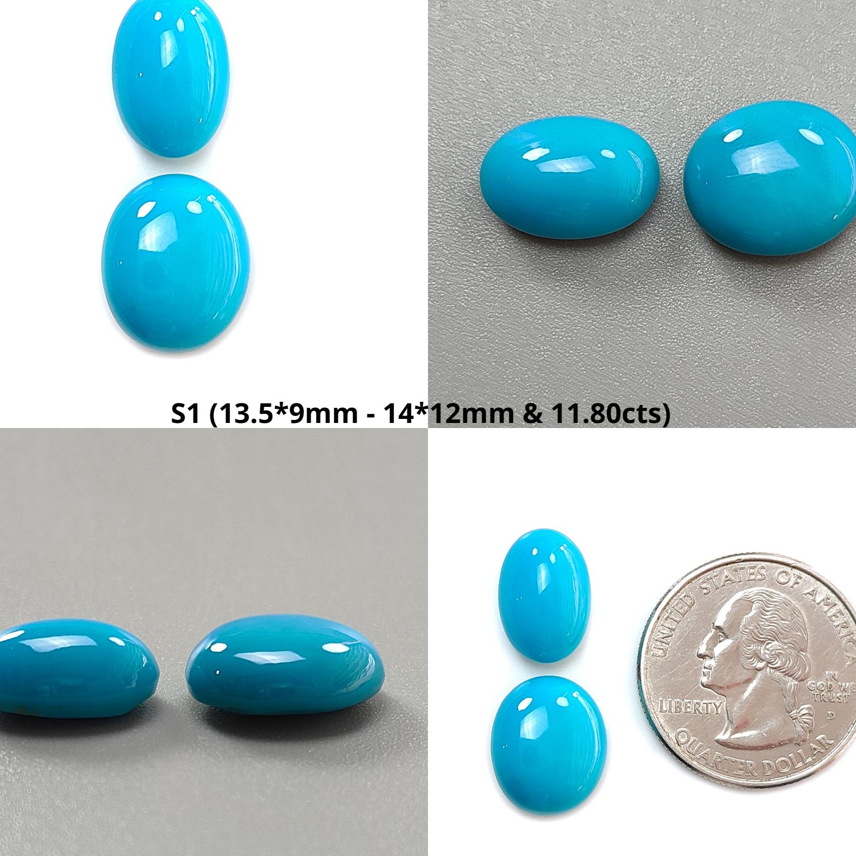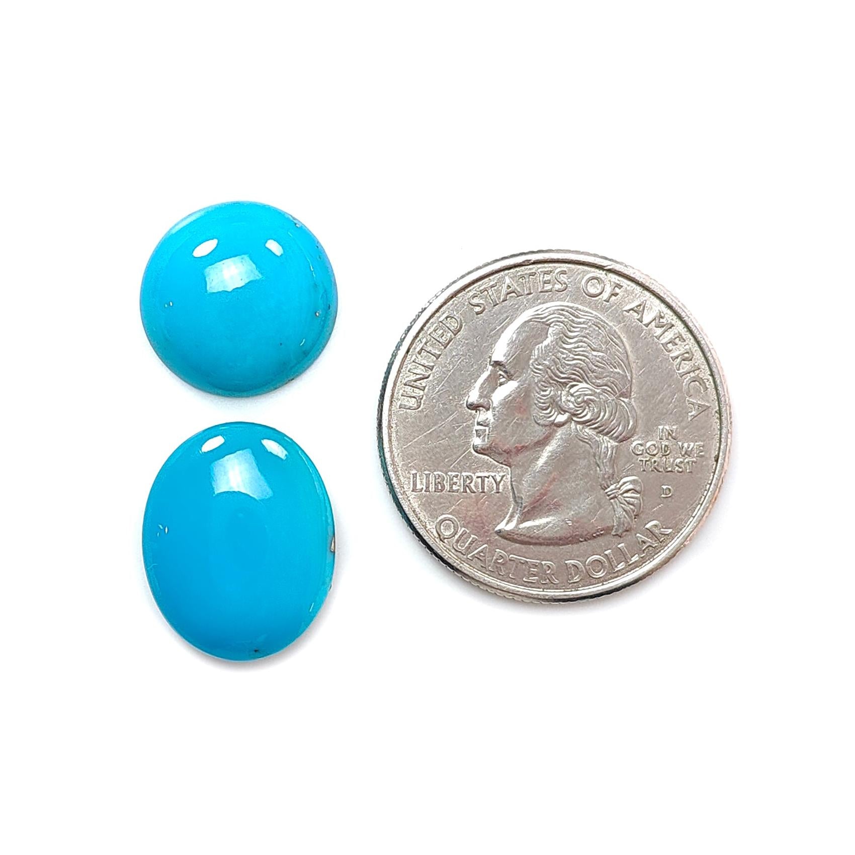 Blue Turquoise Gemstone Cabochon: Natural Untreated Sleeping Beauty Turquoise Oval, Round Shape 2pcs Set December Birthstone