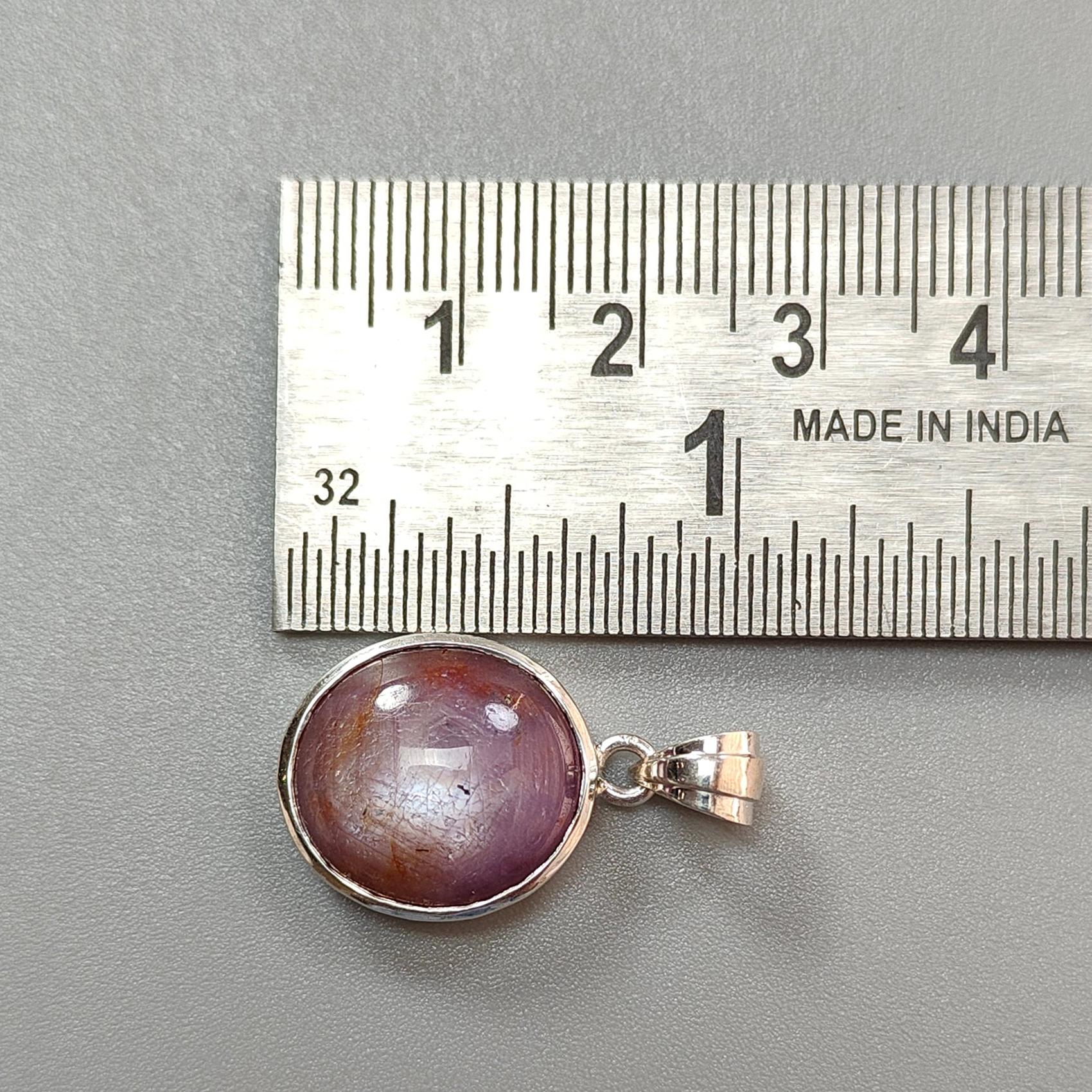 Star Ruby Silver Pendant: 4.14gms Natural Untreated Star Ruby Oval Shape Cabochon 925 Sterling Silver Bezel Set Pendant 1"