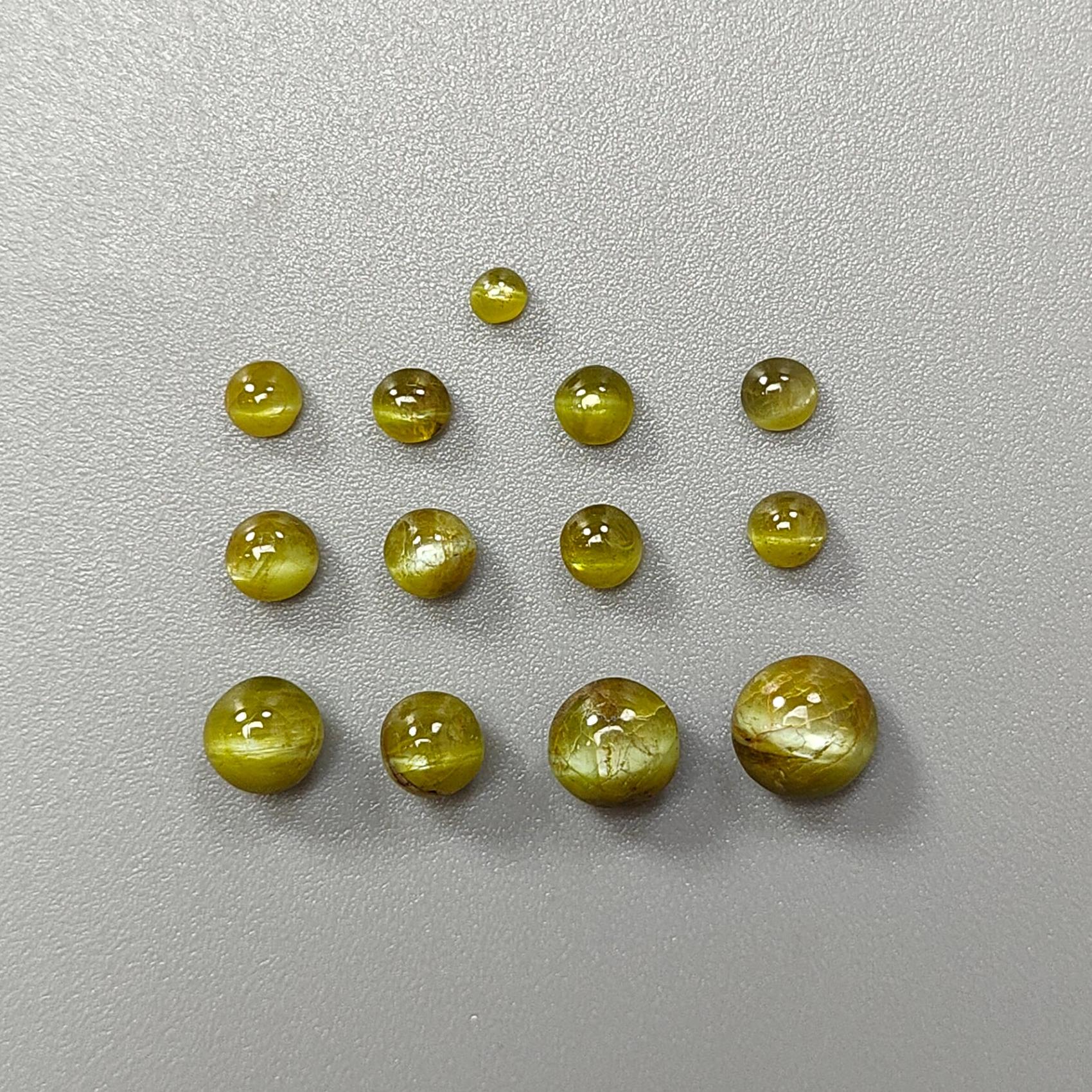 Chrysoberyl Cat's Eye Gemstone Cabochon: Natural Untreated Unheated Cat's Eye Round Shape 12pcs, 13pcs Lots For Jewelry June Birthstone