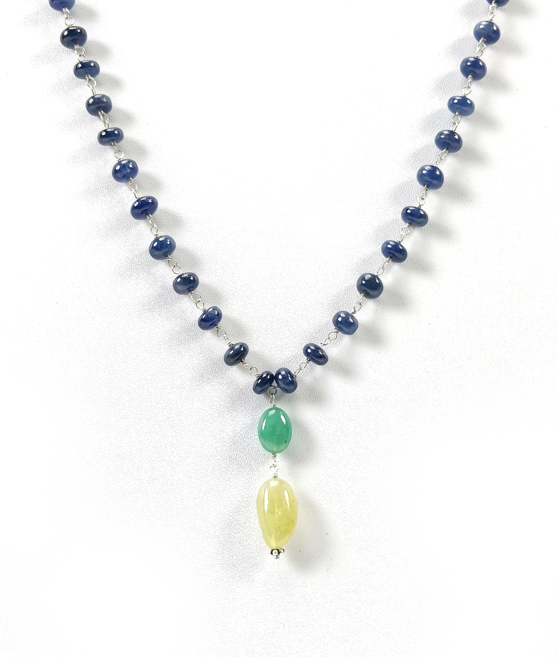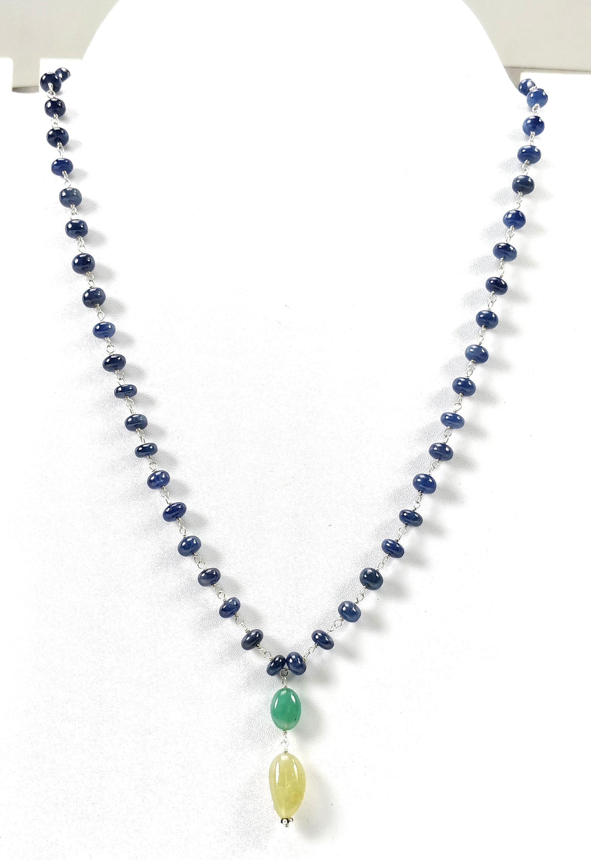 Jewelry Type : YELLOW BLUE SAPPHIRE EMERALD & CAT'S EYE Beads NECKLACE