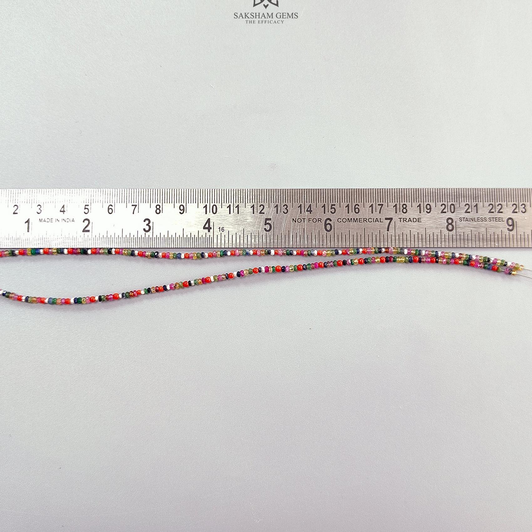 Natural Precious Gemstone NAVRATNA Multi Sapphire Round Pearl Coral Hessonite Emerald Ruby 28.20cts, 2.5mm - 3mm 18" Faceted Loose Beads