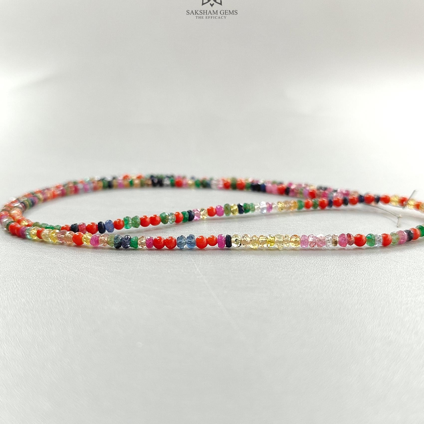 Natural Precious Gemstone NAVRATNA Multi Sapphire Round Pearl Coral Hessonite Emerald Ruby 30.20cts, 2.5mm - 3mm 17.5" Faceted Loose Beads