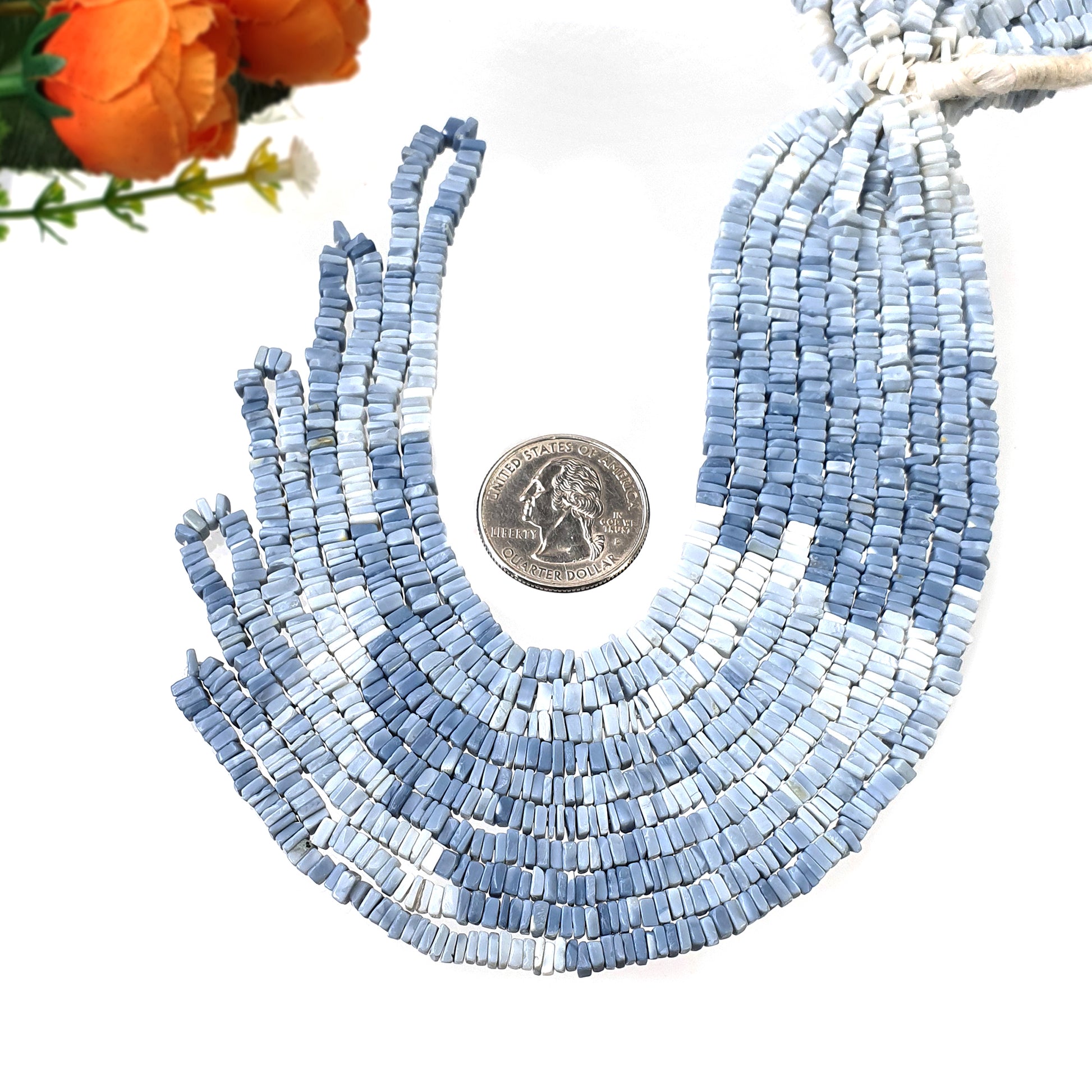 OPAL Gemstone Loose BEADS : Natural Color Enhanced Shaded Blue Opal Loose Square Heishe Statement Beads 17"