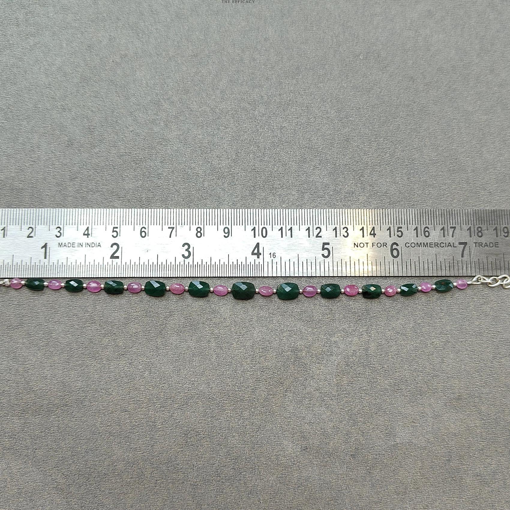 Quartz & Sapphire Gemstone Beads Bracelet : 4.04gms Green Quartz Pink Sapphire 925 Sterling Sliver Beaded Bracelet Checker Cut Bracelet 7.5"