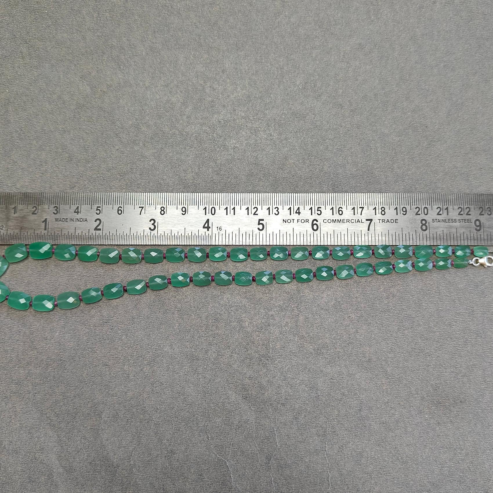 Quartz & Ruby Beads Necklace : 17.21gms 925 Sterling Silver Natural Green Quartz Red Ruby Briolette Faceted Cushion Necklace 18"