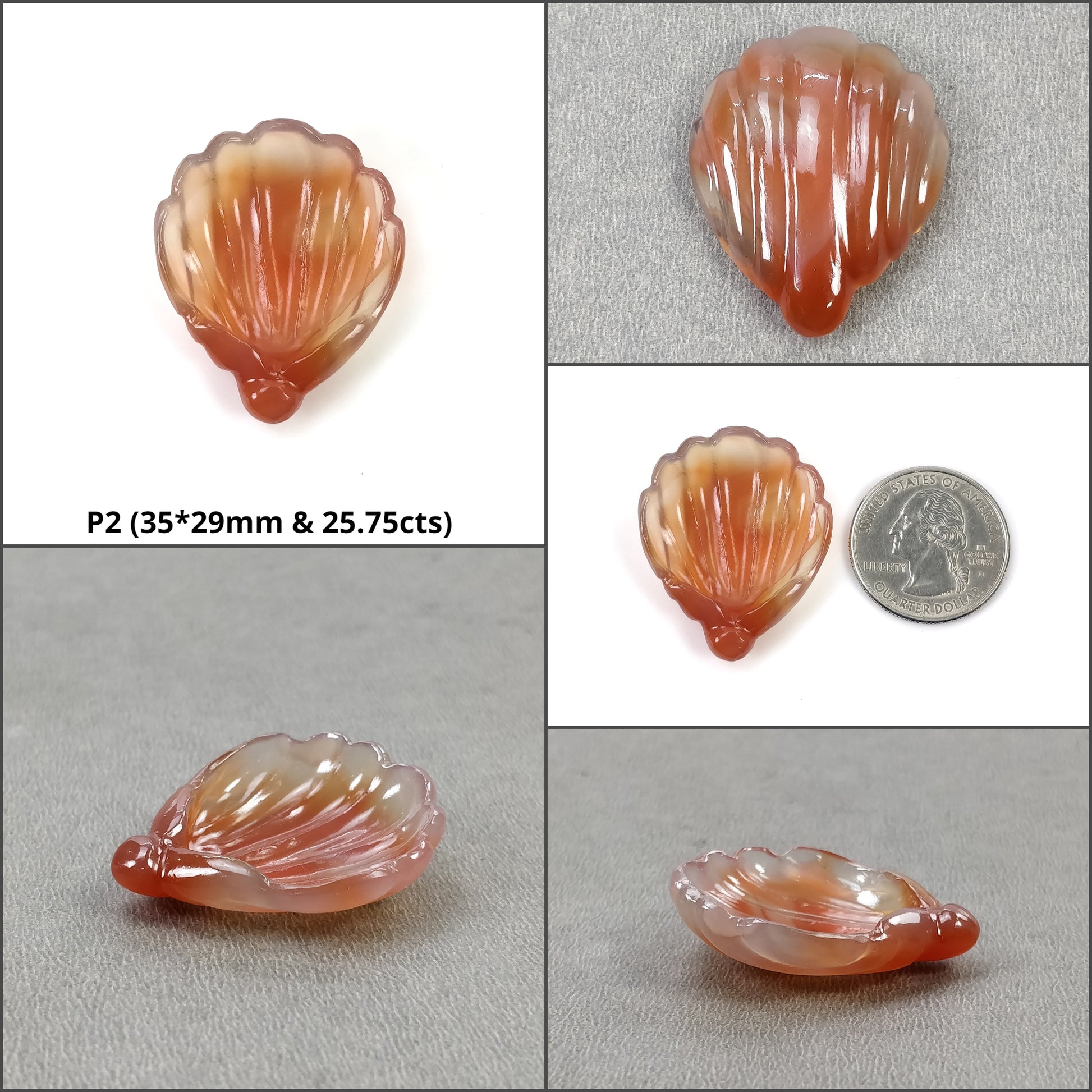 Agate Gemstone Carving : Natural Untreated Unheated Orange Agate Hand Carved SEA SHELL