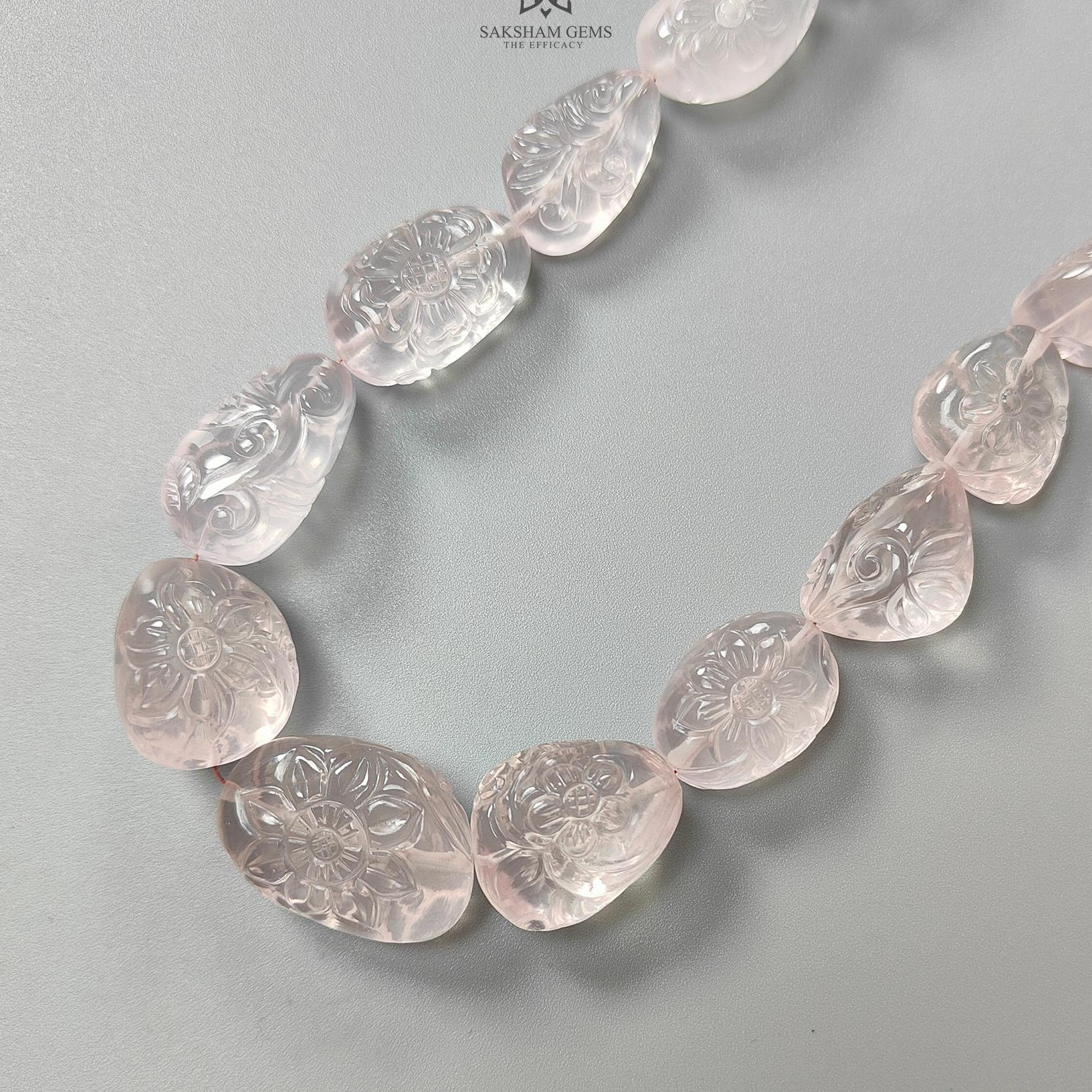 Pink Rose Quartz Loose Beads: 660.00cts Natural Untreated Quartz Fancy Shape Hand Carved Beads 15.5*12.5mm - 31*22mm 20"