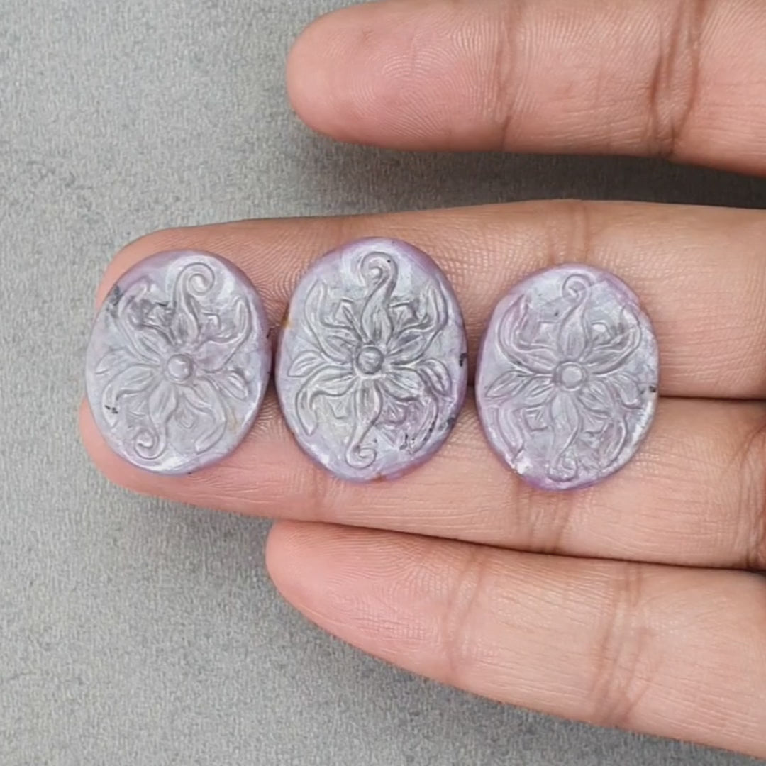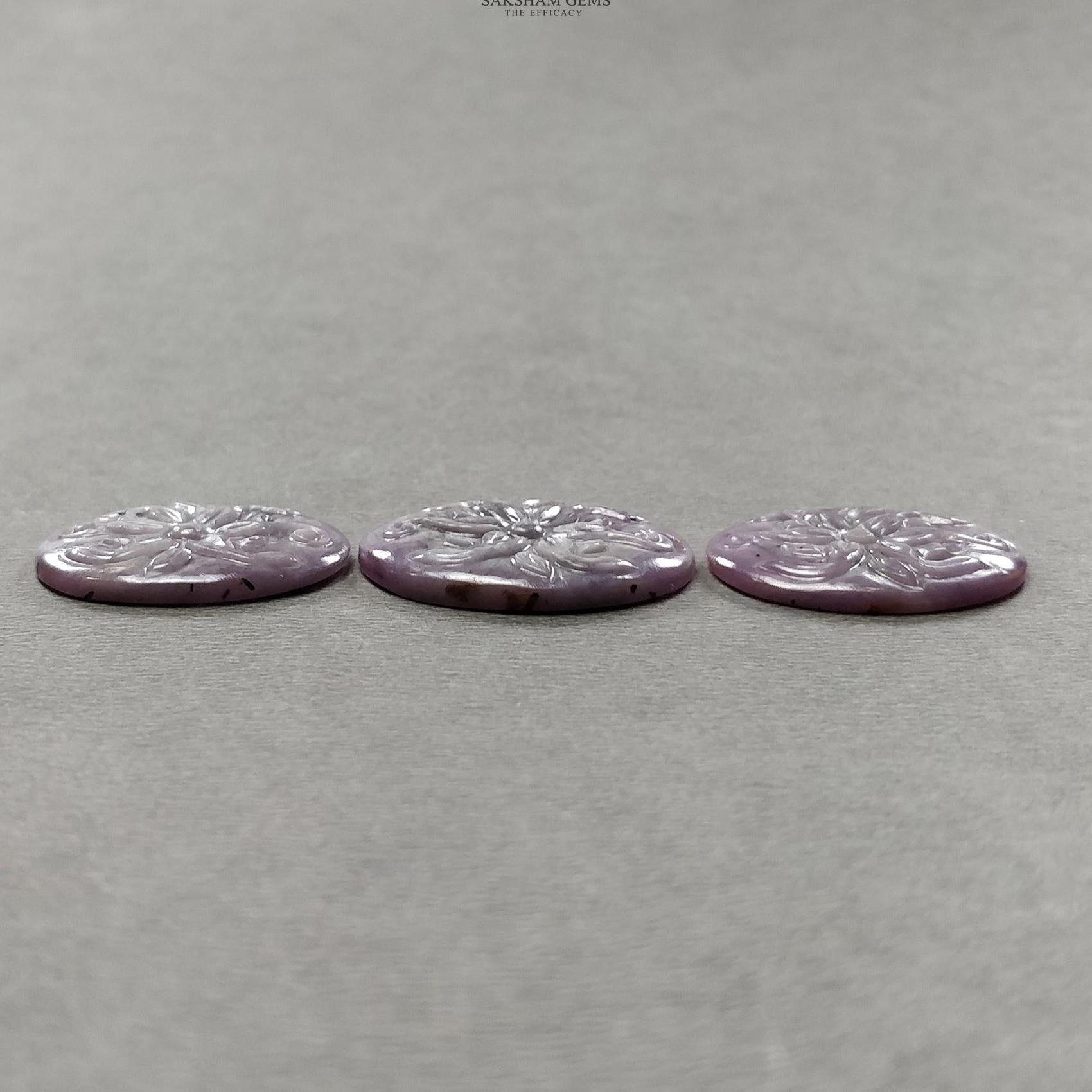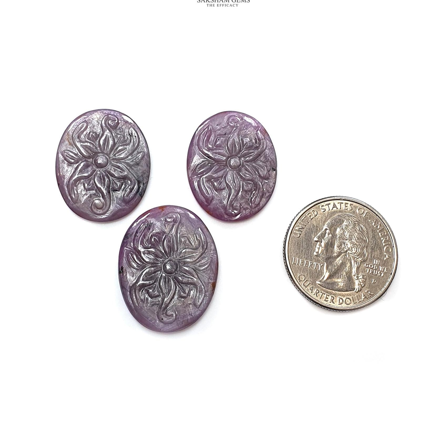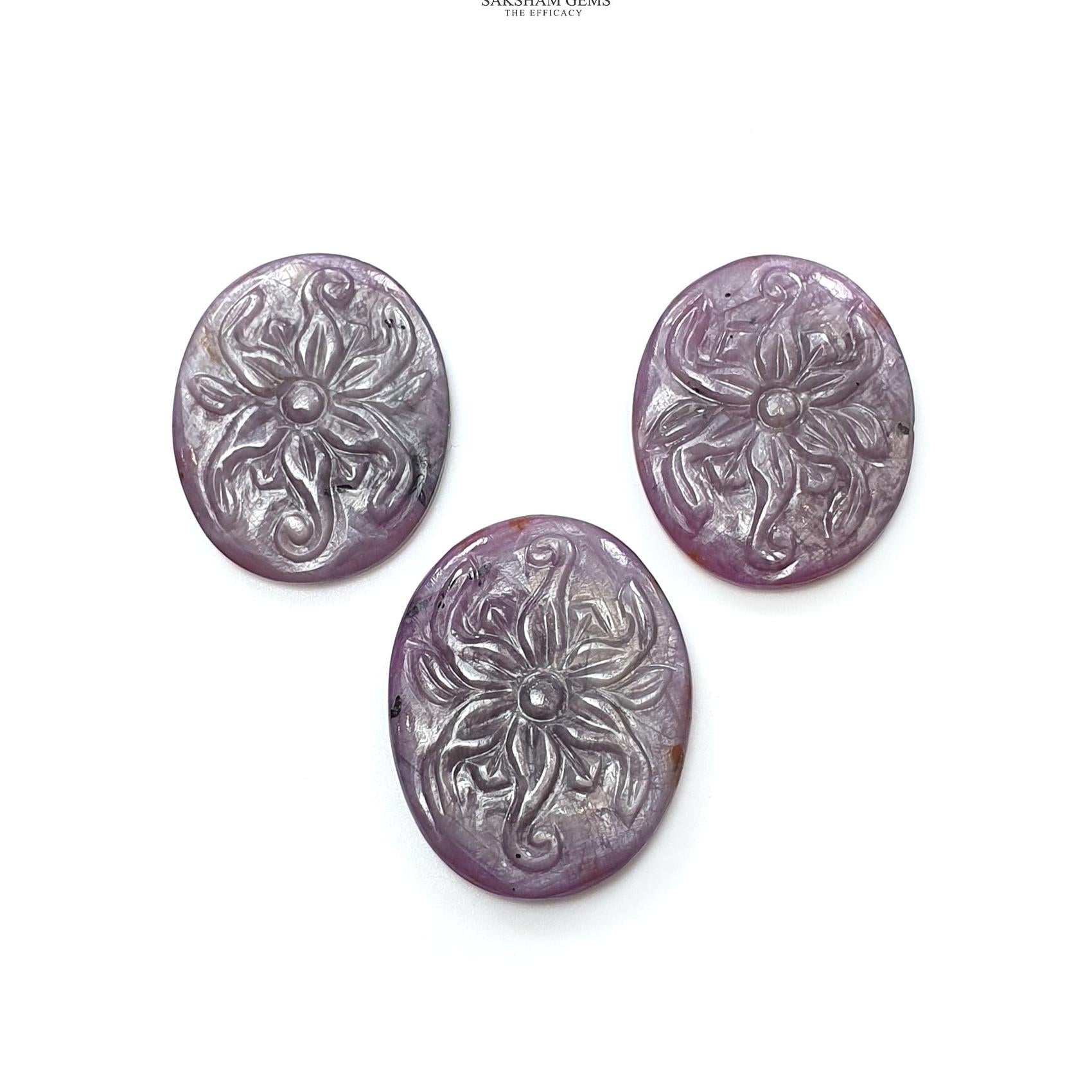 Raspberry Pink Sapphire Gemstone Carving : Natural Untreated Sapphire Hand Carved Oval Shape 3pcs Set