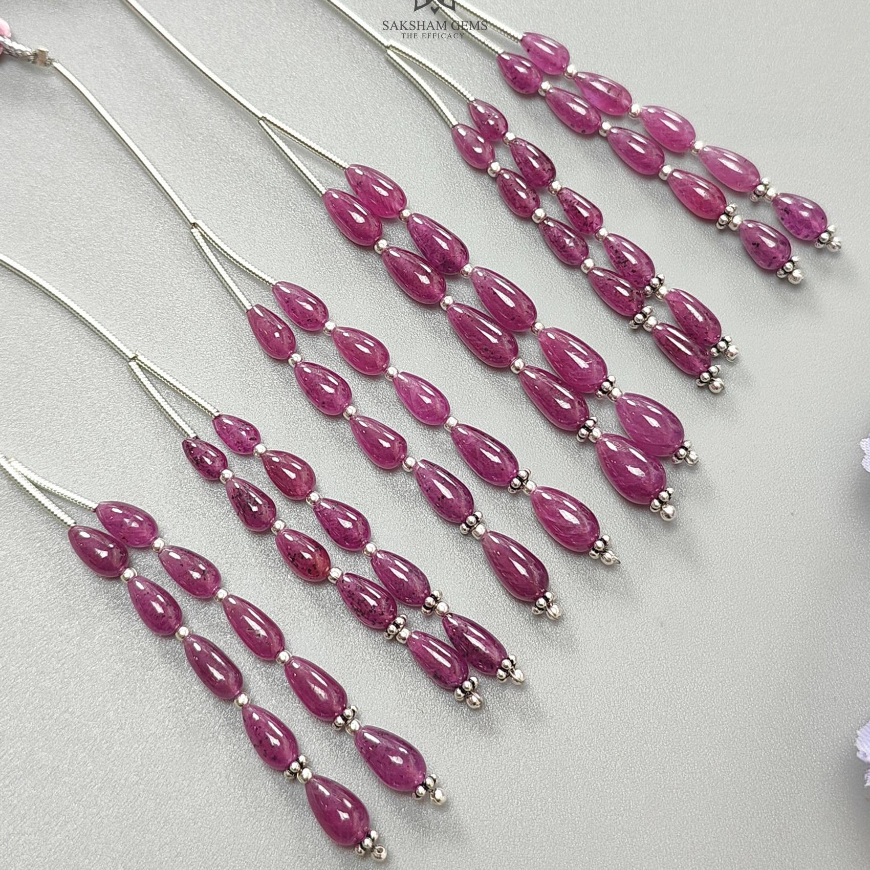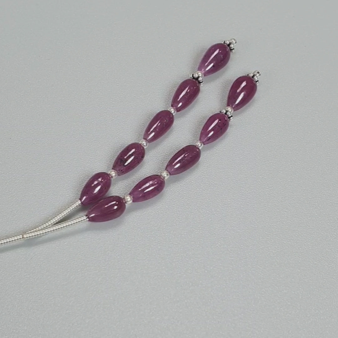 Purple Ruby Teardrop Loose Beads: 17.30Cts Natural Untreated Ruby Gemstone 925 Sterling Silver 2" 7mm - 8mm Plain Beads