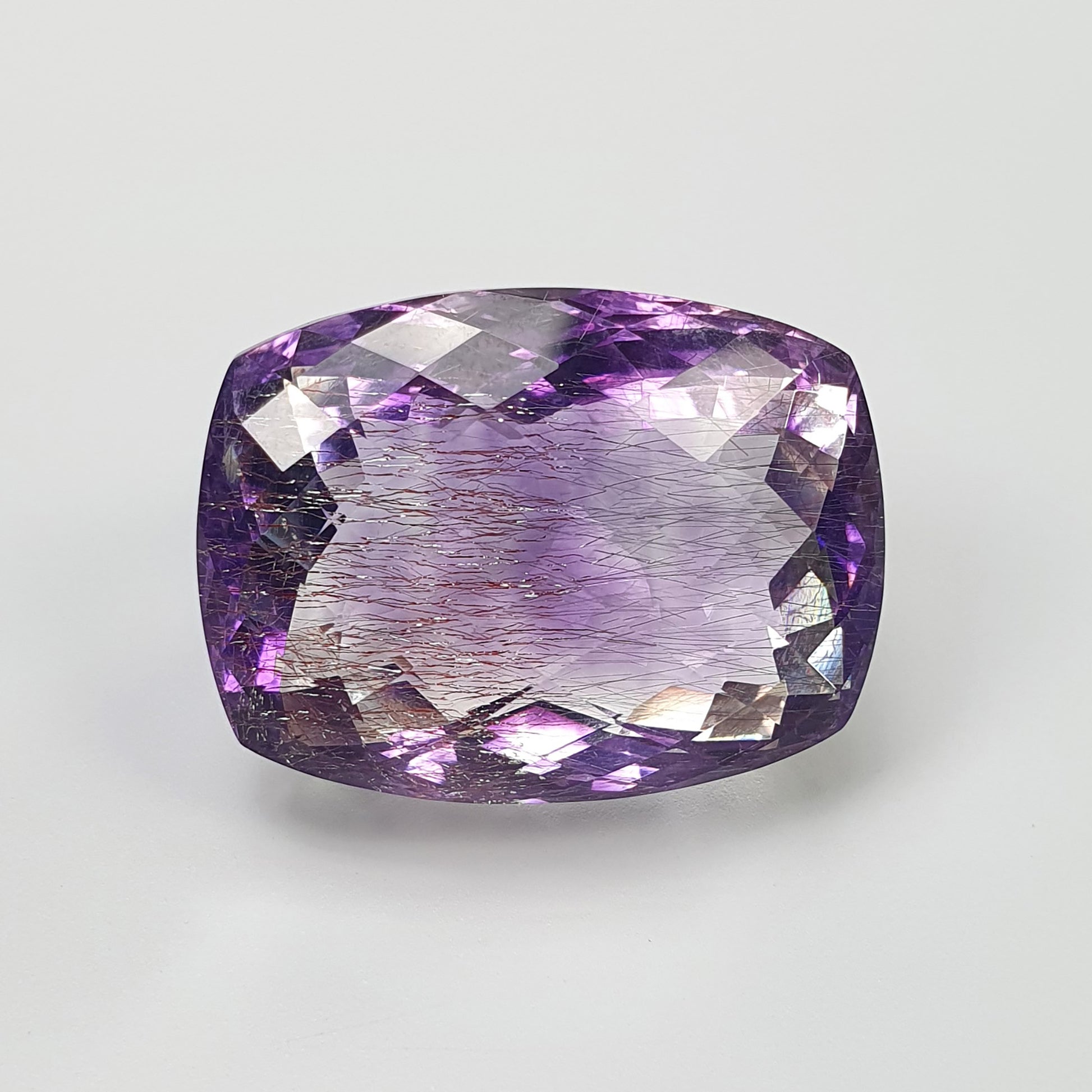 Purple RUTILE AMETHYST Gemstone Checker Cut : 54.00cts Natural Untreated Amethyst Cushion Shape 25*19mm (With Video)