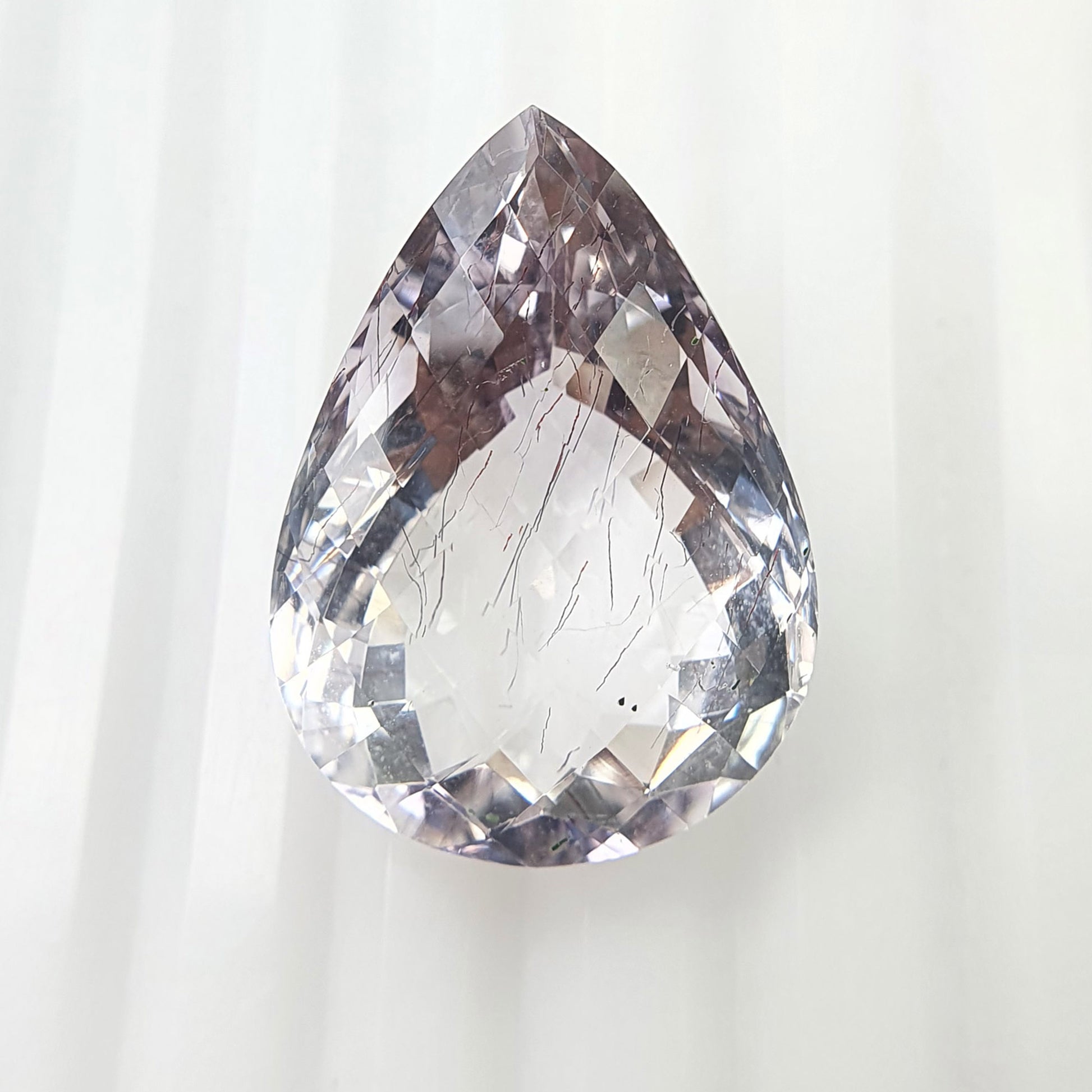 PURPLE RUTILE AMETHYST Quartz Gemstone Checker Cut : 23.95cts Natural Untreated Amethyst Pear Shape Cut 24*17mm (With Video)
