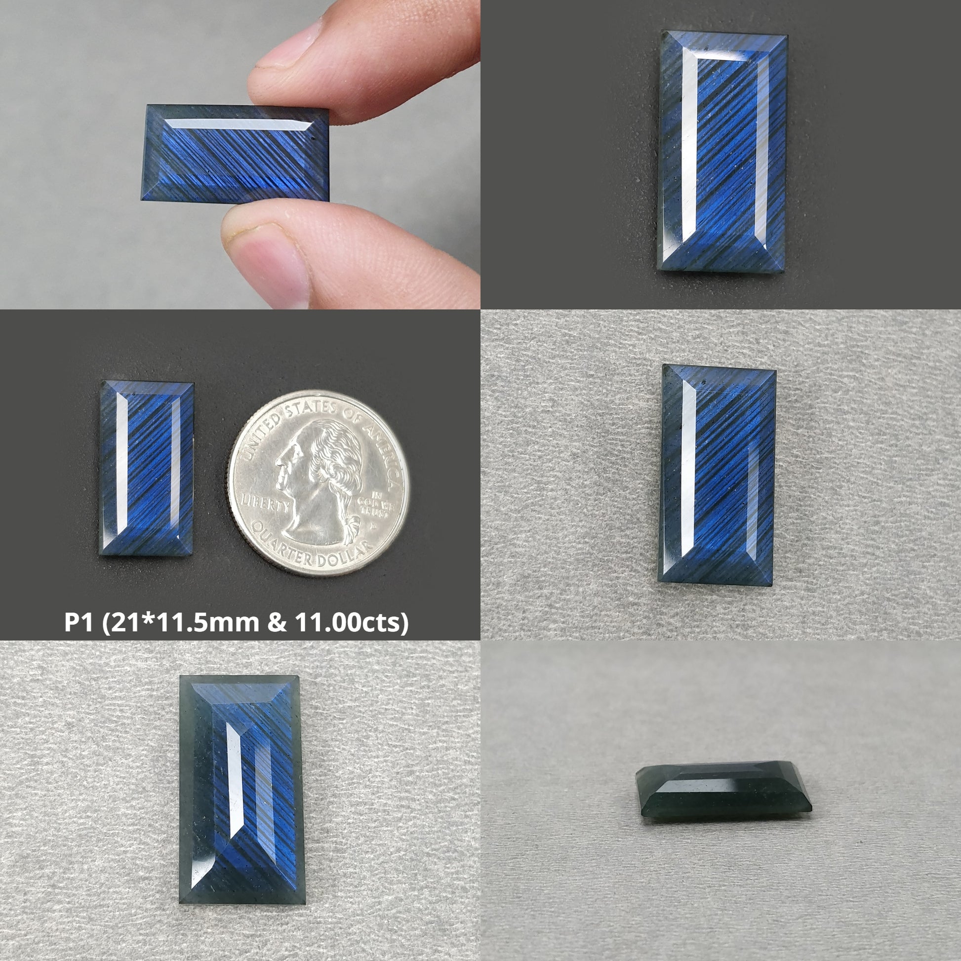 Rainbow Flashing LABRADORITE Gemstone Normal Cut : Natural Untreated Blue Labradorite Baguette Shape