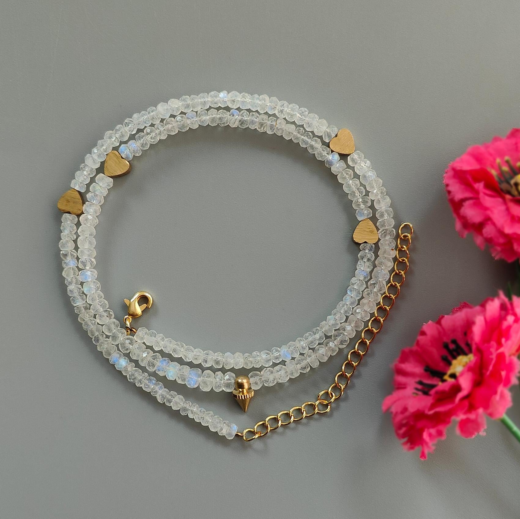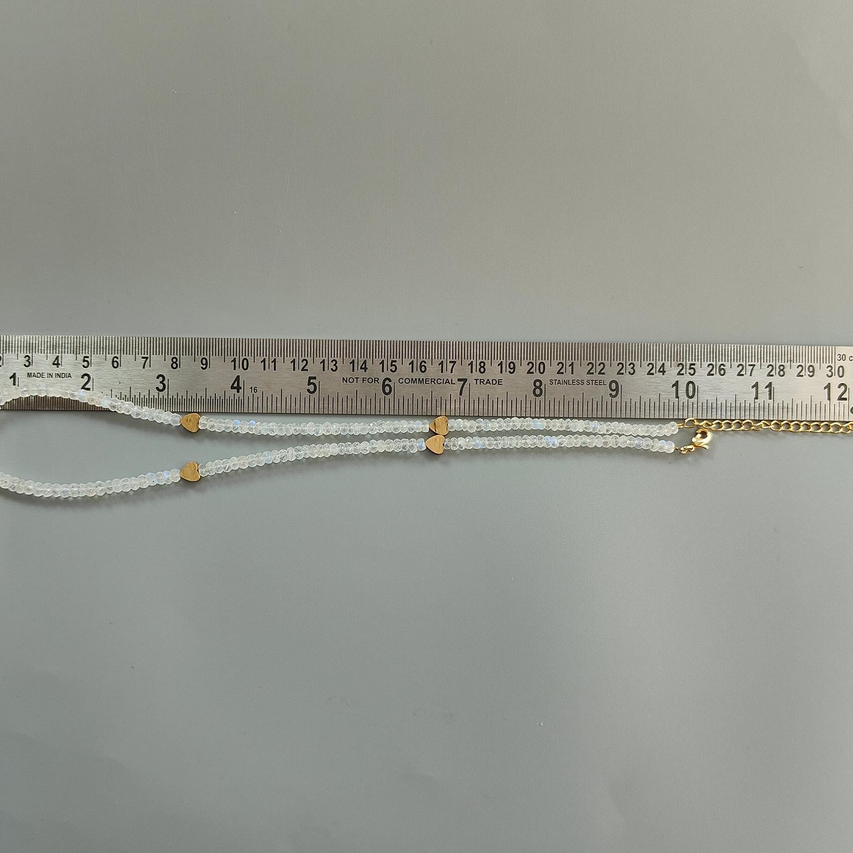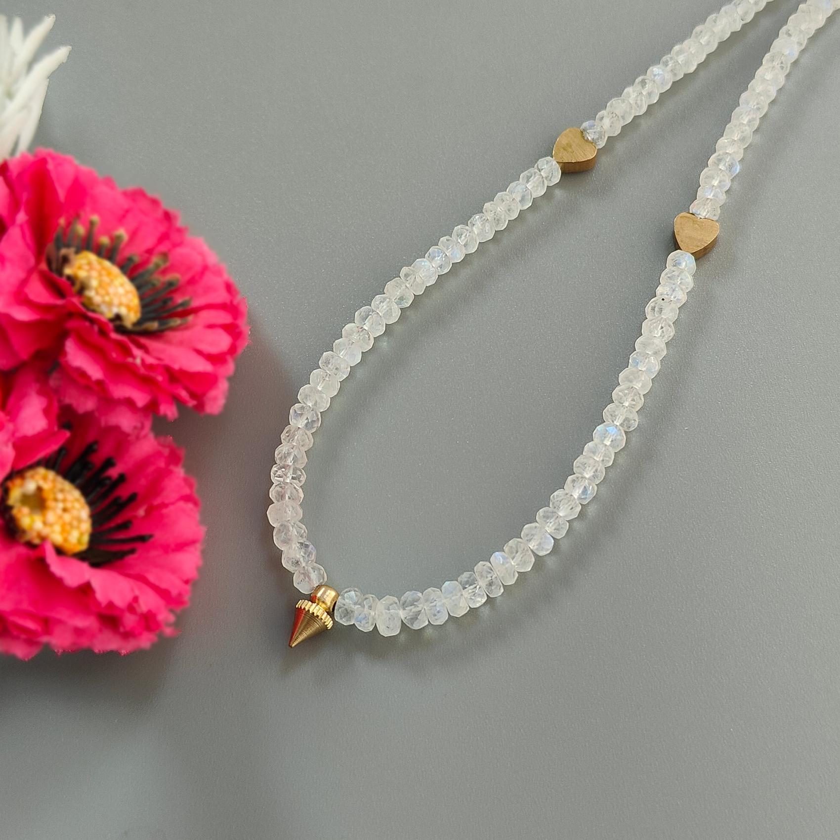 Rainbow Moonstone Gemstone Beads Necklace: 17.96gms Natural Moonstone Plain Rondelle Brass Necklace 19.5" Necklace June Birthstone