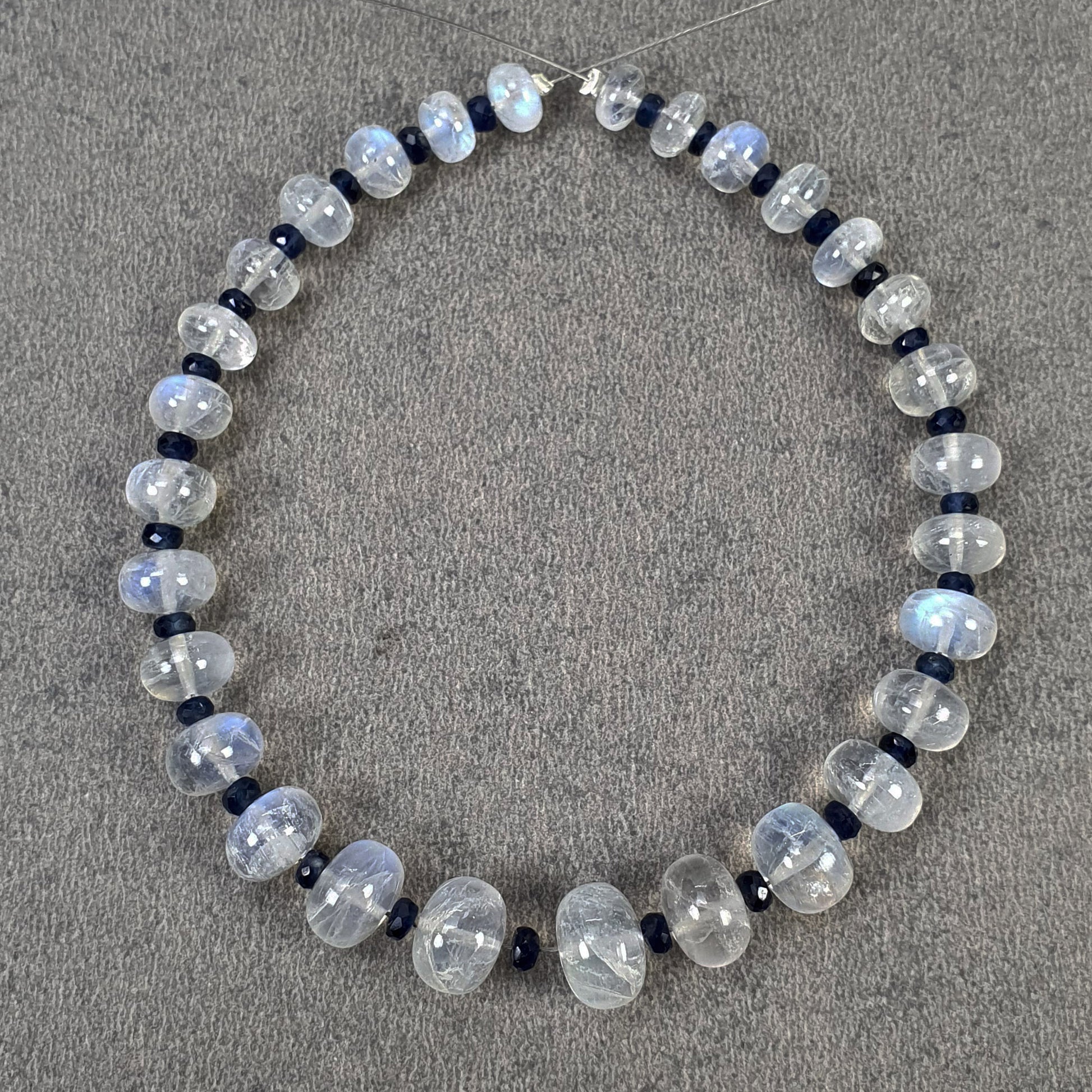 RAINBOW MOONSTONE & BLUE Sapphire Gemstone Loose Beads : 53.70cts Natural Untreated Moonstone Oval Plain Nuggets 6mm - 8.5mm 7" (With Video)