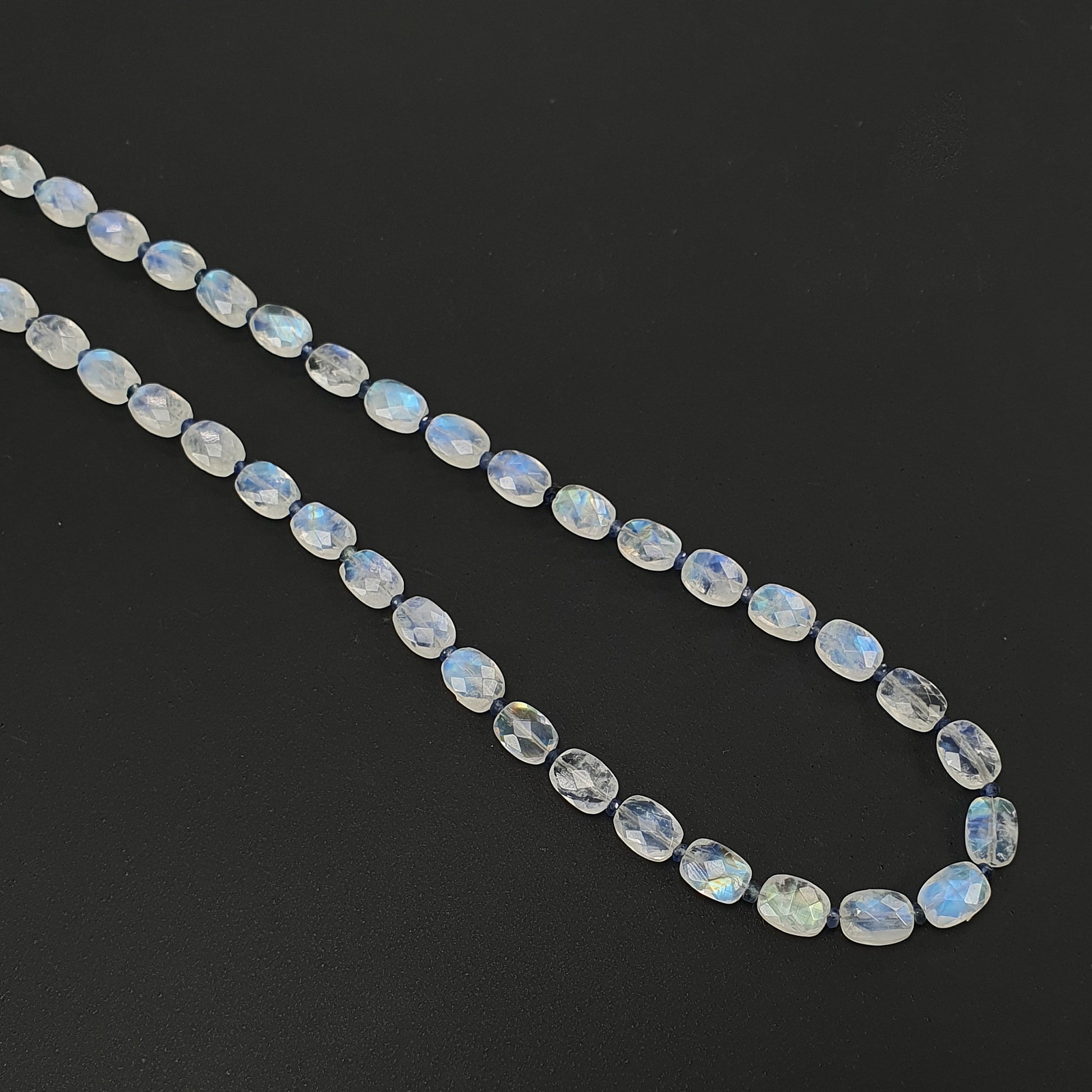 Rainbow Moonstone & Blue Sapphire Beads Necklace : 69.60cts Natural Untreated With 925 Sterling Silver Faceted Necklace 7*5mm 20.50"
