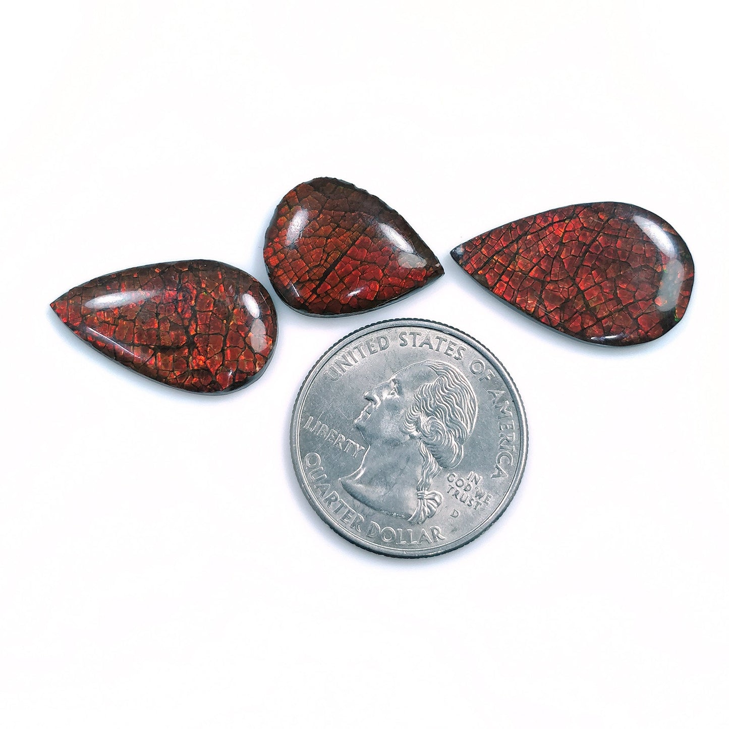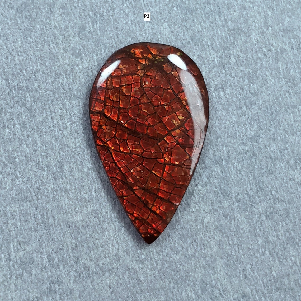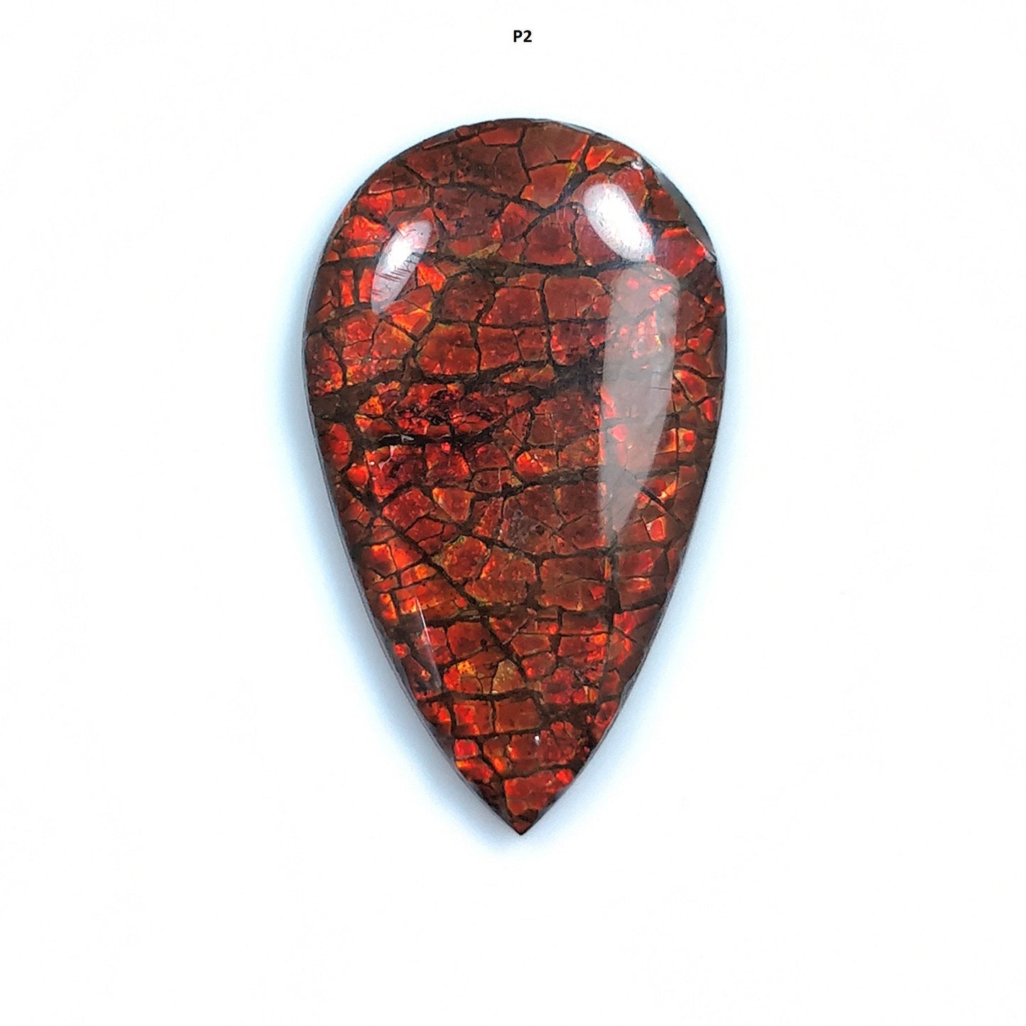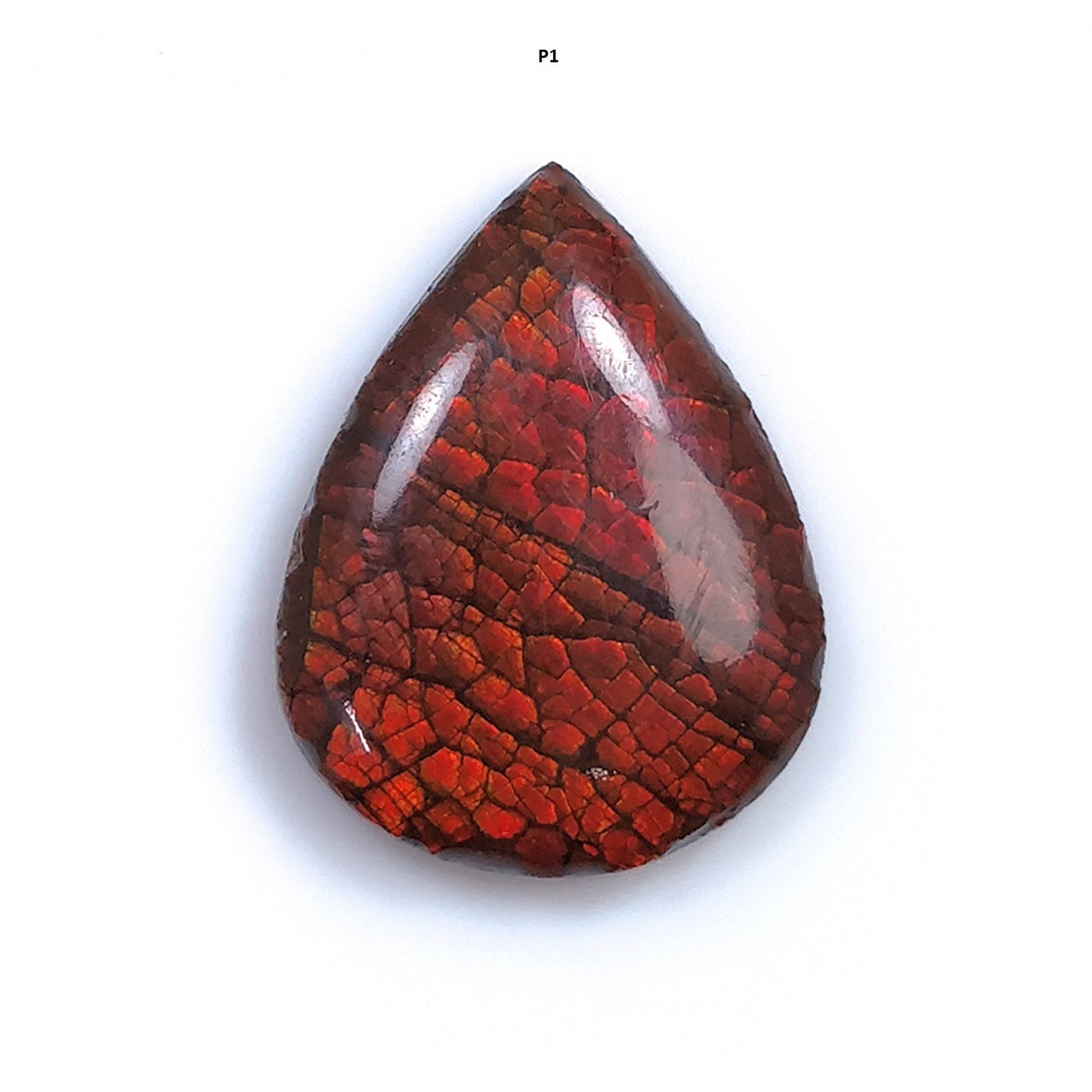 Rare Fire AMMOLITE Gemstone Cabochon : Natural Fossilized Shell Bi-Color Ammolite Pear Shape Cabochon 1pc (With Video)