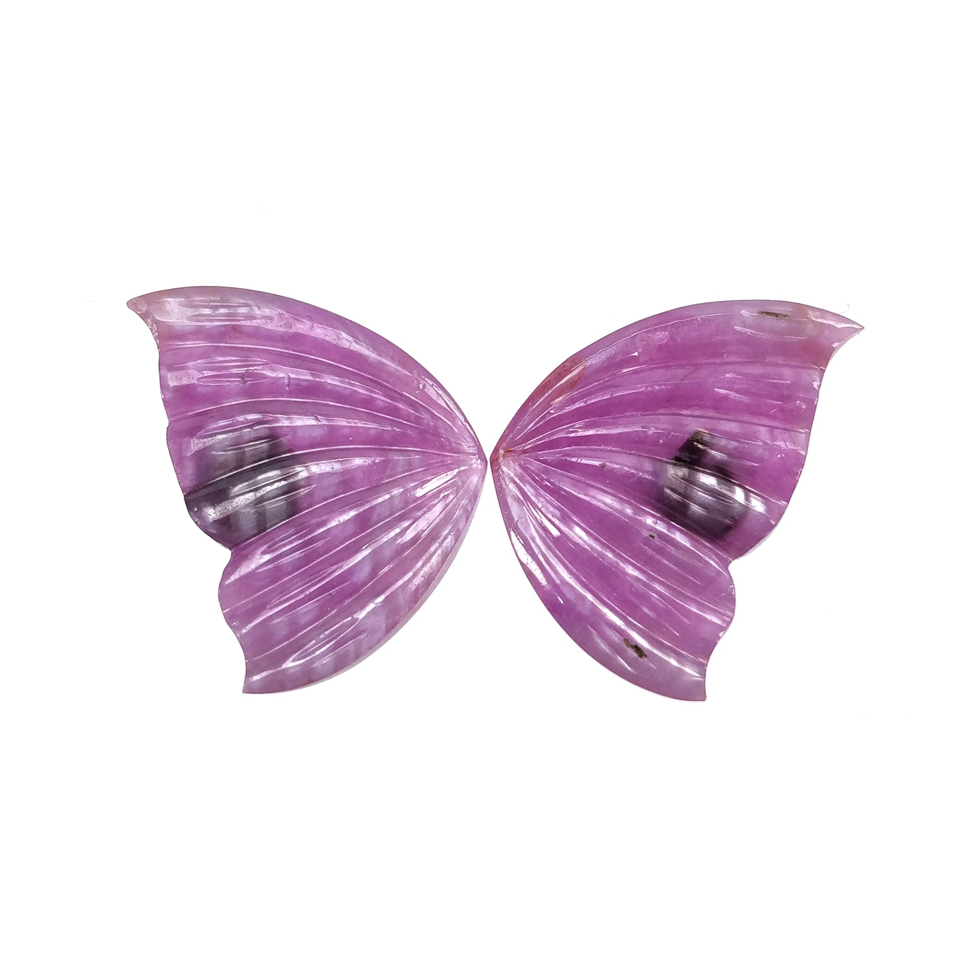 Raspberry Sheen SAPPHIRE Gemstone Carving : 29.45cts Natural Untreated Pink Sapphire Hand Carved BUTTERFLY 25*17mm Pair
