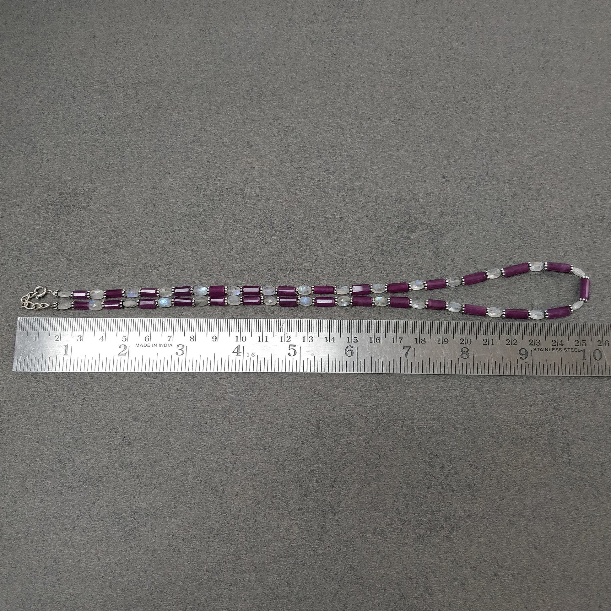 Raspberry Sapphire & Rainbow Moonstone Gemstone Fancy Cut NECKLACE: 95.35gms Natural Untreated Pencil 925 Sterling Silver 6mm - 10mm 19.25"