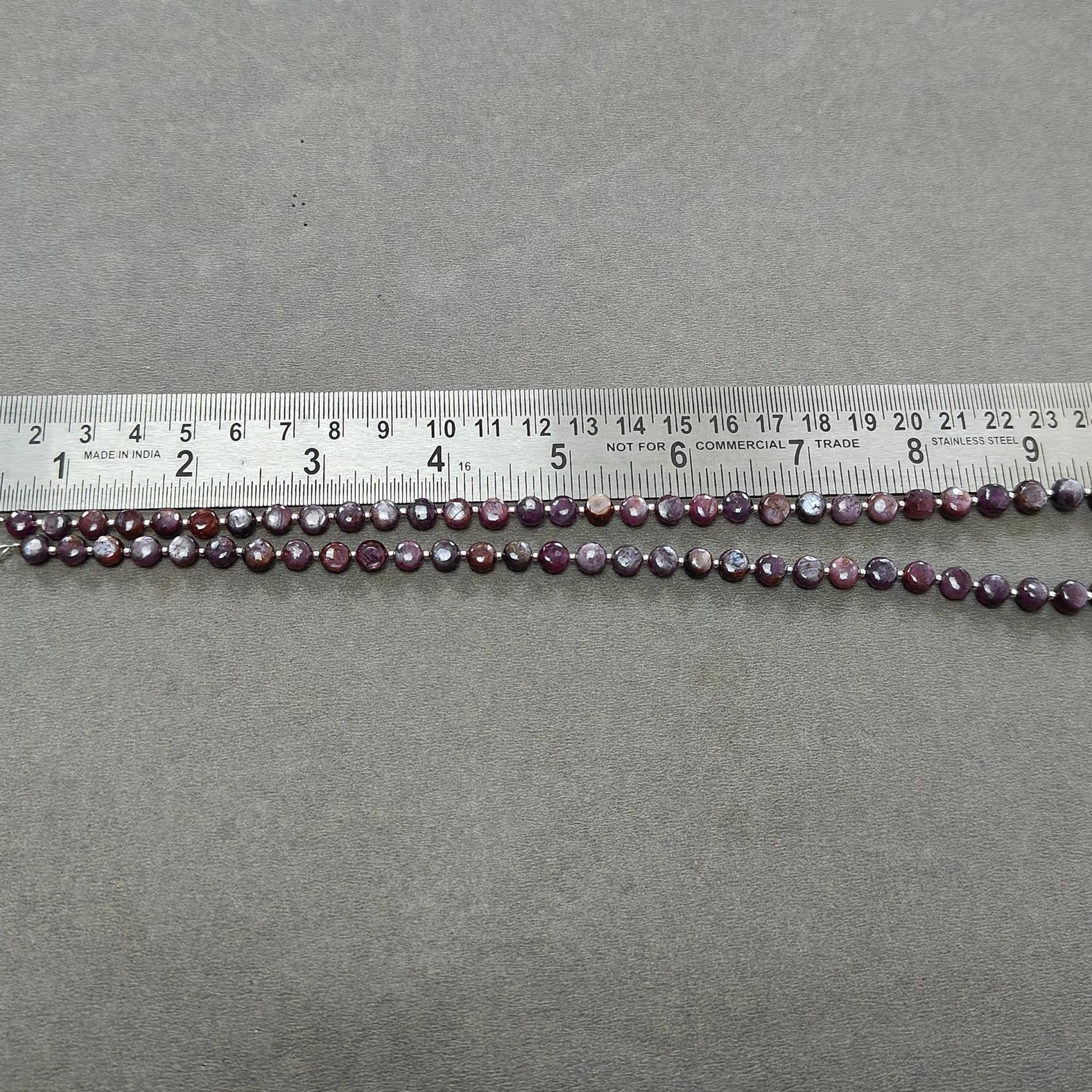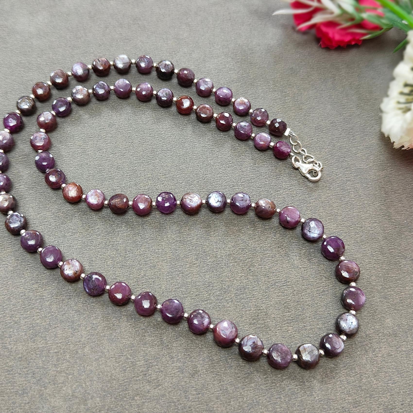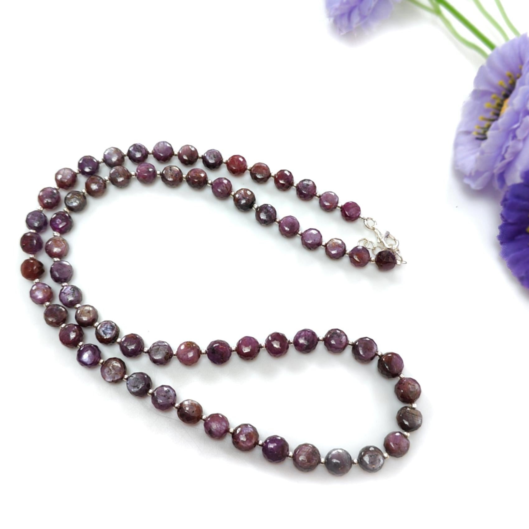 Raspberry Sheen Purple Pink Sapphire Gemstone Beads Necklace: 29.17gms (apx) Natural Sapphire Round Shape Side Faceted Necklace 6mm-7mm 20"