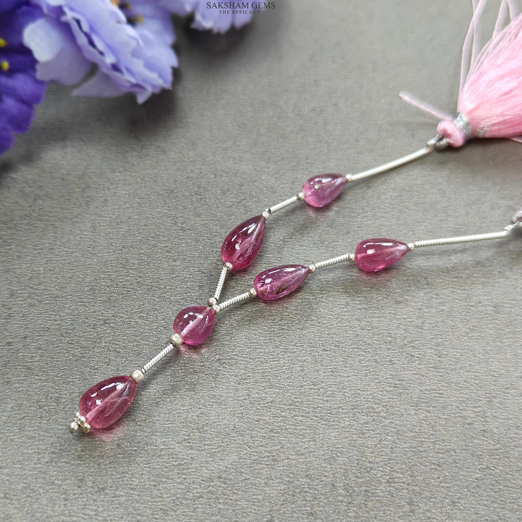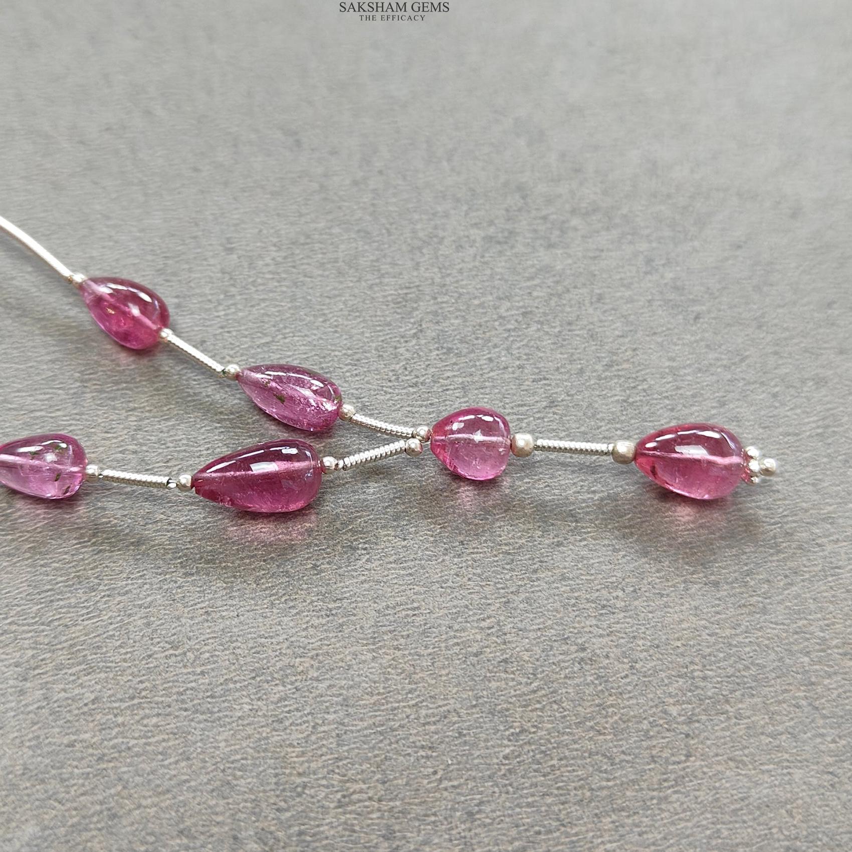 Rubellite Tourmaline Gemstone Loose Beads : 17.00cts Natural Untreated Tourmaline Plain Teardrops Nuggets 7mm - 11mm