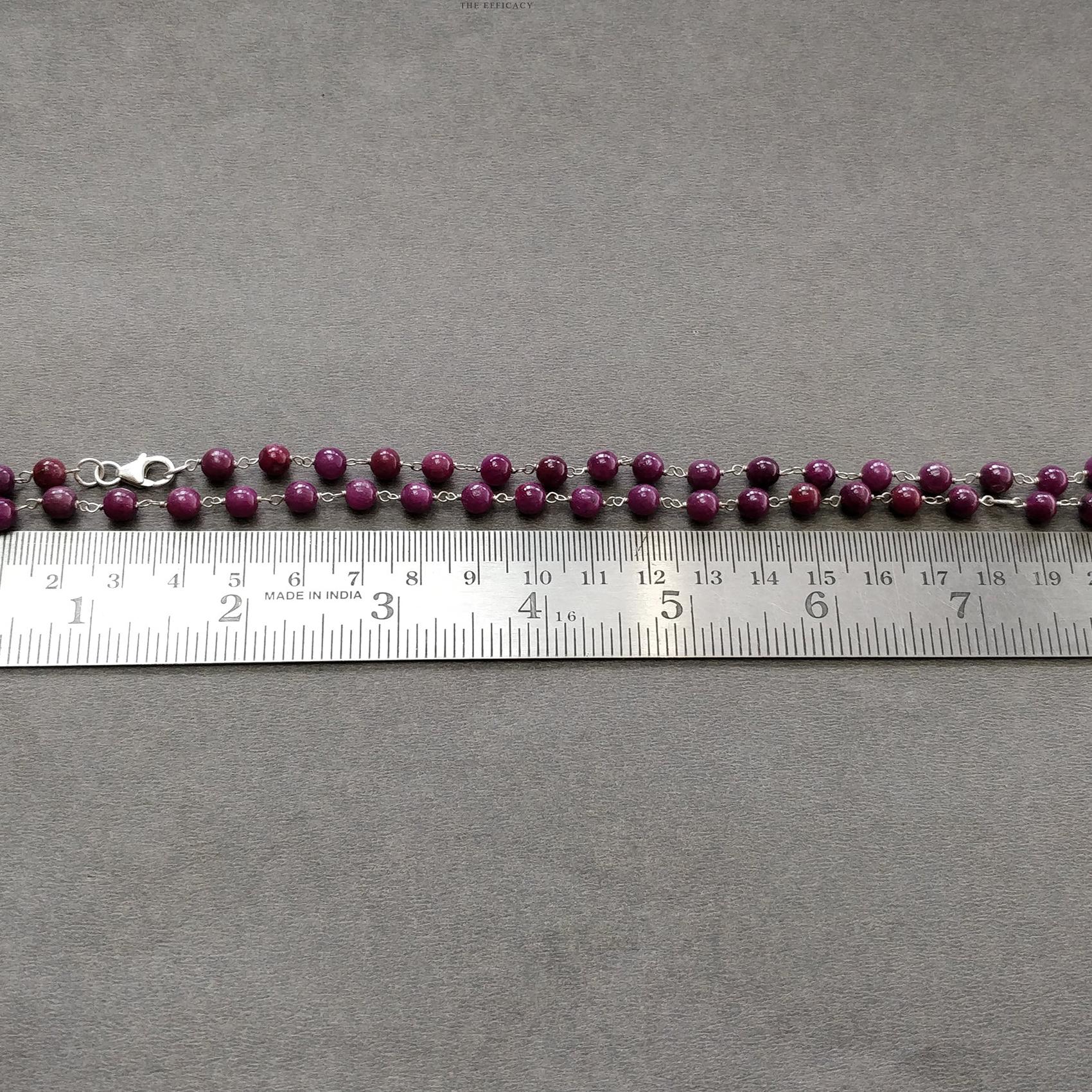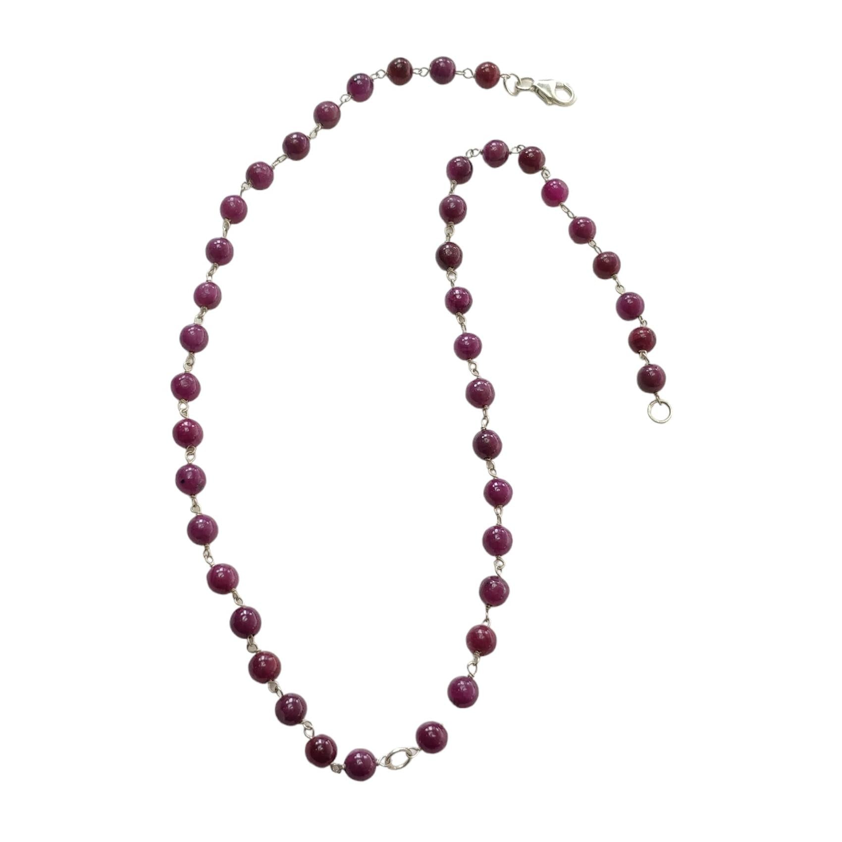 RUBY Gemstone With 925 Sterling Silver Beaded NECKLACE : 17.72gms Natural Untreated Plain Round Shape Beaded Necklace 19"