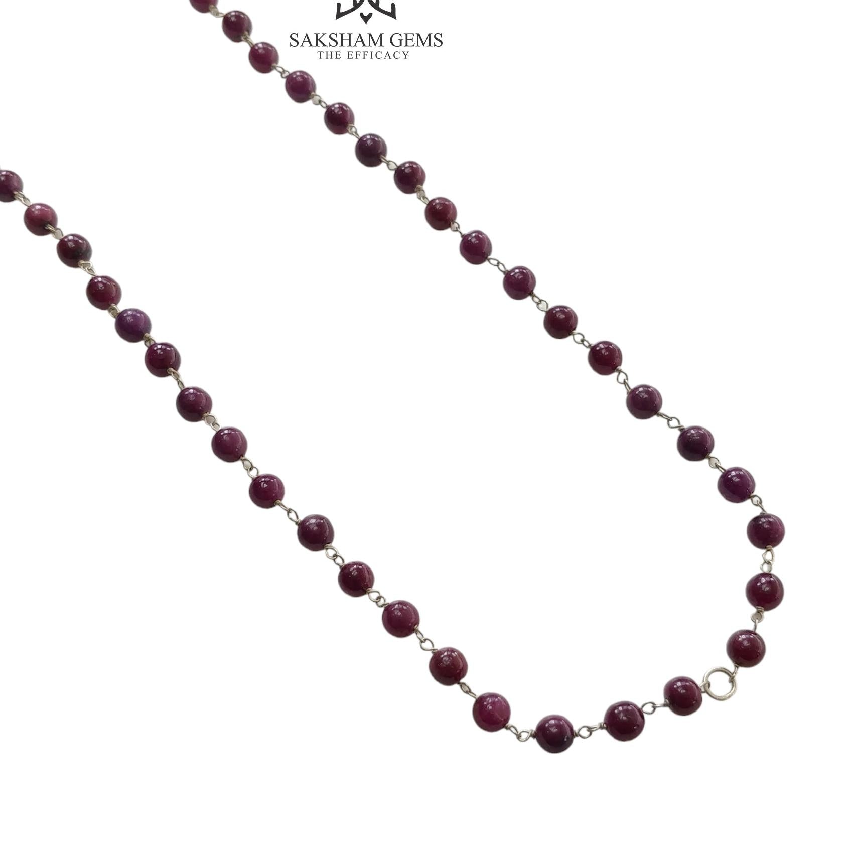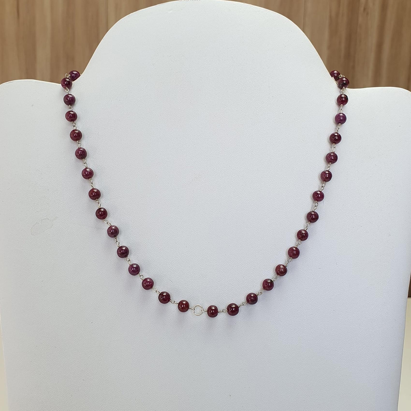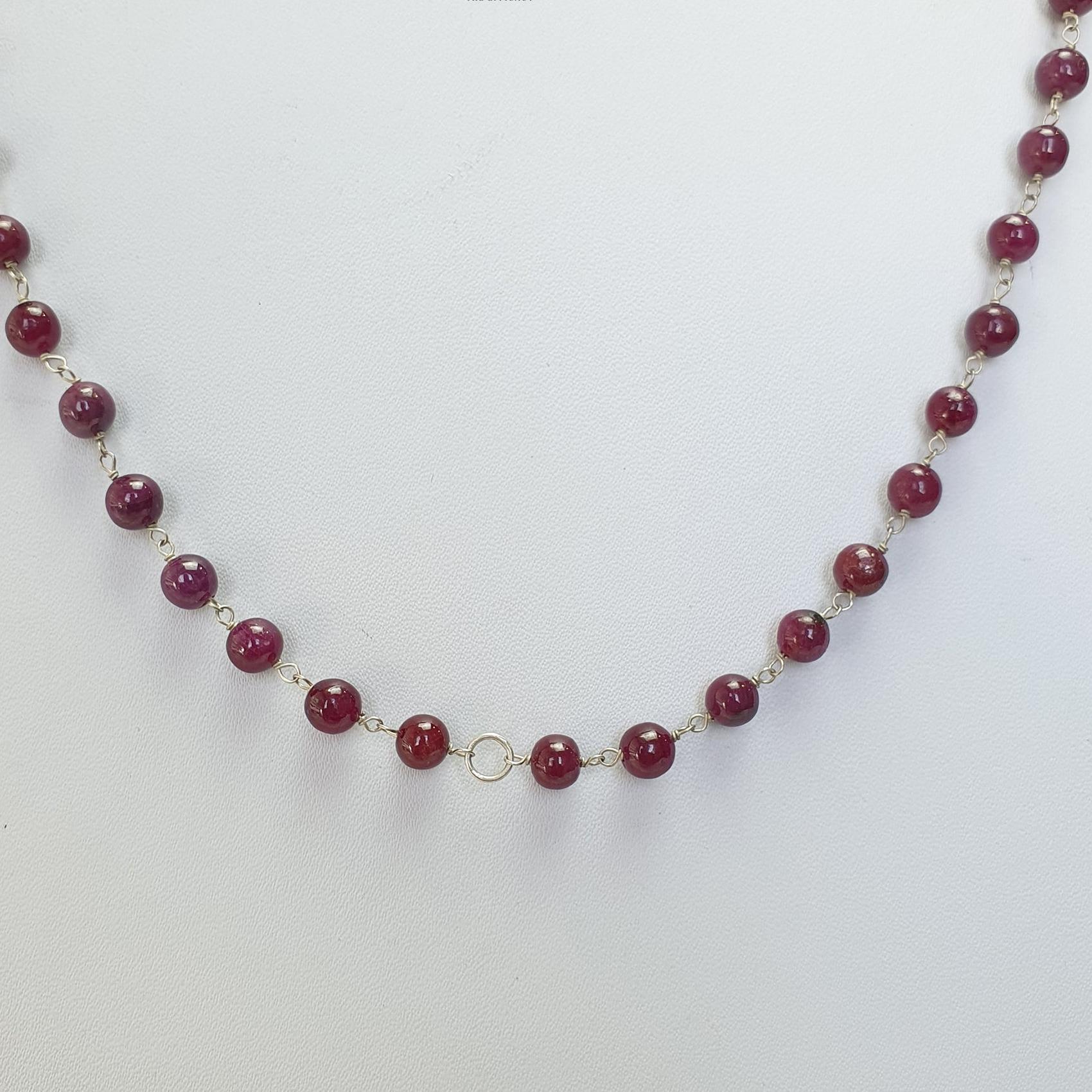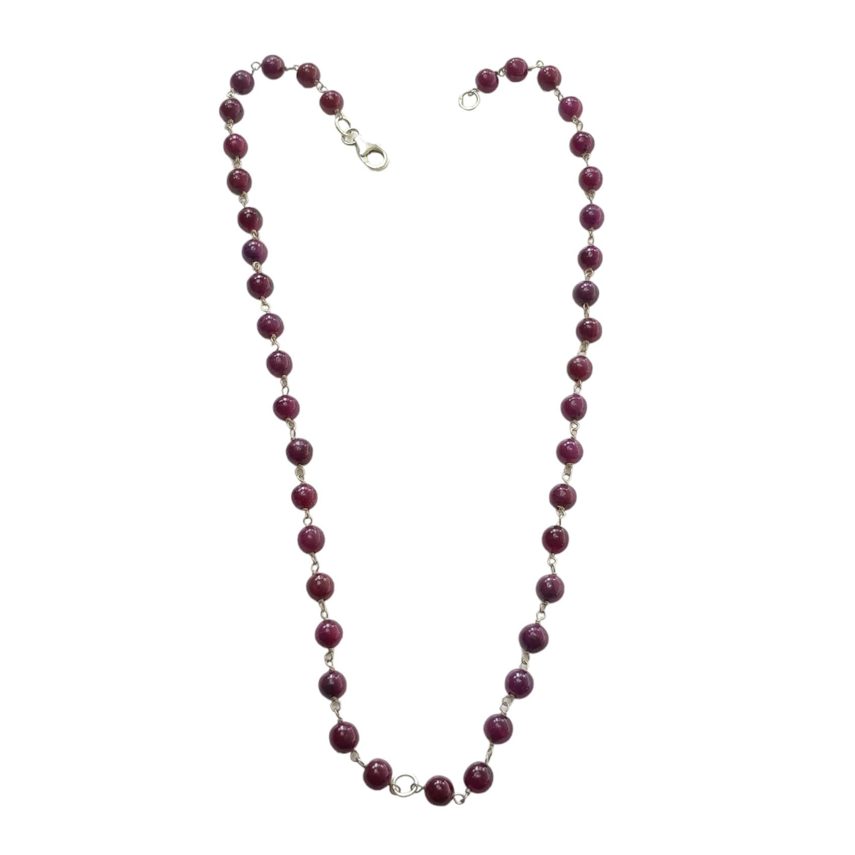 RUBY Gemstone With 925 Sterling Silver Beaded NECKLACE : 17.76gms Natural Untreated Plain Round Shape Beaded Necklace 17"