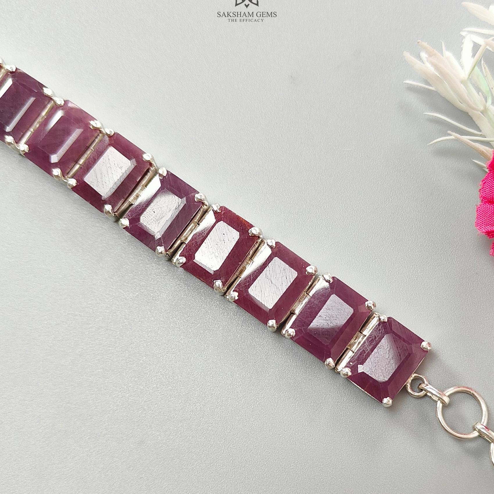 Ruby Faceted Bracelet: 52.06gms Natural Untreated Ruby Plain Baguette Shape 925 Sterling Silver Prong Set Bracelet 17*12mm 5.50"