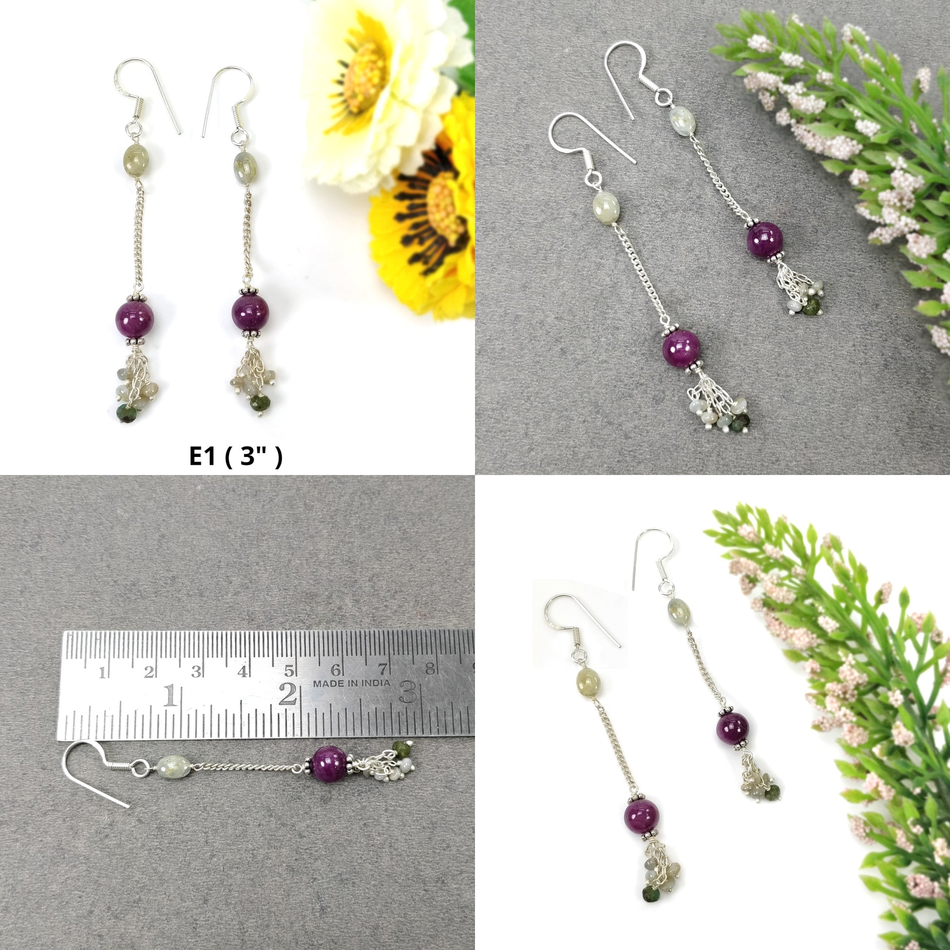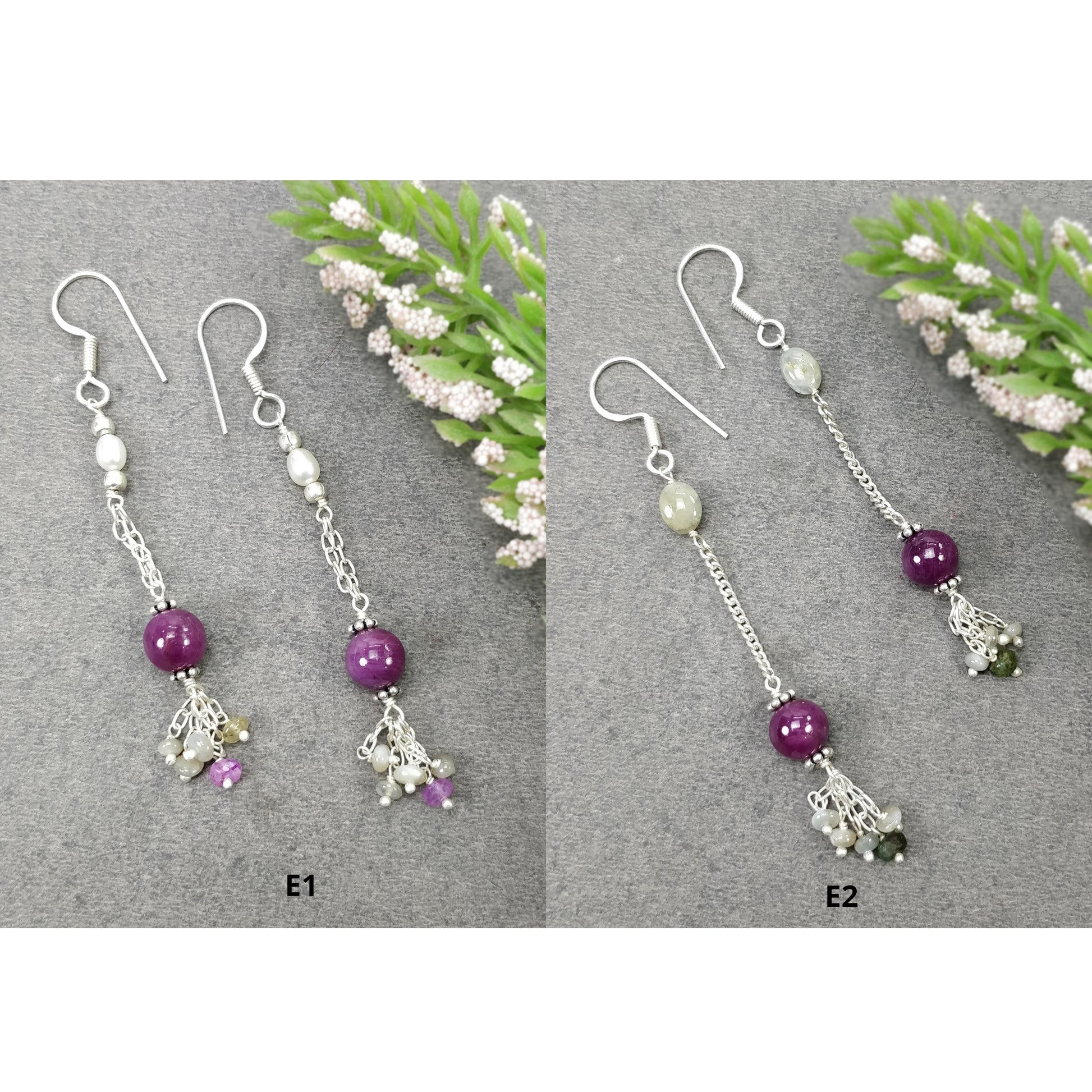 Ruby Chrysoberyl Cat's Eye Emerald & Pearl Gemstone Beaded Earring : Natural Untreated With 925 Sterling Silver Drop Dangle Hook Earrings