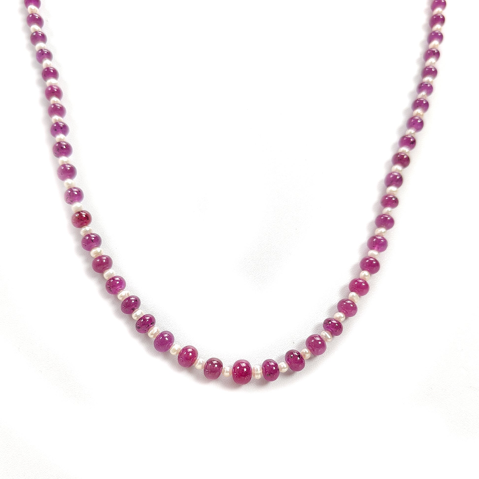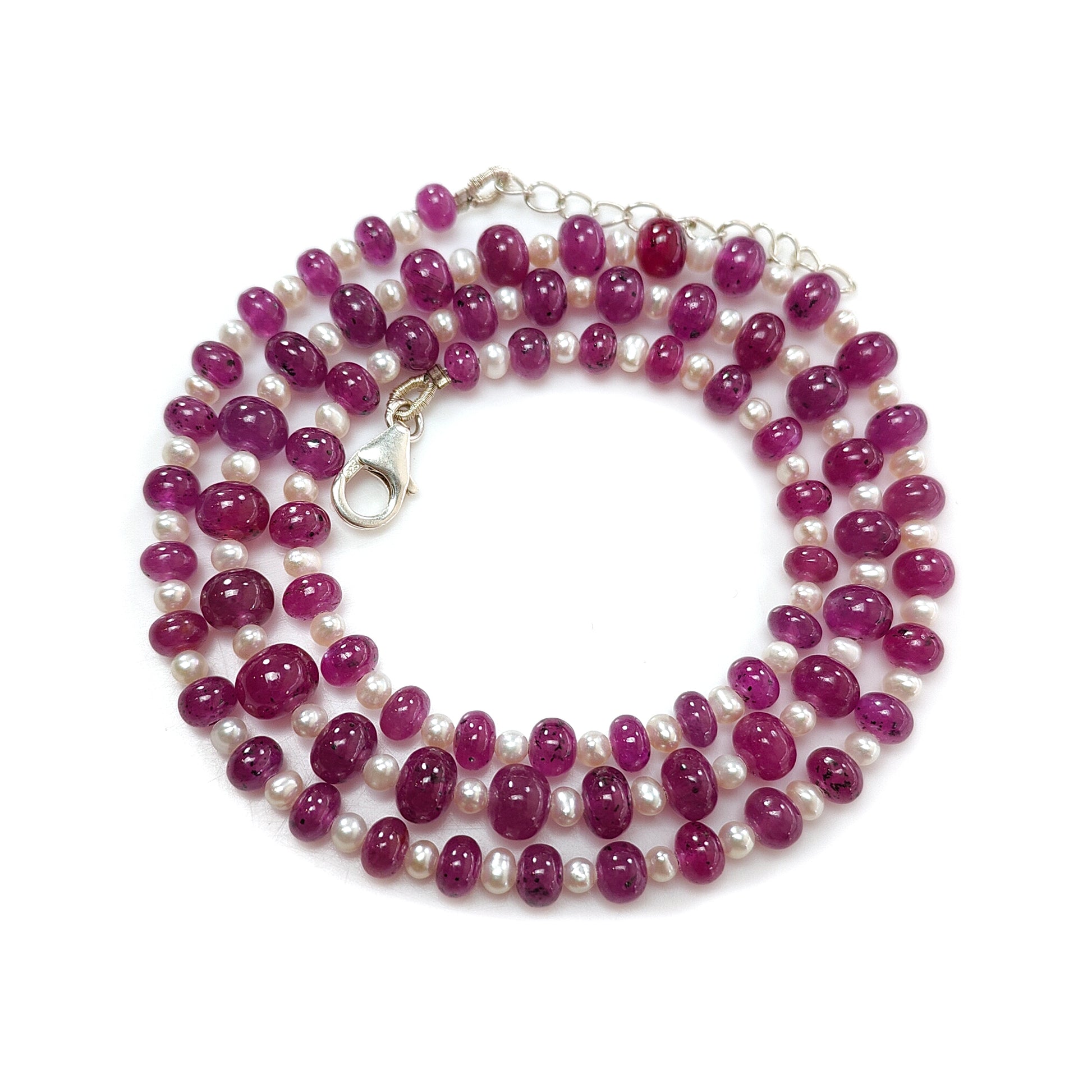 Ruby & White Pearl Gemstone Beads Necklace: 108.75cts 925 Sterling Silver Natural Red Ruby Plain Rondelle Necklace 3mm*4mm - 6.5mm 19"