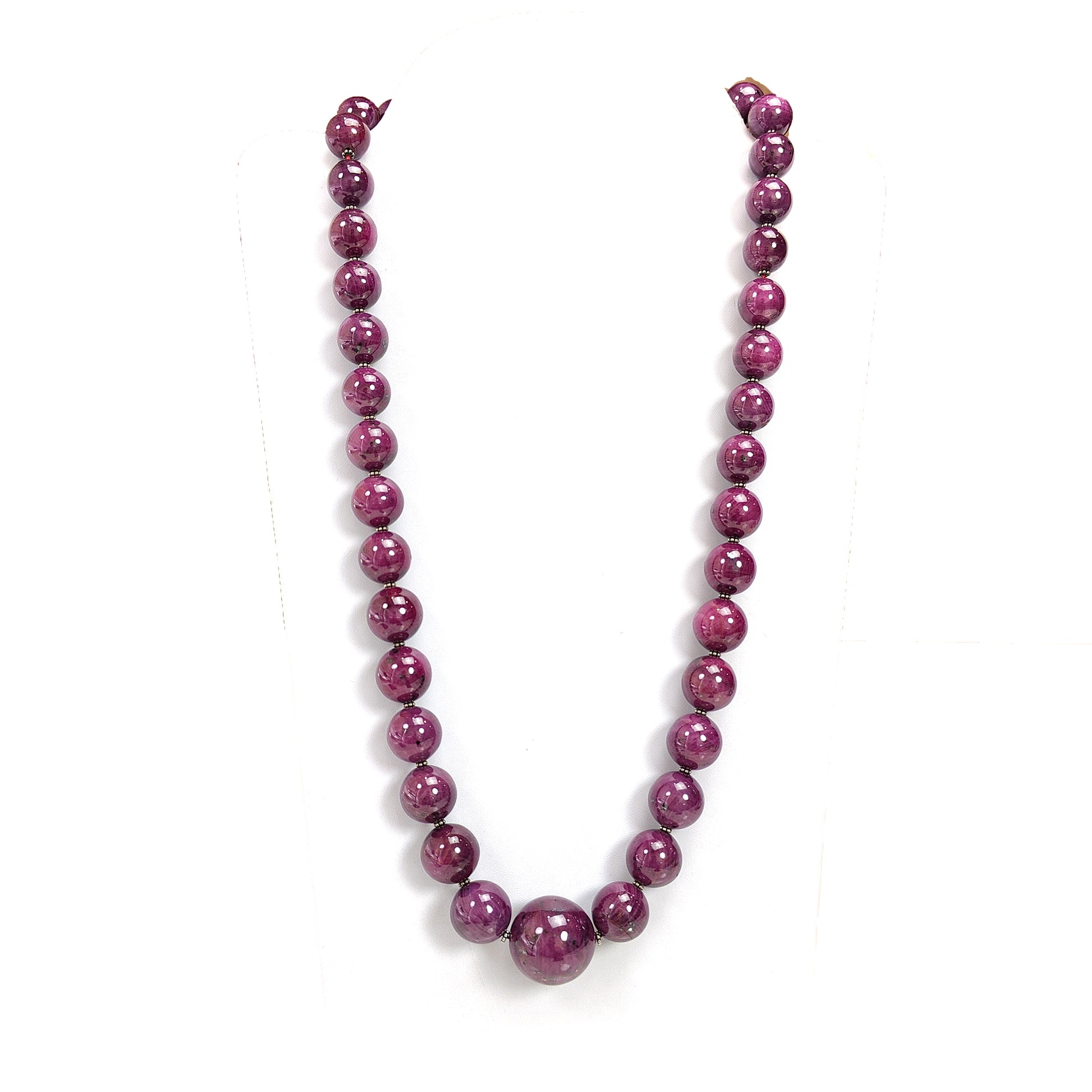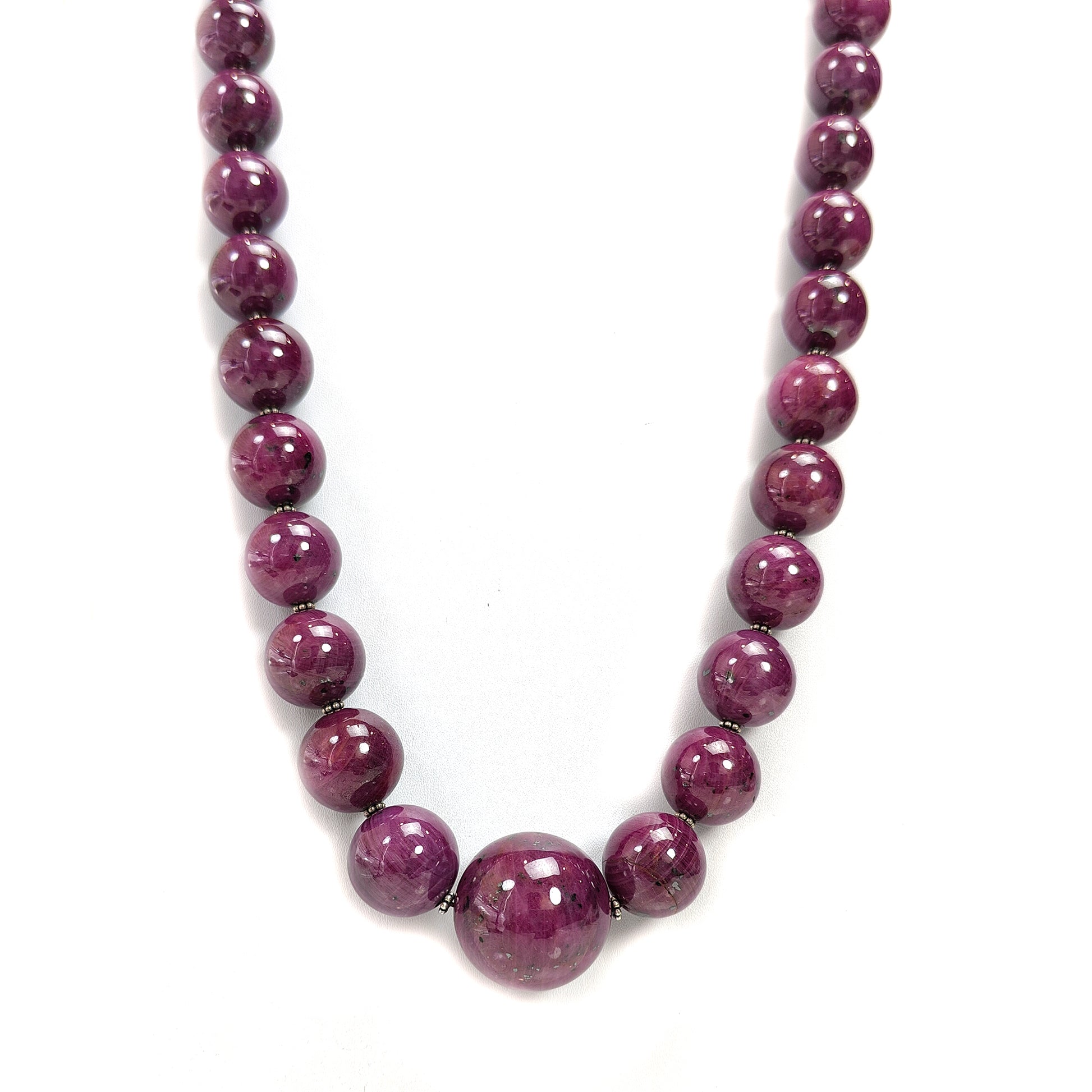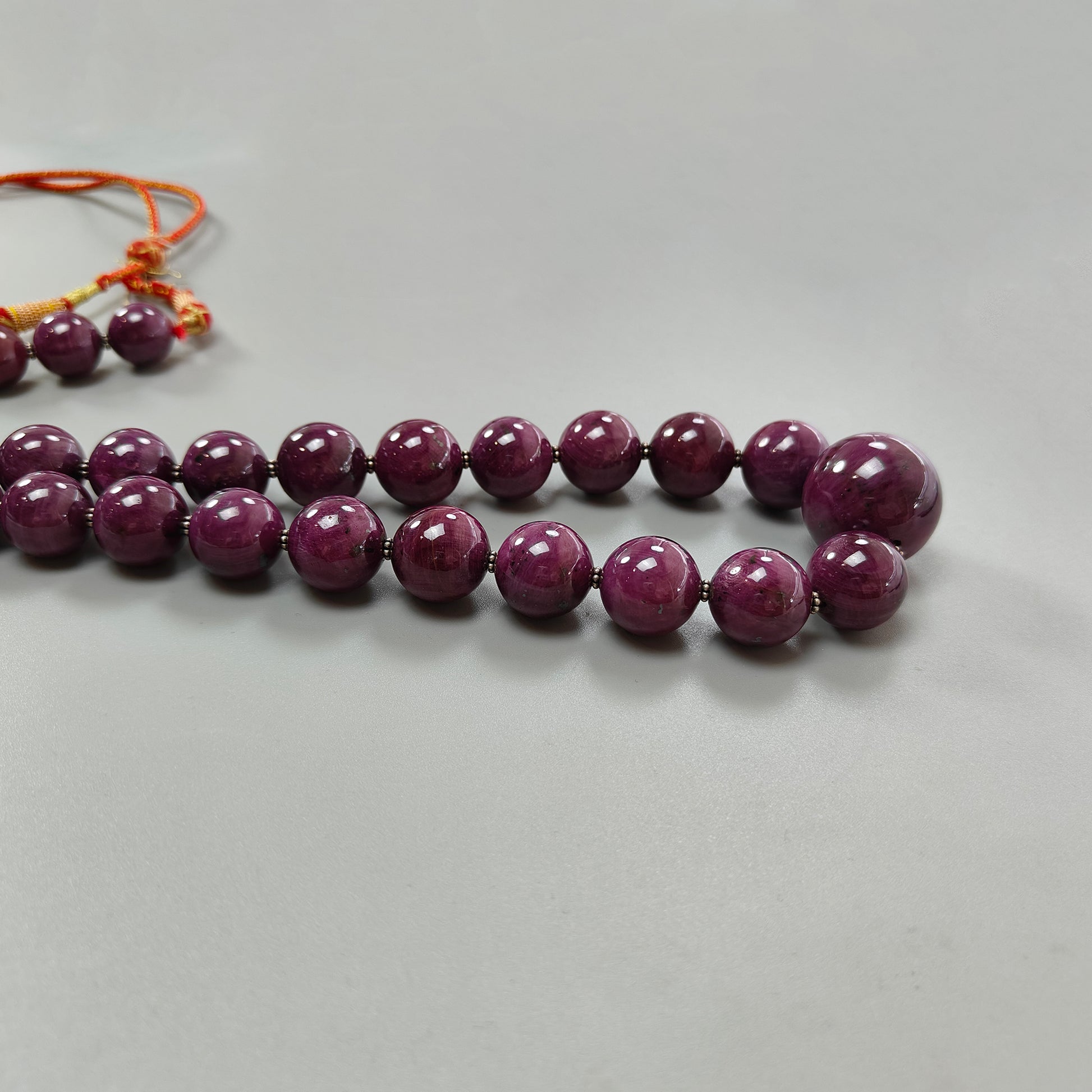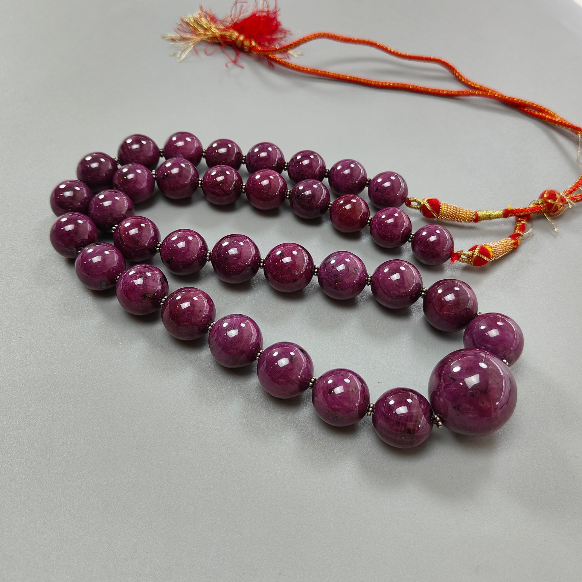 Ruby Gemstone Beads Necklace : 390.26gms Natural Silver Red Ruby Gemstone Plain Round Necklace 15mm - 23mm 25"