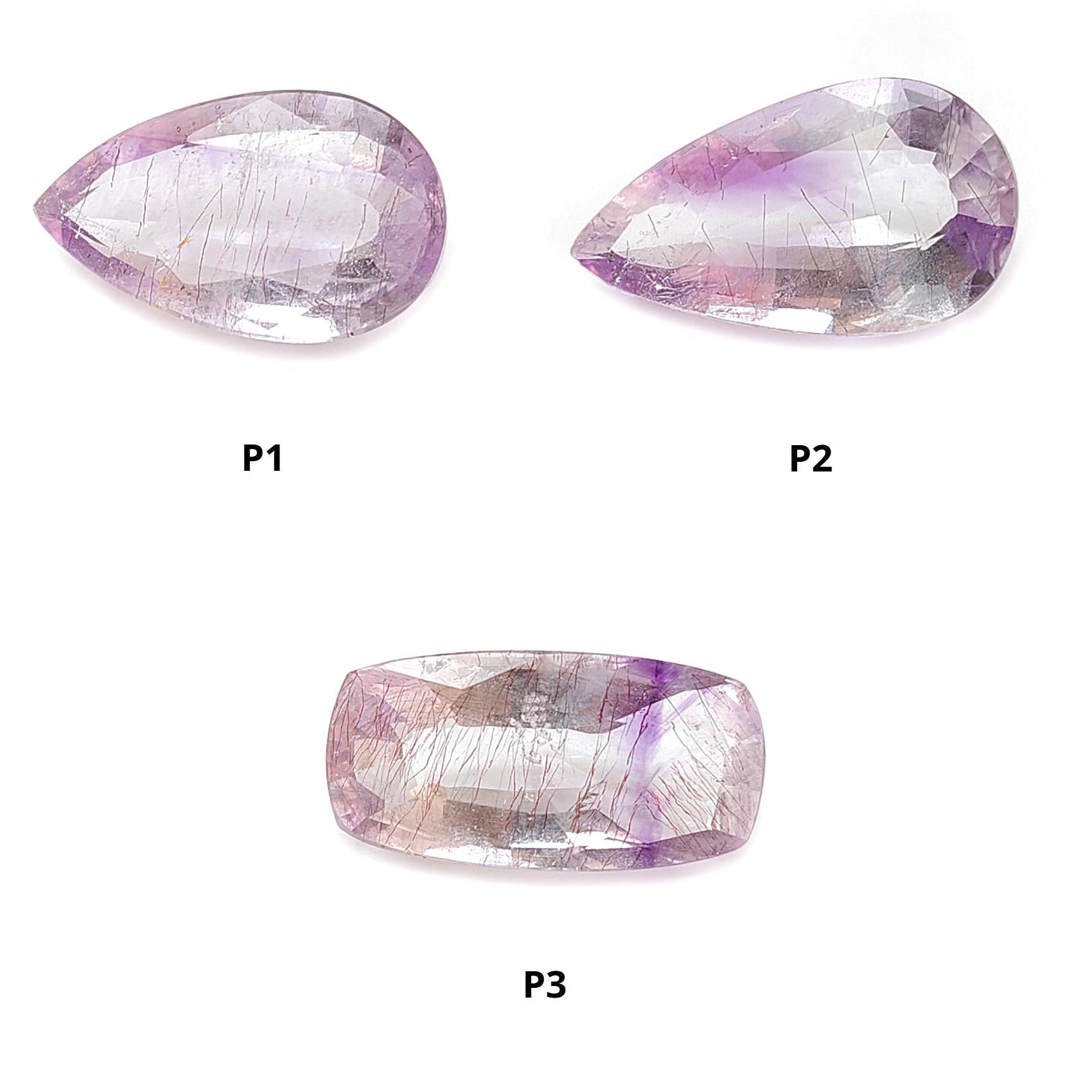 Rutile Amethyst Quartz Gemstone Faceted Cut: Natural Untreated Purple Amethyst Pear, Baguette Shape 1pc for Jewelry February Birthstone