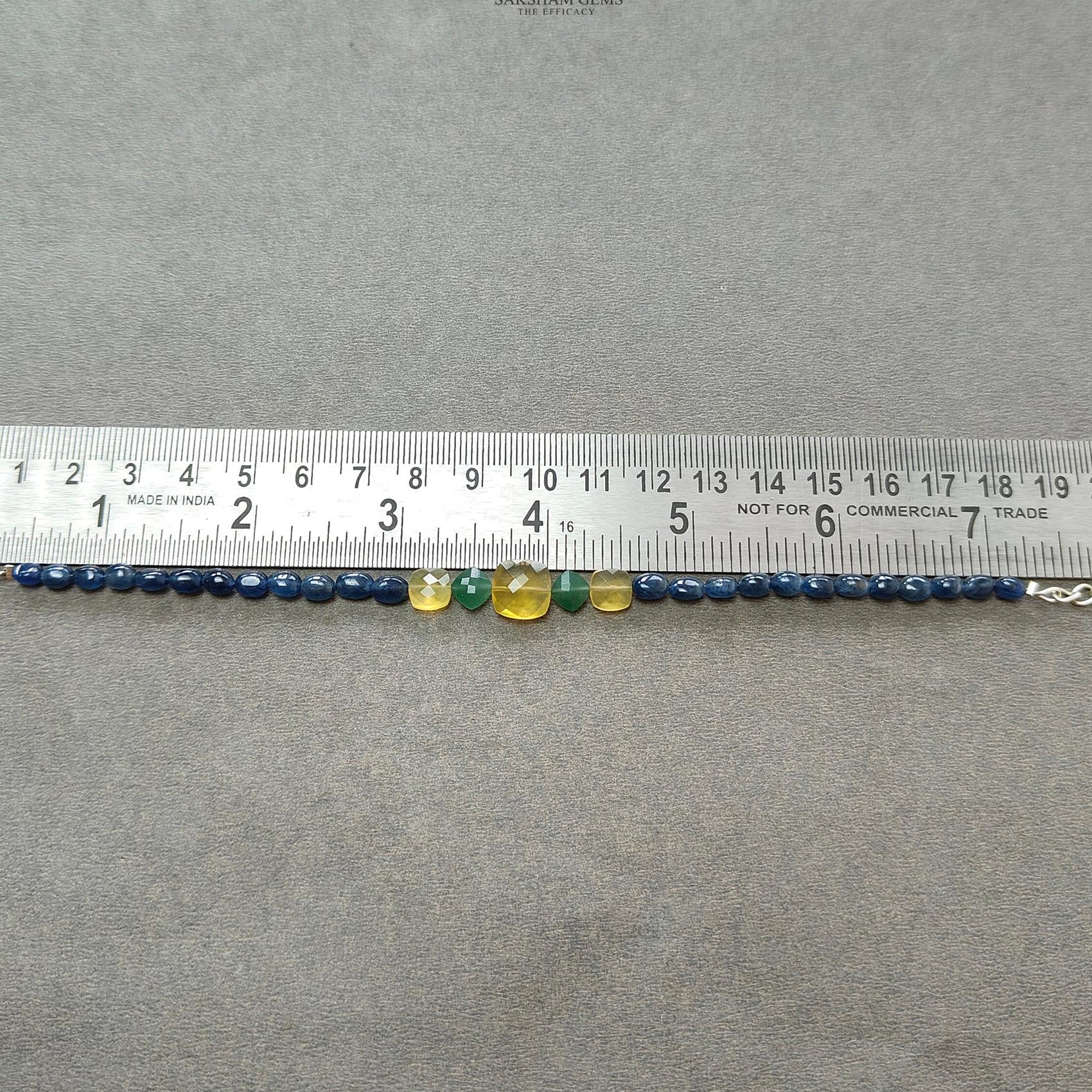 Sapphire & Quartz Opal Beads Bracelet : 6.64gms 925 Sterling Silver Blue Sapphire Yellow Opal Green Quartz Gemstone Plain Checker Cut 8"