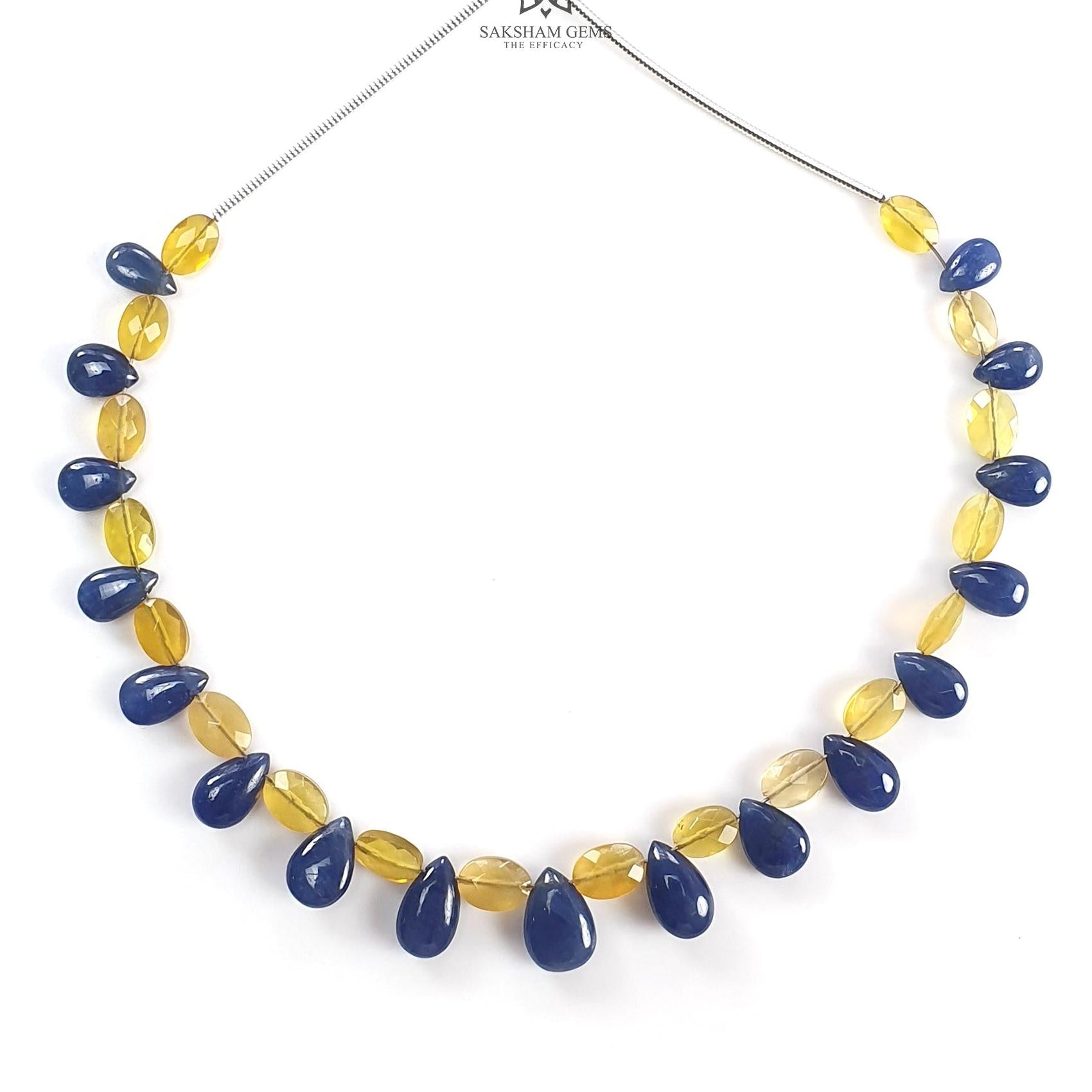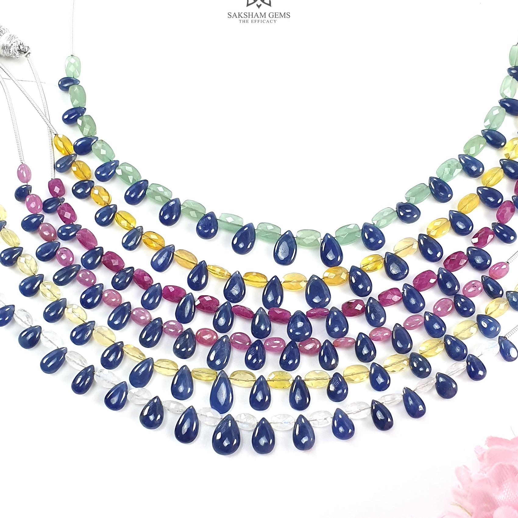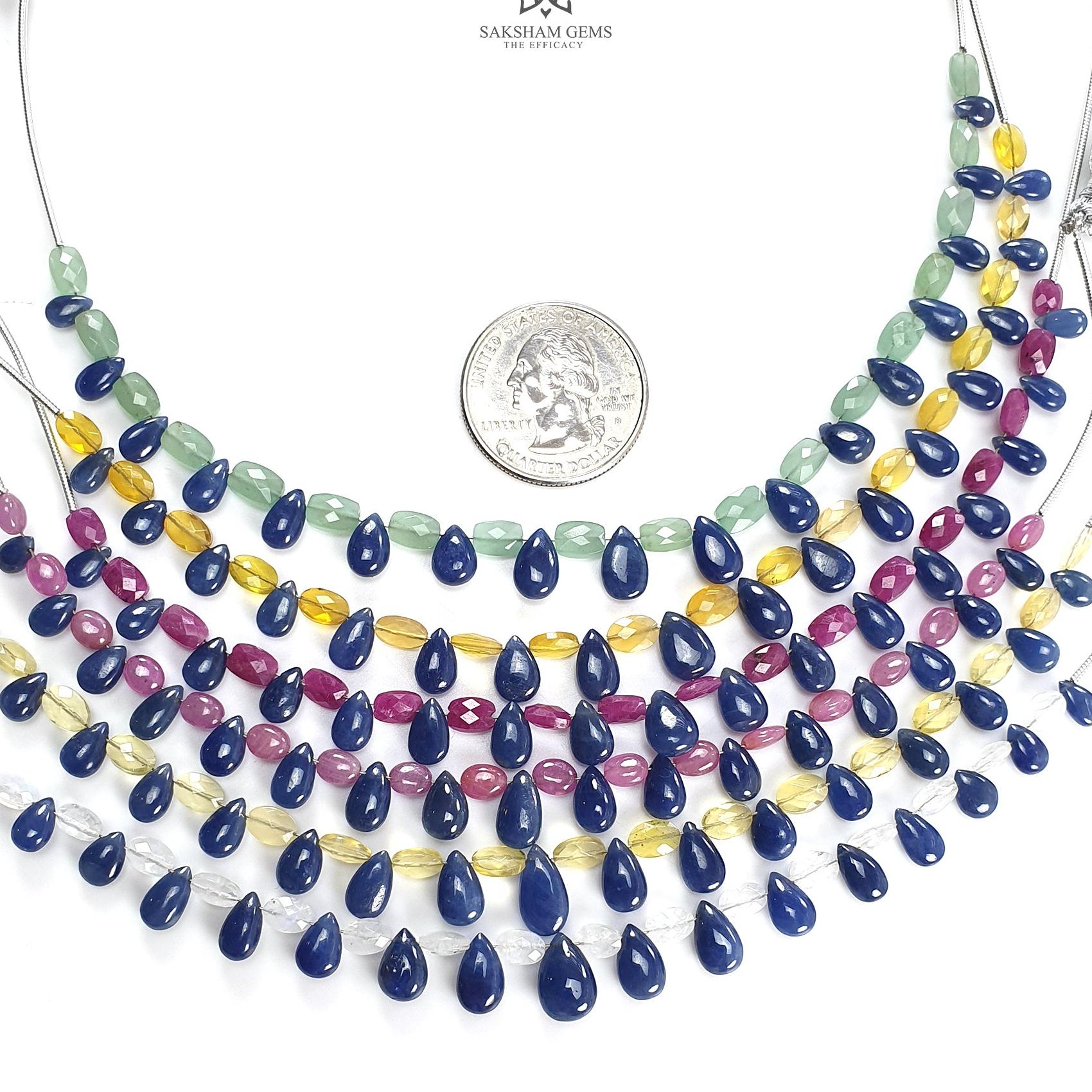 Sapphire Ruby Opal Moonstone Quartz Plain Beads: Natural Untreated Blue Sapphire Teardrop Cushion Plain 6"-7" Beads For Bracelet