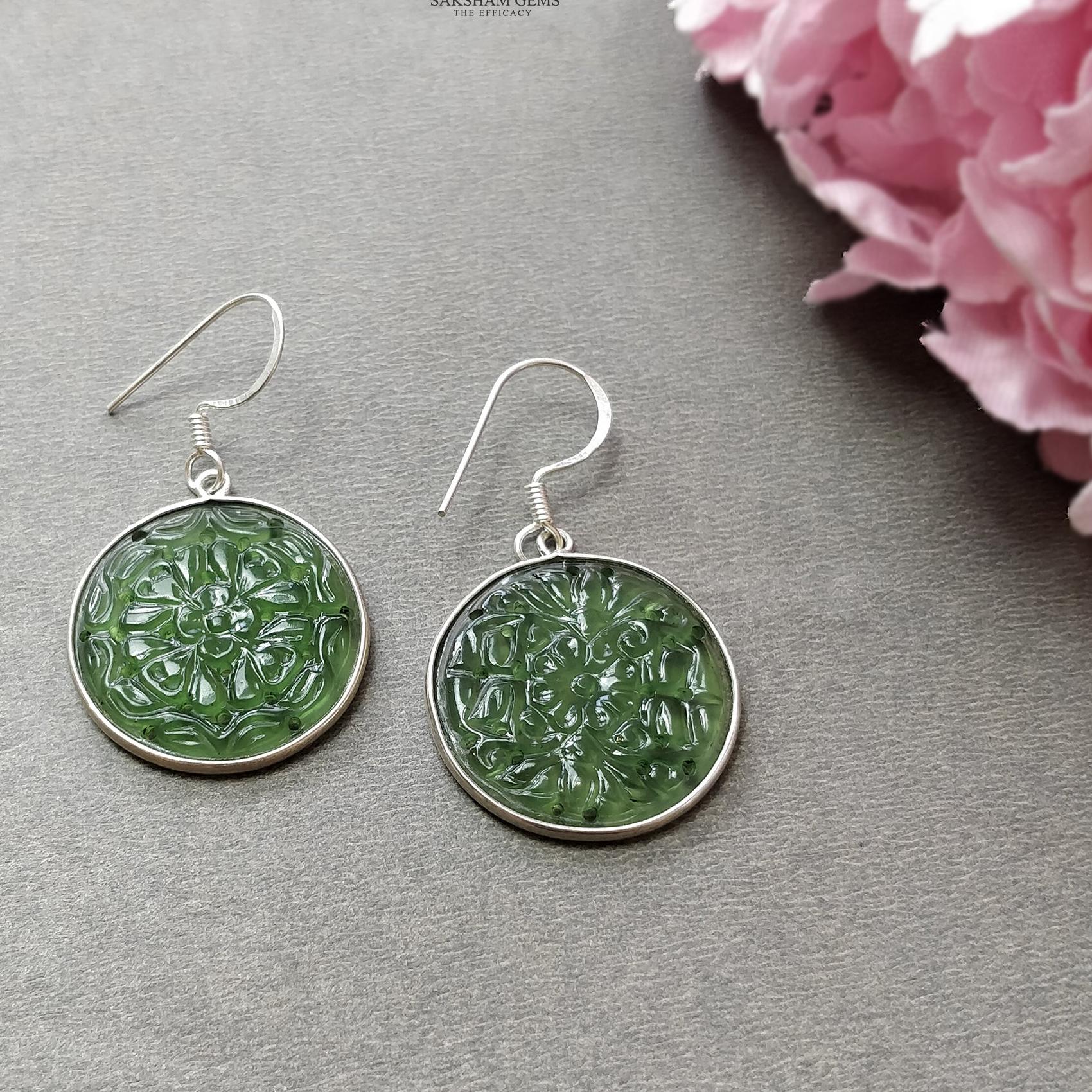 SERPENTINE Gemstone 925 Sterling Silver Earrings : 6.45gms(Approx) Natural Untreated Drop Dangle Round Shape Hook Earrings 1.75"