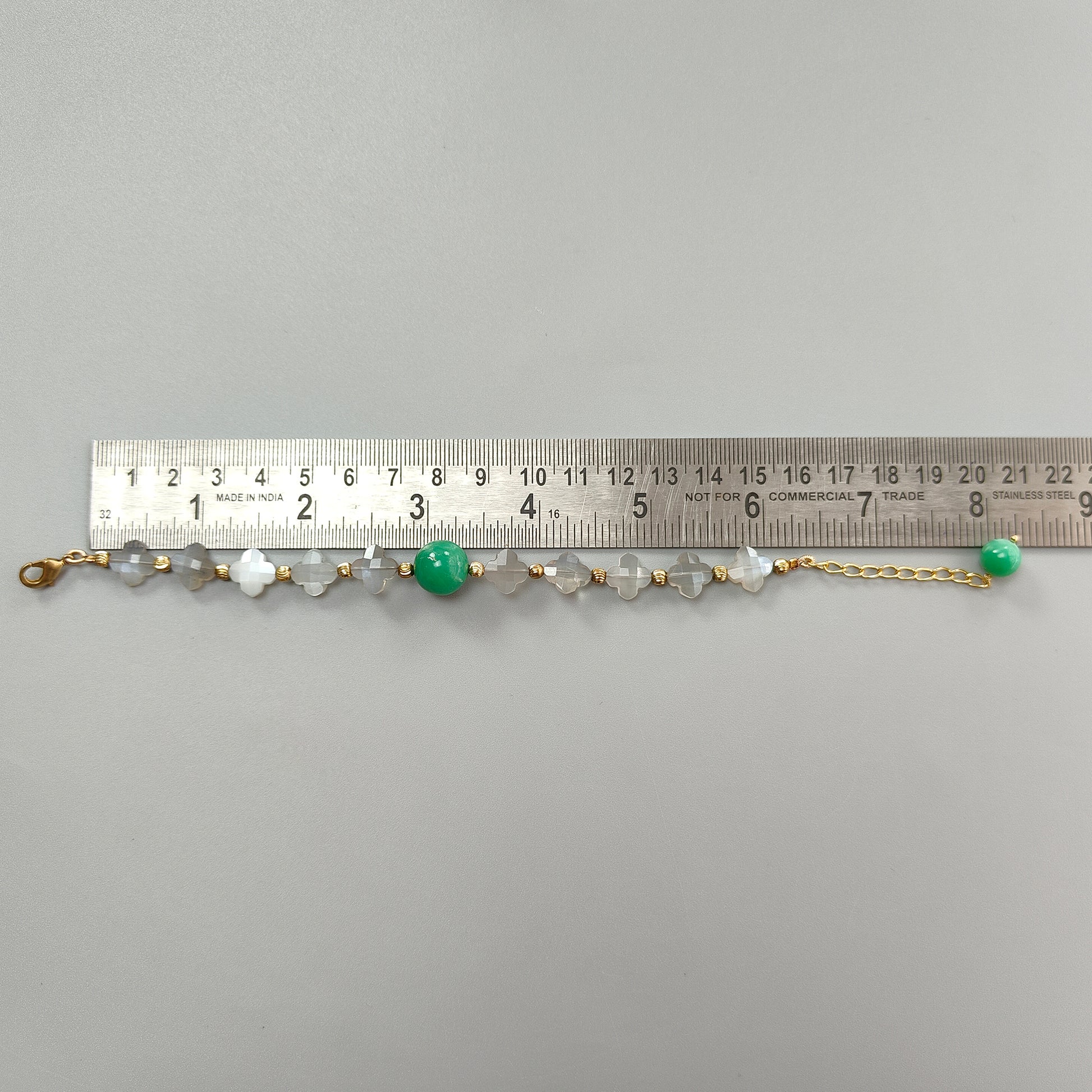 Silver Gray Moonstone Beads Bracelet: 51.15cts Natural Green Chrysoprase Fancy Both Side Faceted Checker Cut Brass Bracelet 9mm - 12mm 6"+2"