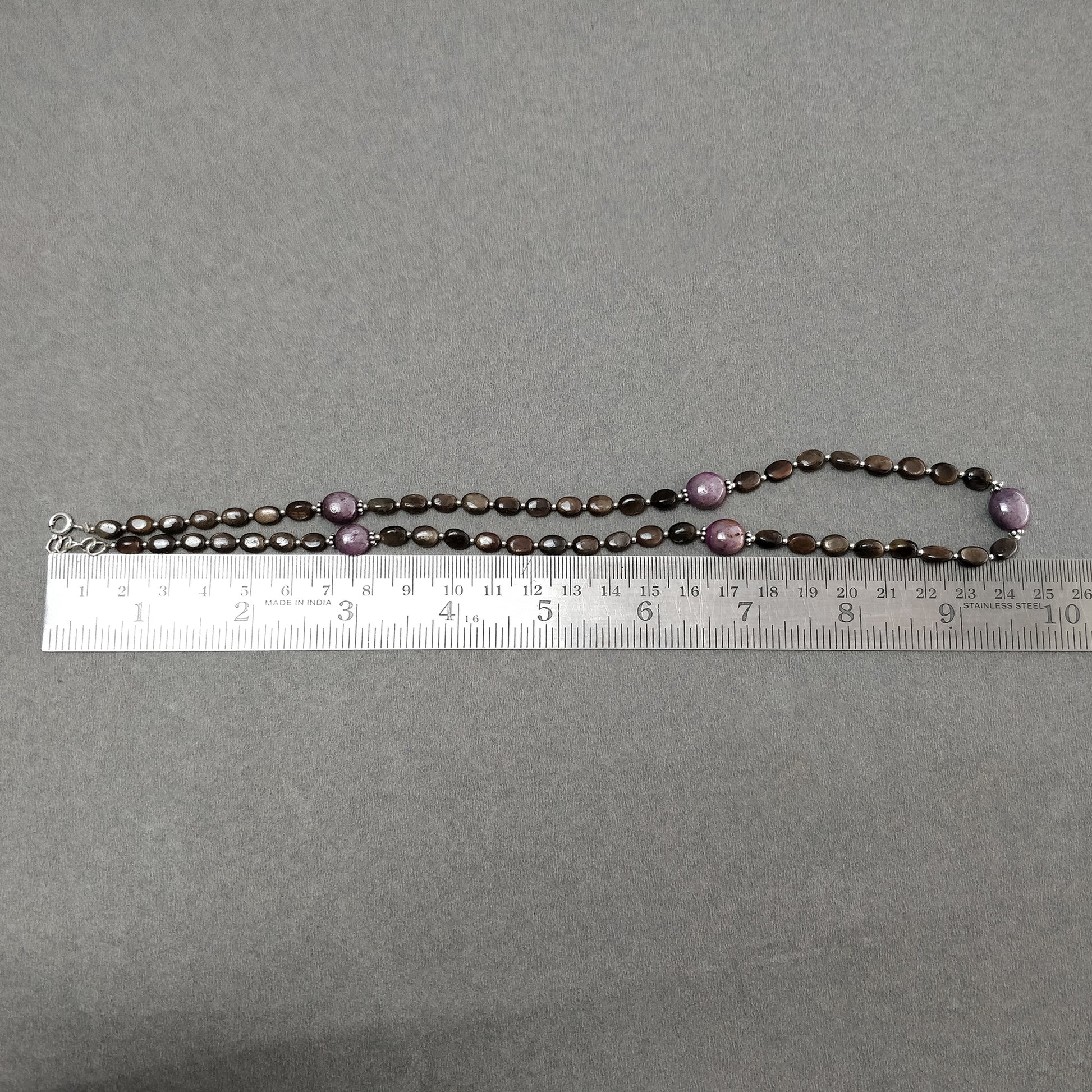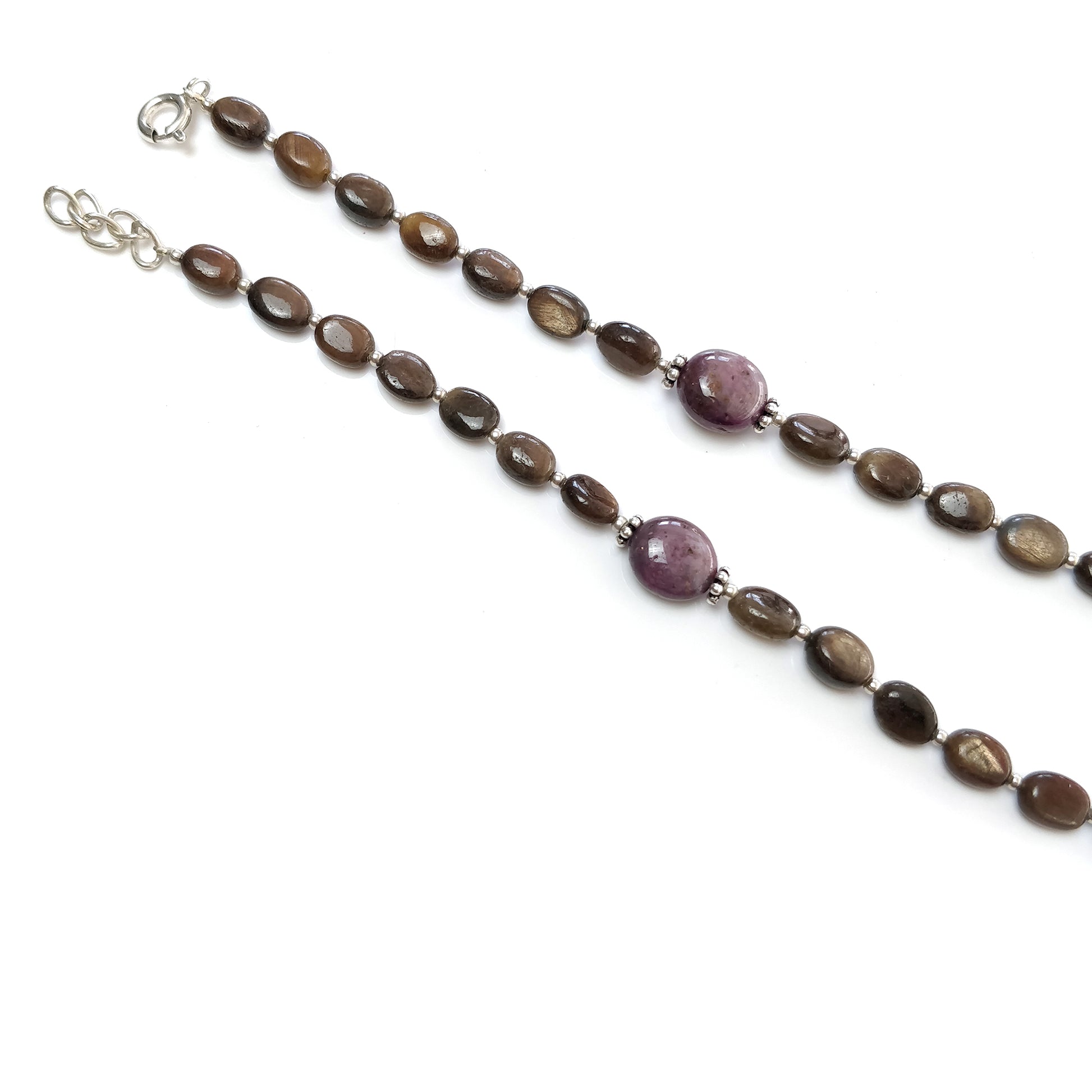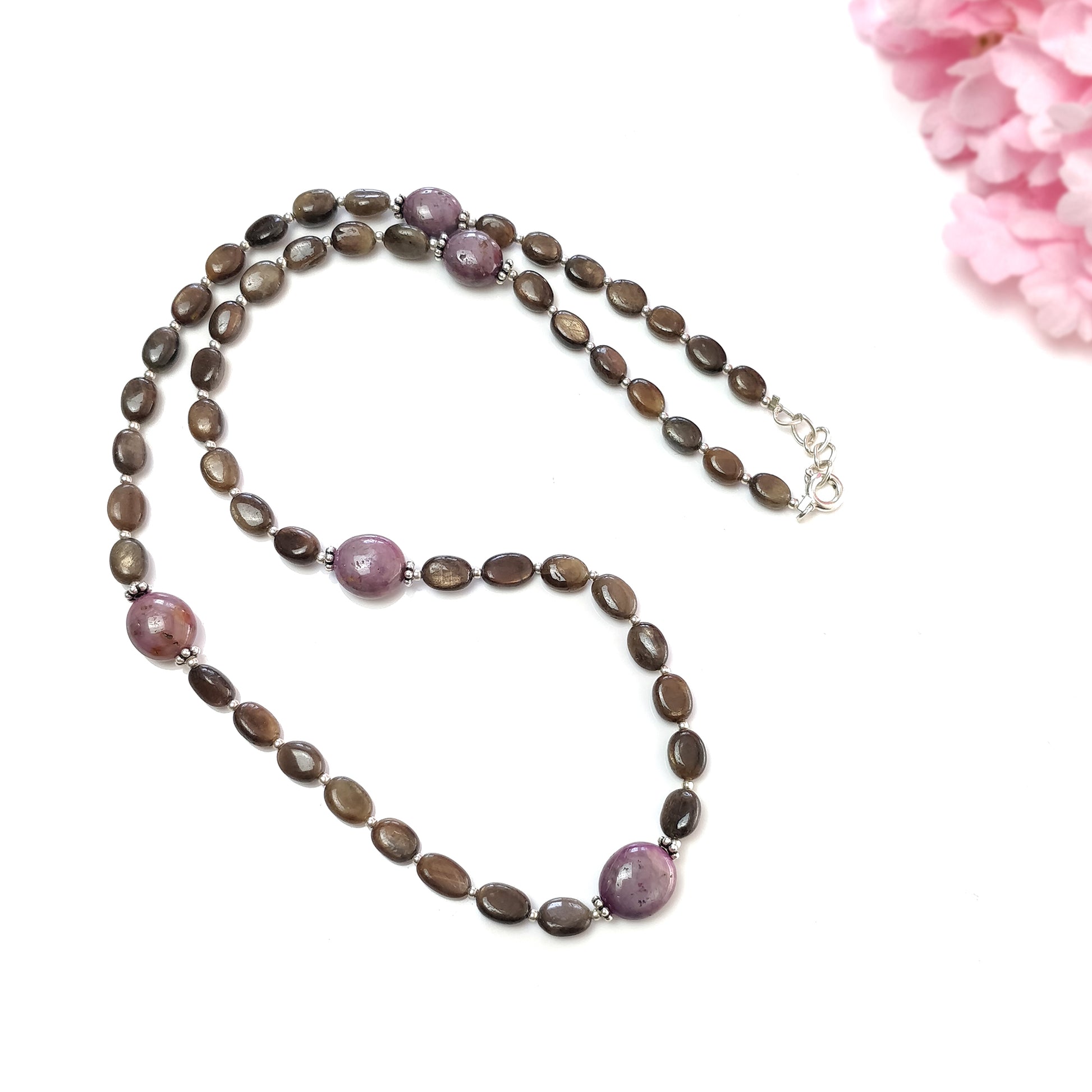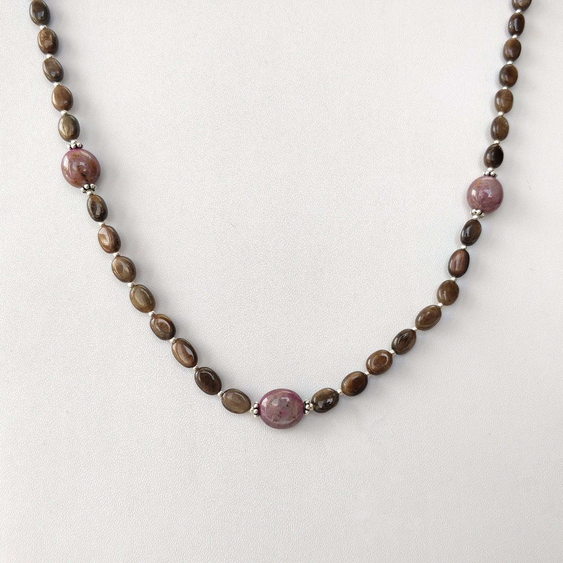 Chocolate Sapphire & Star Ruby Gemstone Necklace : 111.25cts Natural Untreated Oval Shape With 925 Sterling Silver 6*5mm - 11*10mm 18.75"