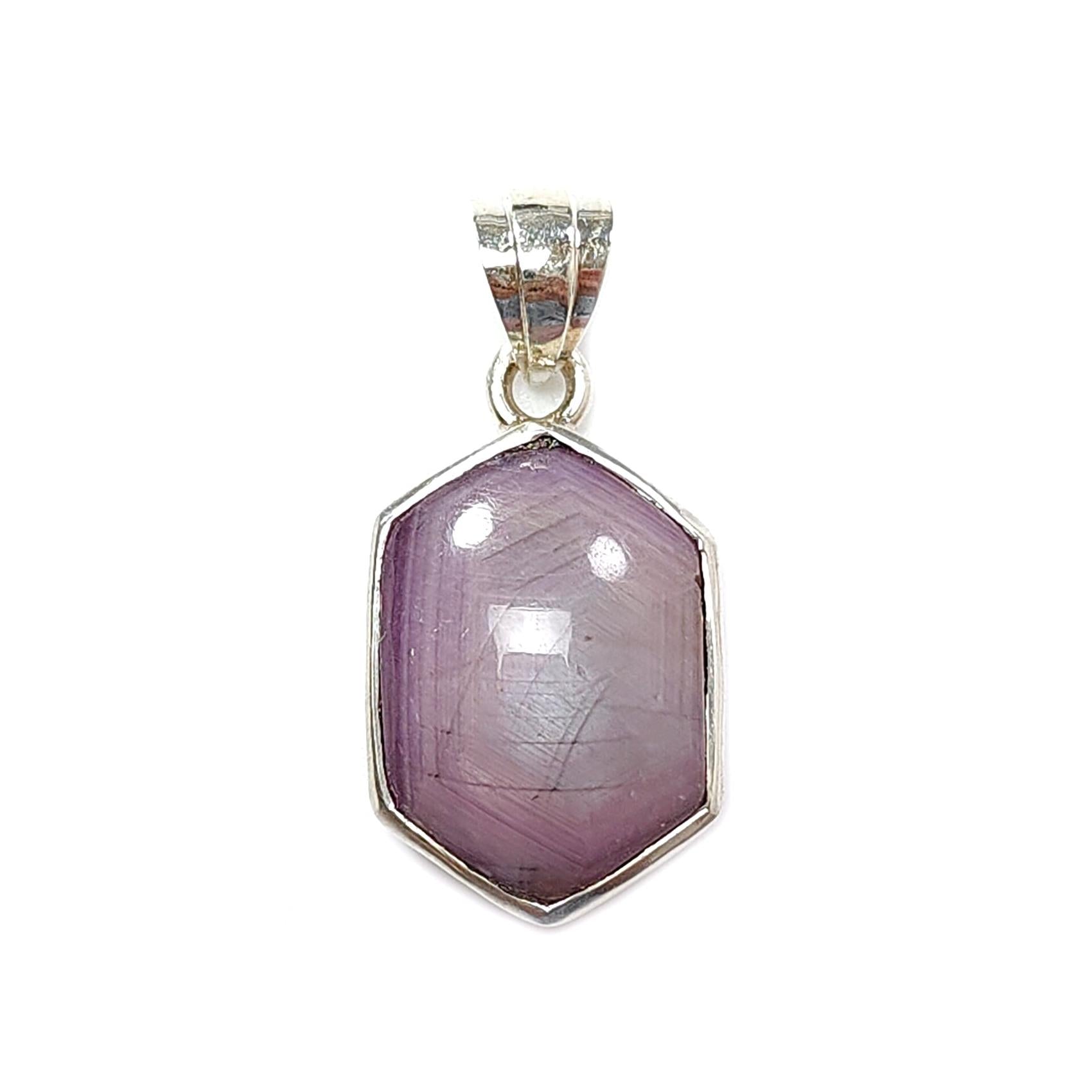 Star Ruby Silver Pendant: 4.30gms Natural Untreated Star Ruby Hexagon Shape Cabochon 925 Sterling Silver Bezel Set Pendant 1.10"
