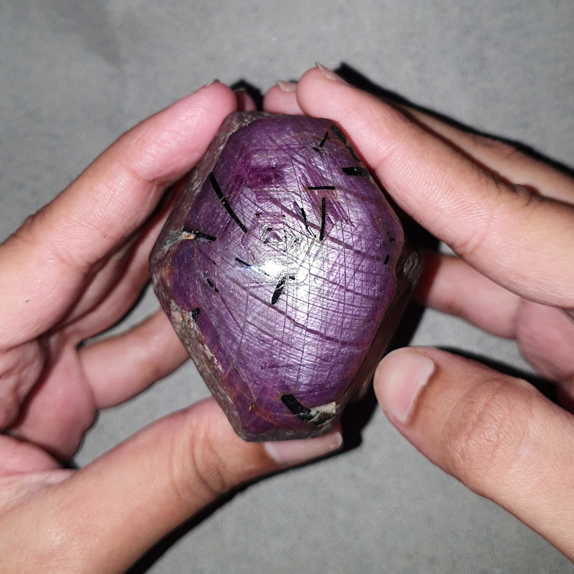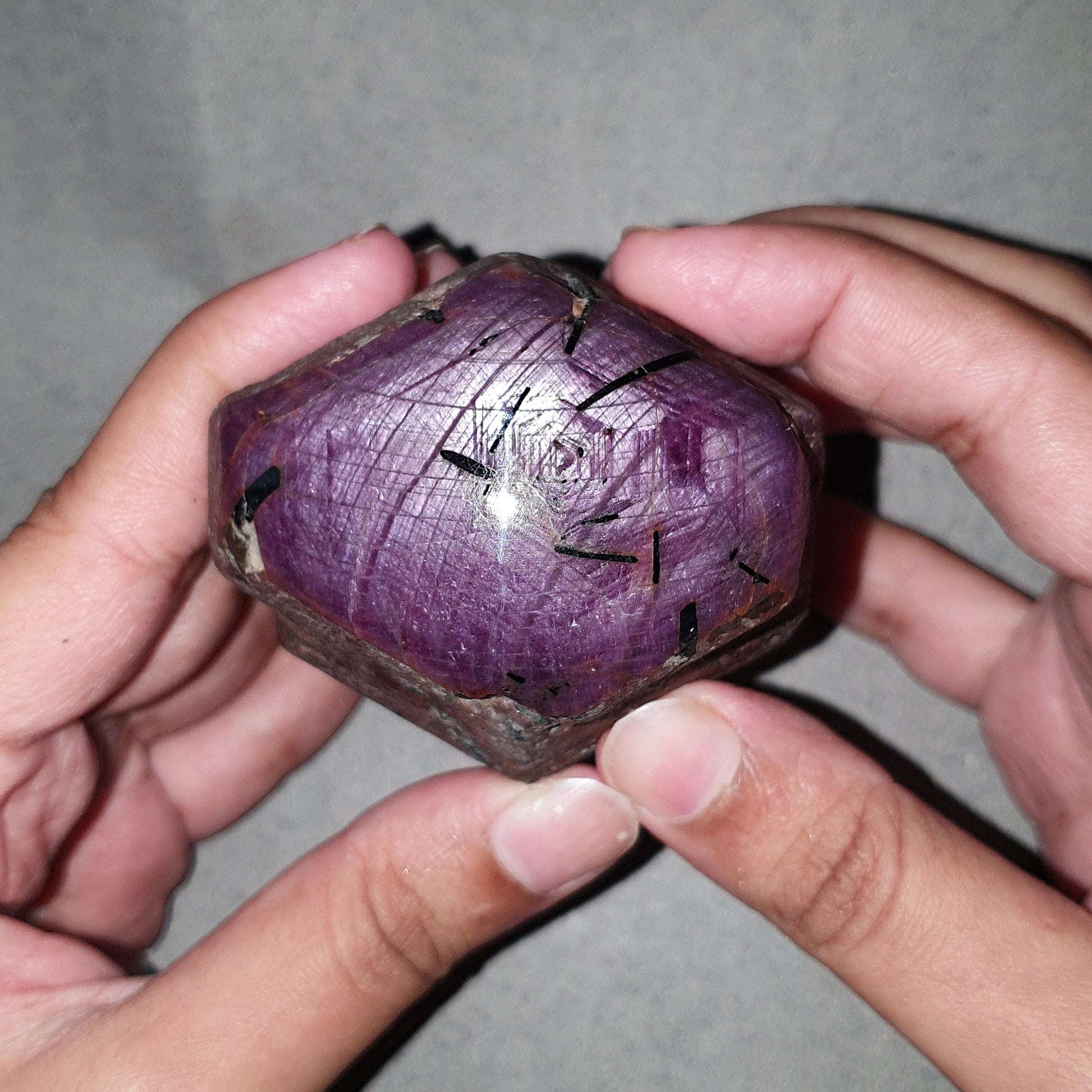 Star Ruby With Black Rutile Gemstone Wand : 2596.30cts Natural Untreated Unheated Star Ruby Uneven Shape Specimen 3"*1.5"