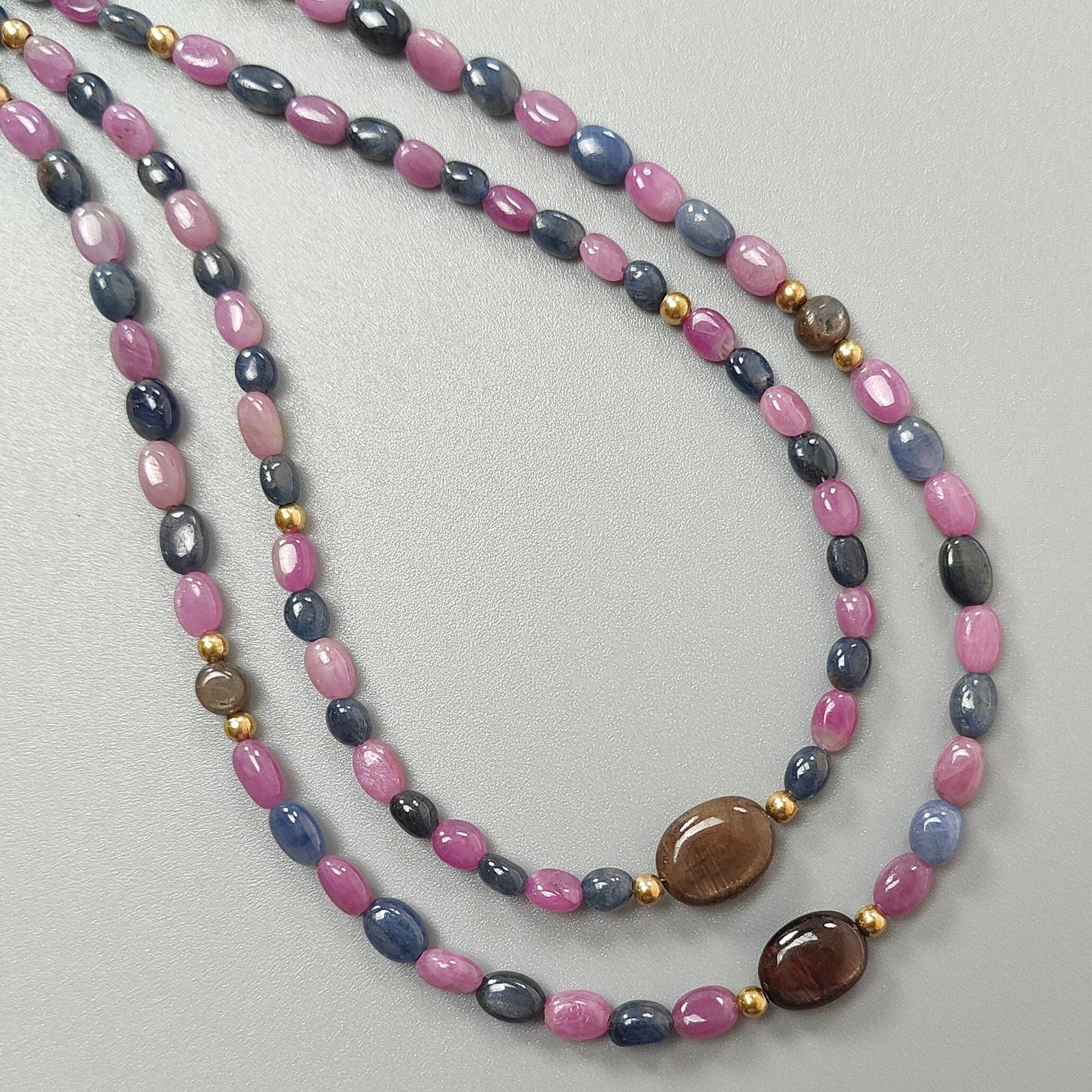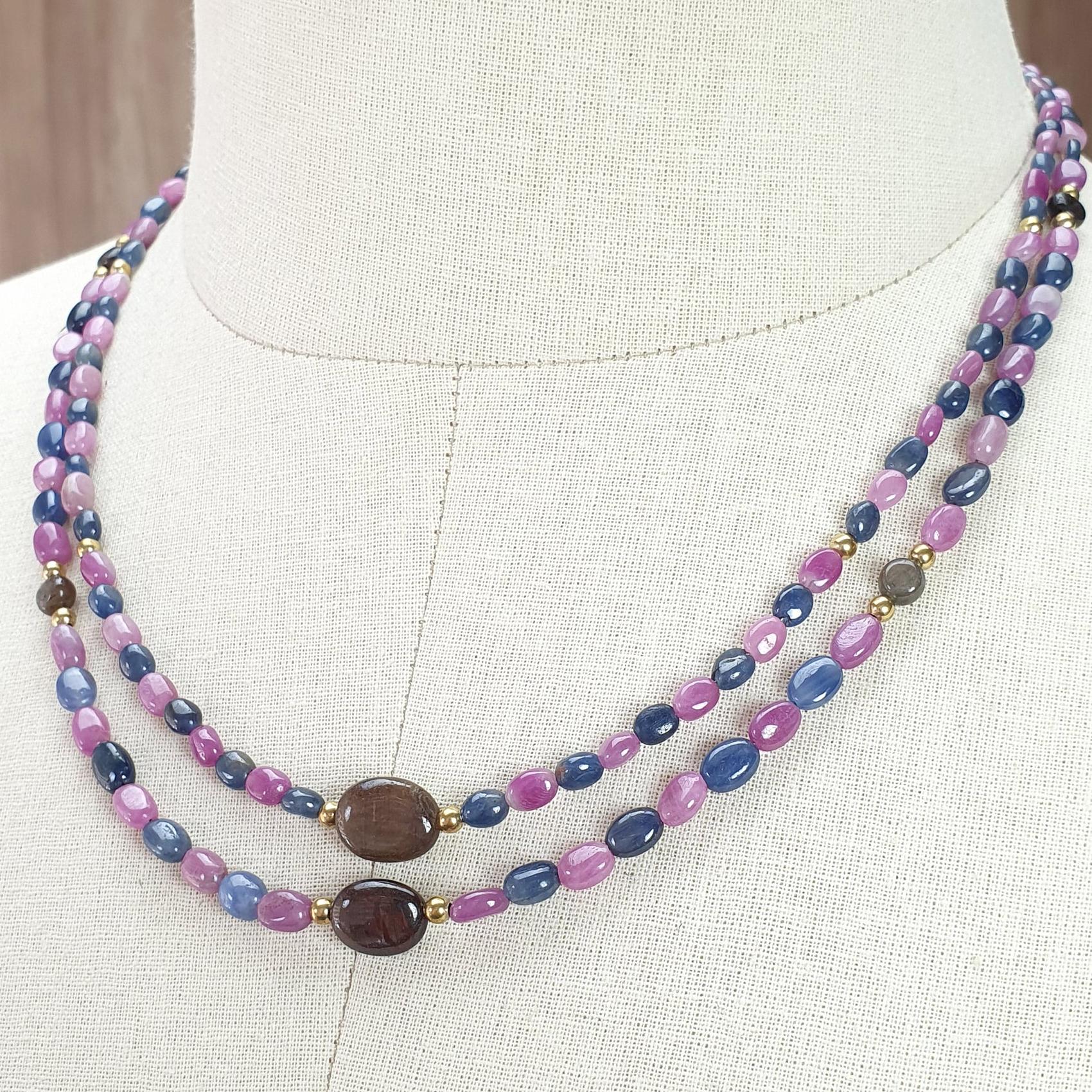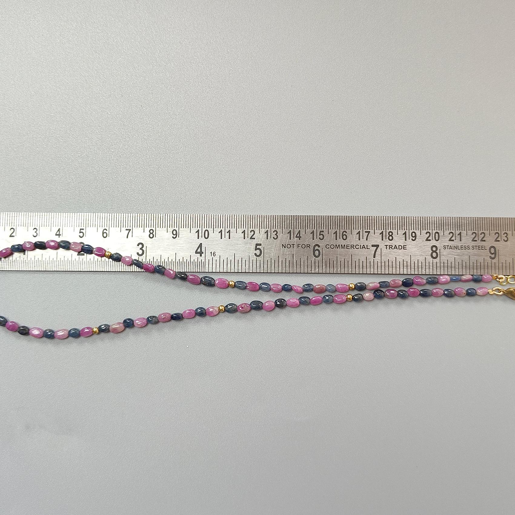 Pink & Blue Sapphire Gemstone Beads Necklace: Natural Untreated Unheated Sapphire Plain Oval Shape Brass Necklace 18" 1 Strand