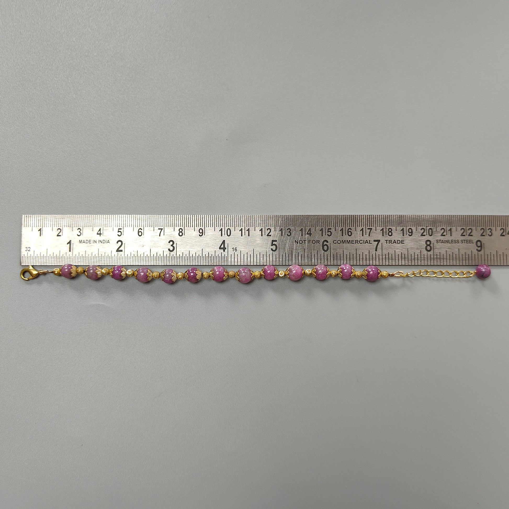 Zoisite Ruby Beads Bracelet: 67.55cts Natural Untreated Zoisite Ruby Round Plain Brass Bracelet 7mm 6"
