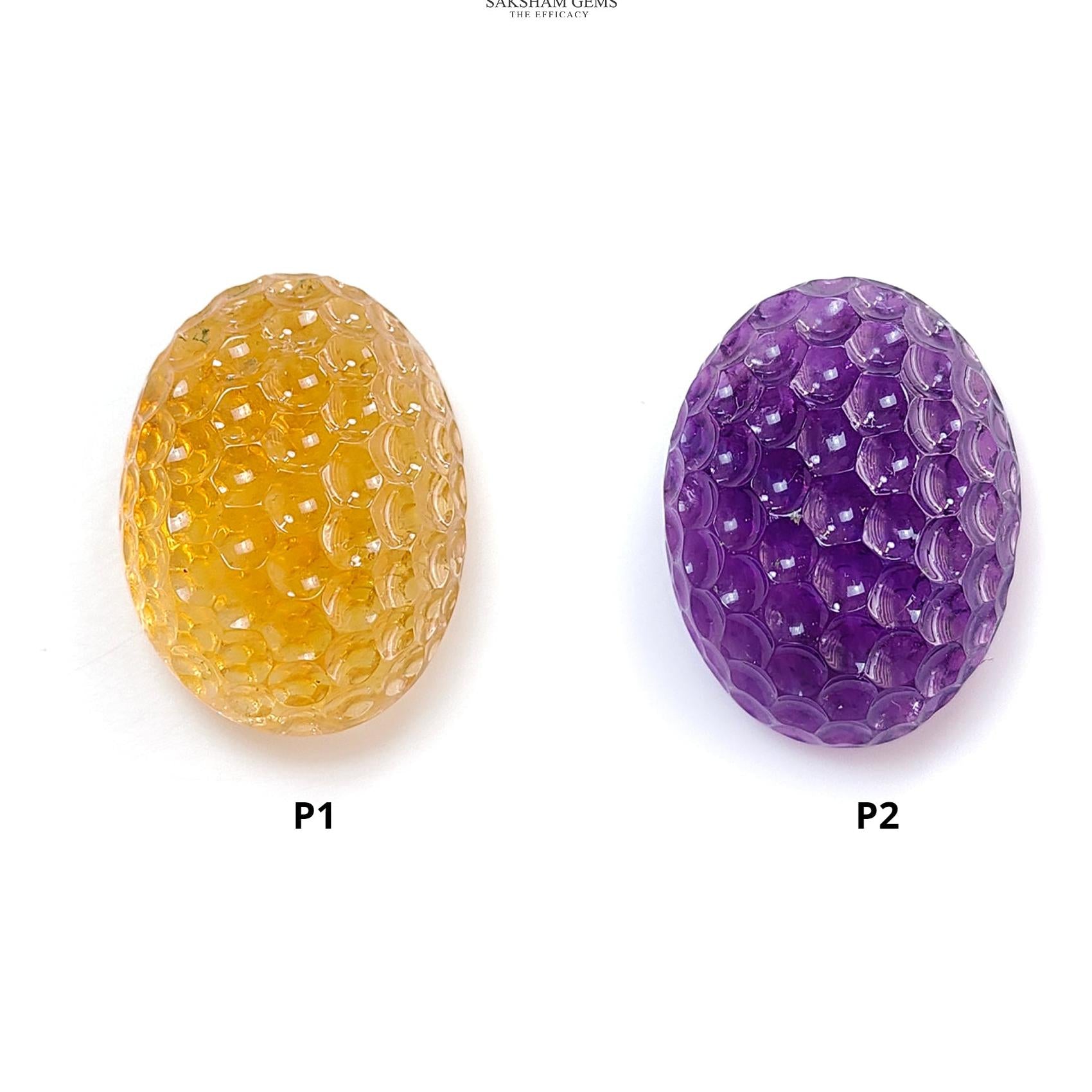 Citrine & Amethyst Quartz Gemstone Carving: Natural Untreated Unheated Yellow Citrine Purple Amethyst Hand Carved Oval Shape 1pc For Jewelry